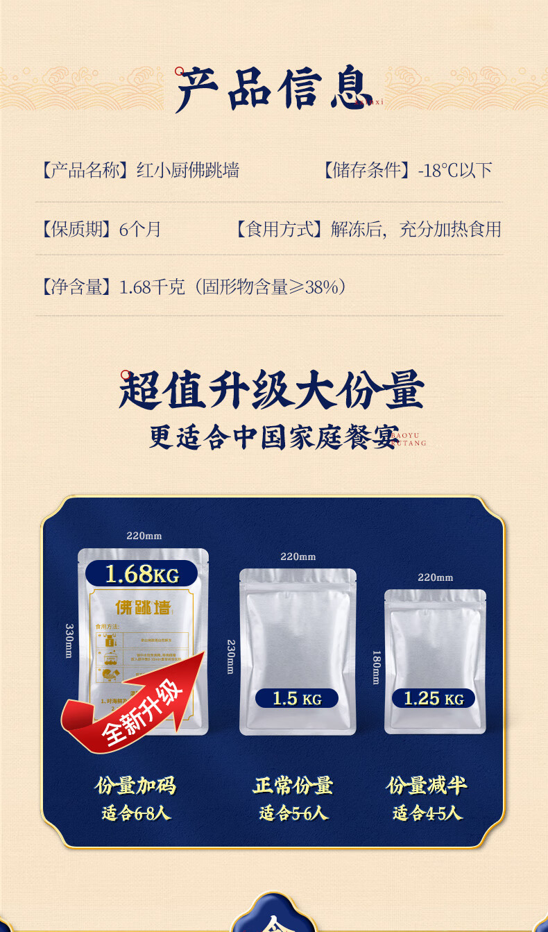 红小厨正宗金汤佛跳墙家庭装1680g海参鲜鲍鱼盆菜制品预制菜肴
