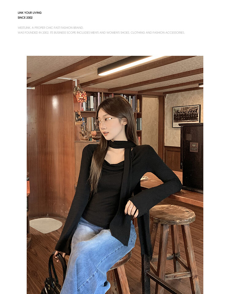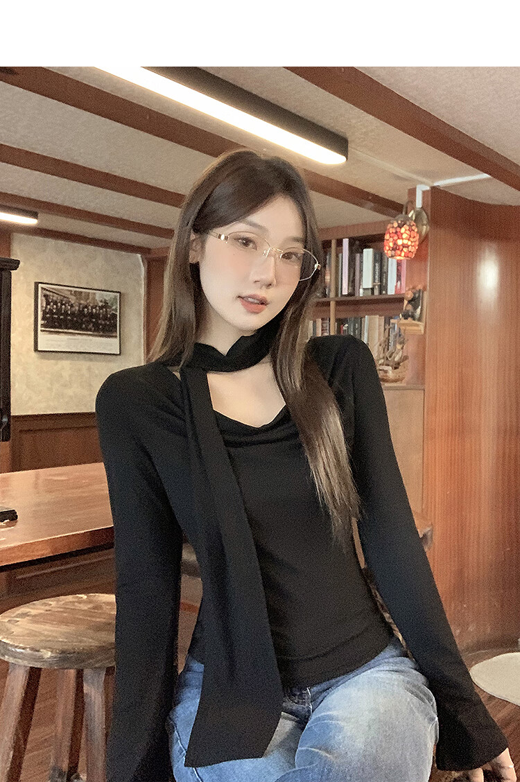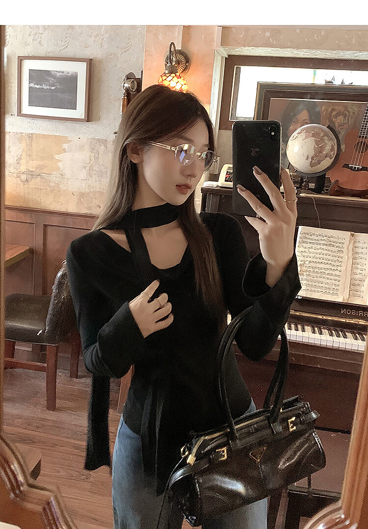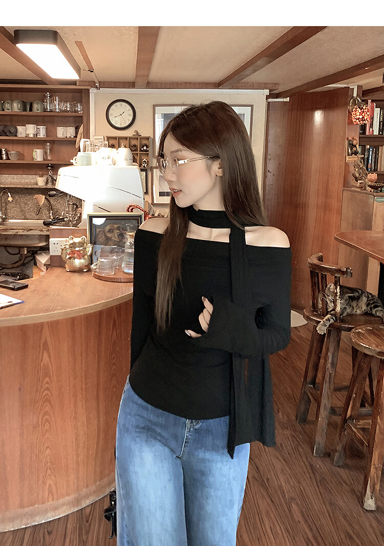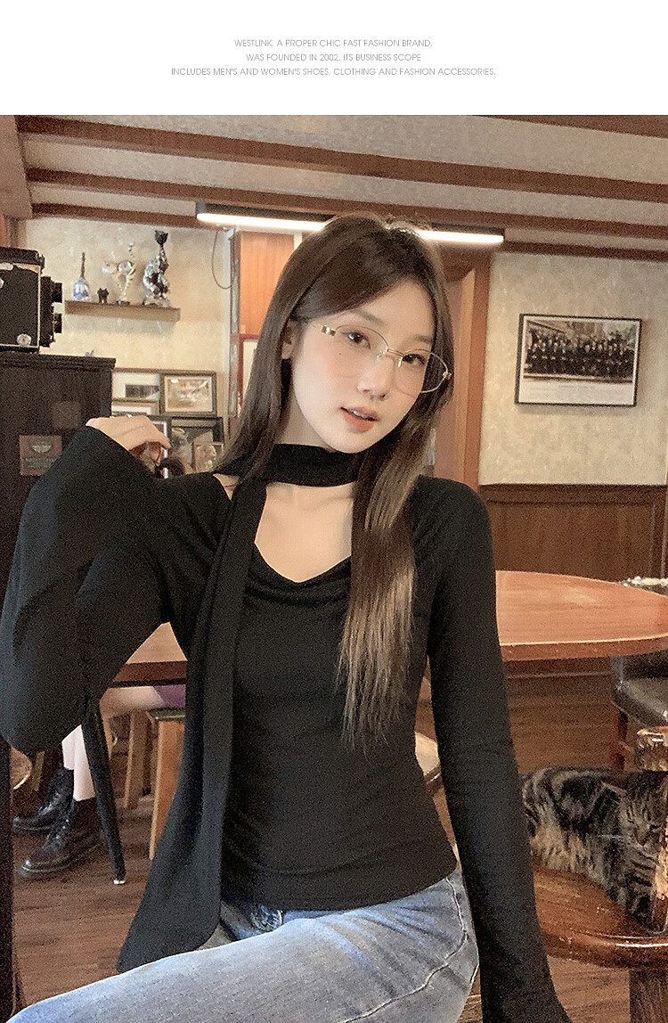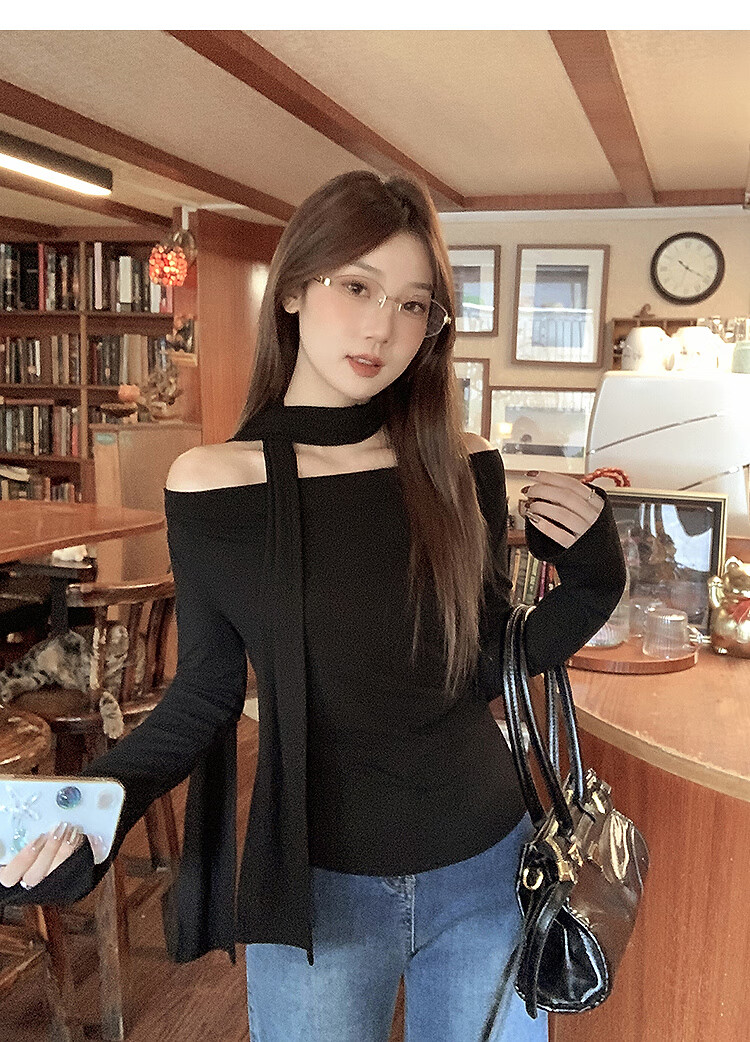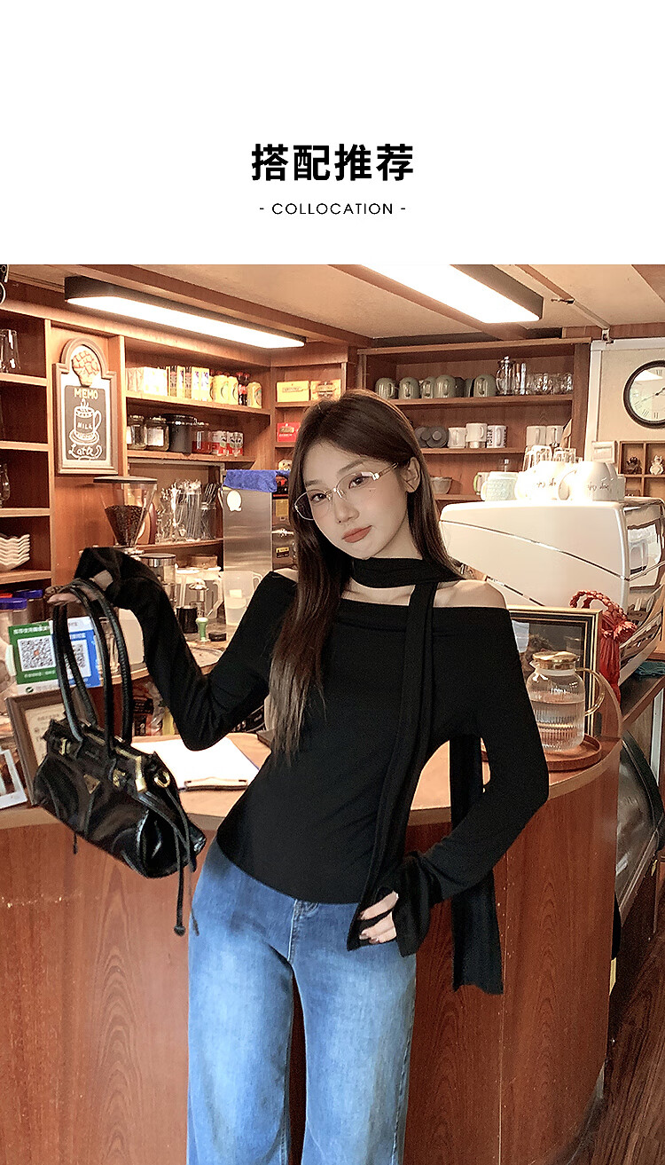 西遇(Westlink)西遇黑色长袖T恤女修身2025年秋季新款氛围感荡领挂脖一字肩上衣 黑色 (预售15天) L (165)