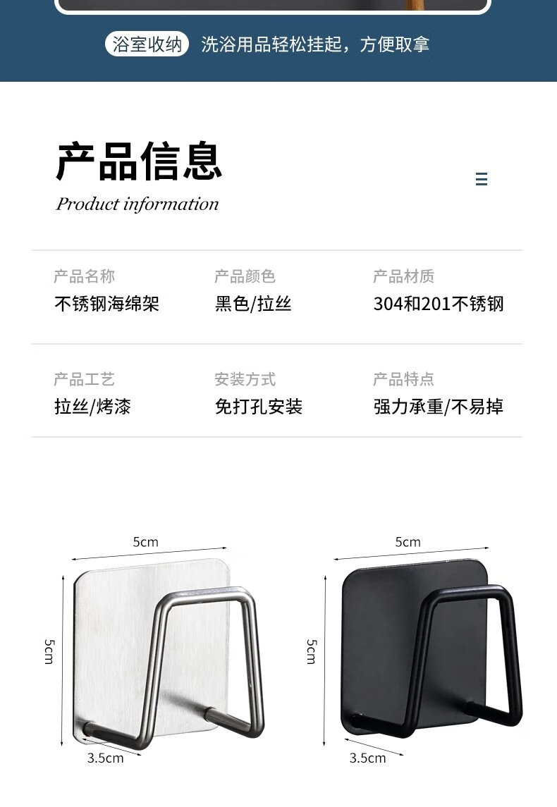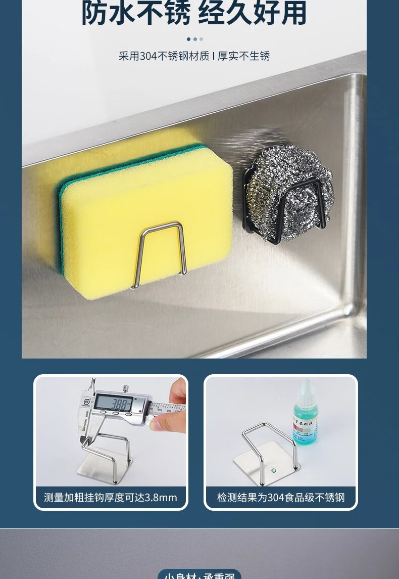 【精选好物】不锈钢海绵置物架免打孔家用厨房用品水池钢丝球百洁 不锈钢海绵沥水架1个装