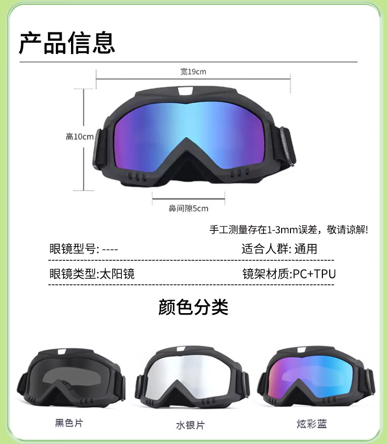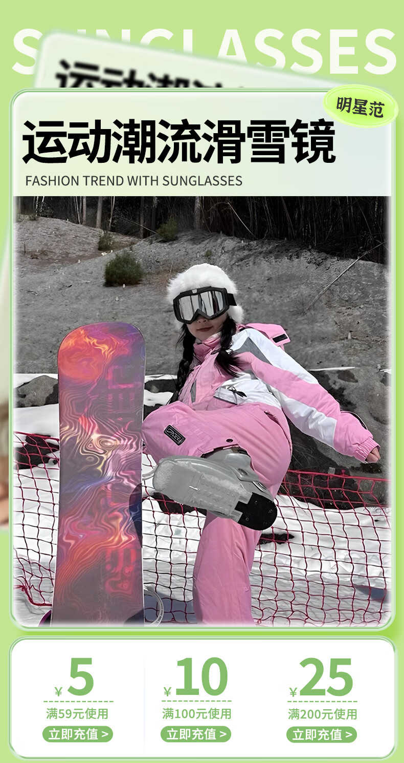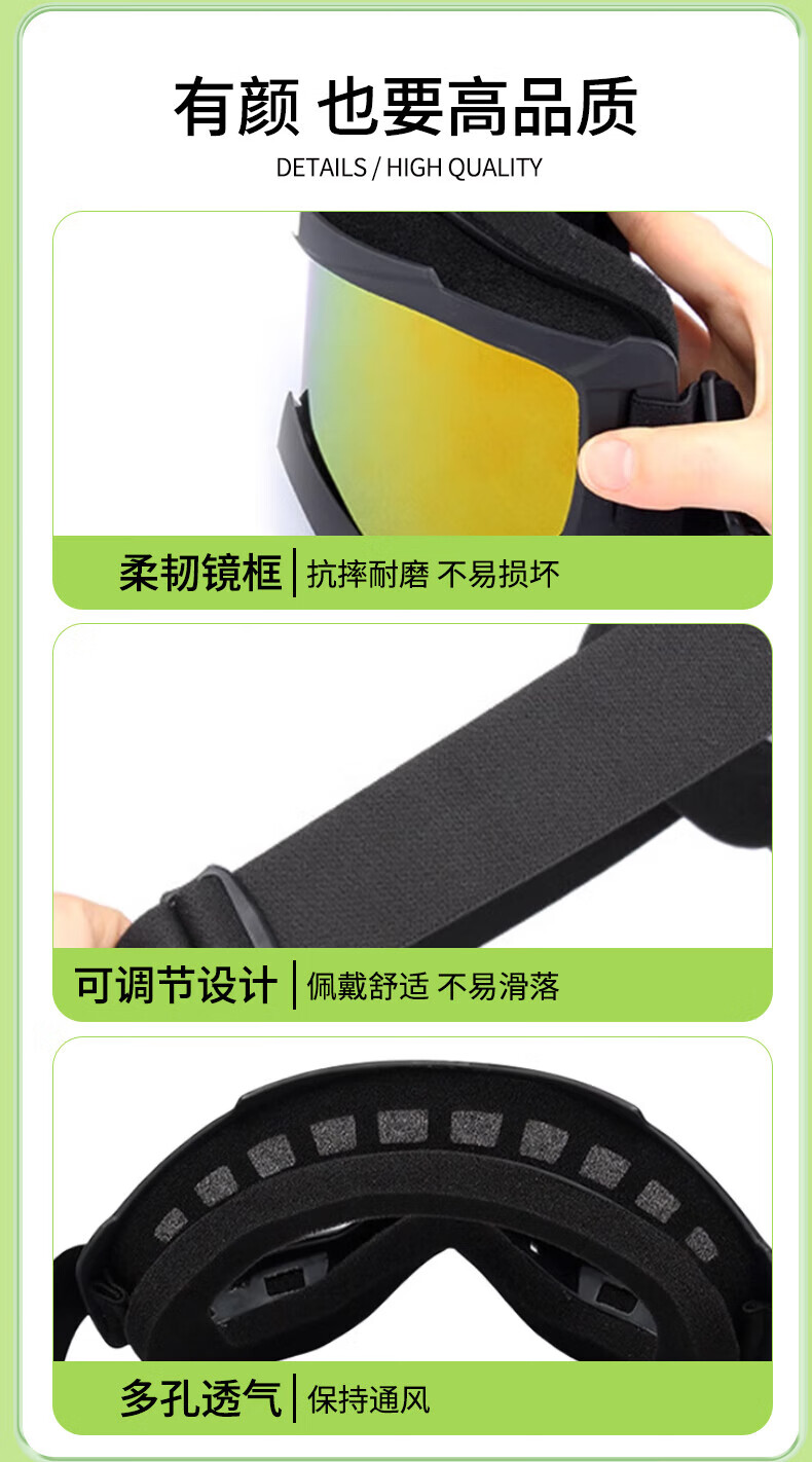 白小奢近视可戴滑雪镜 黑框彩片 防雪户外防风护目镜男女单双板护目镜