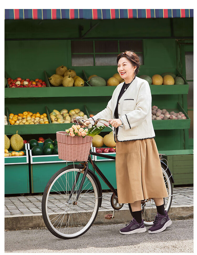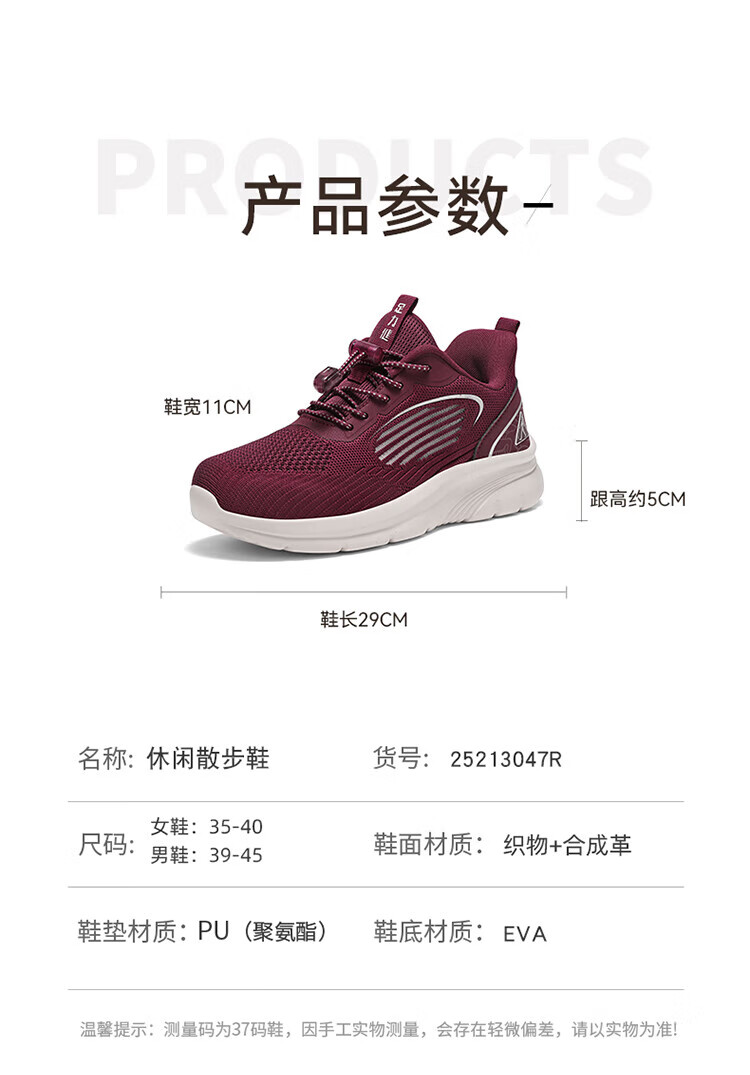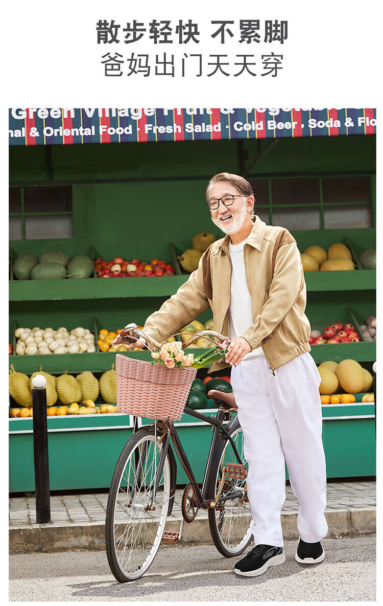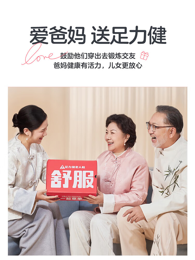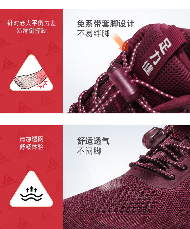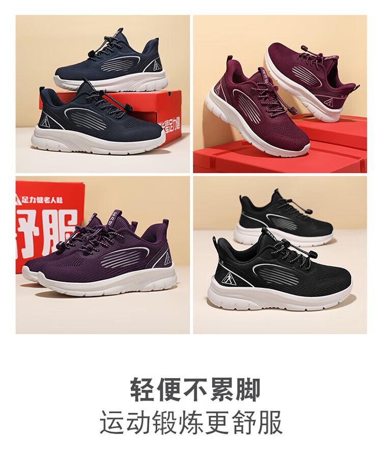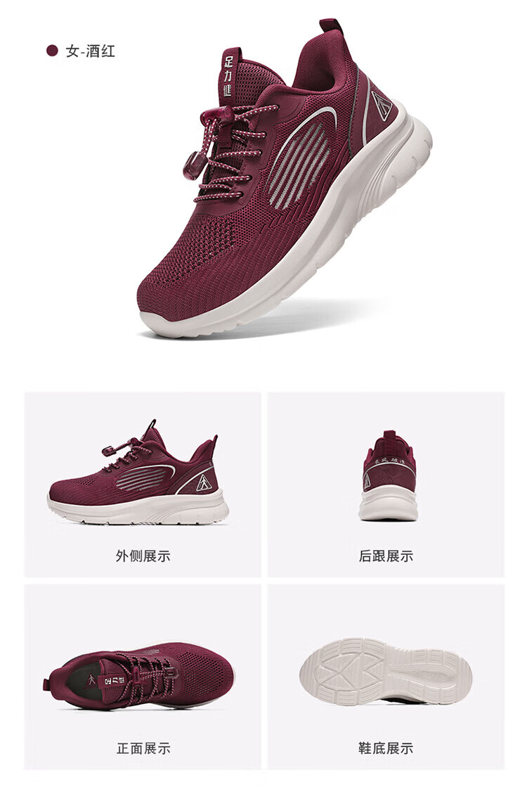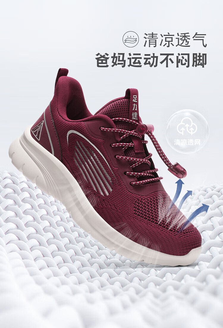 足力健正品老人闰月鞋网面透气休闲运动鞋软弹厚底防滑爸爸鞋舒适轻盈鞋 绛紫 39