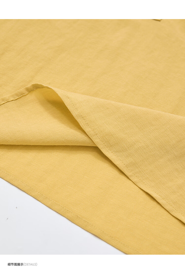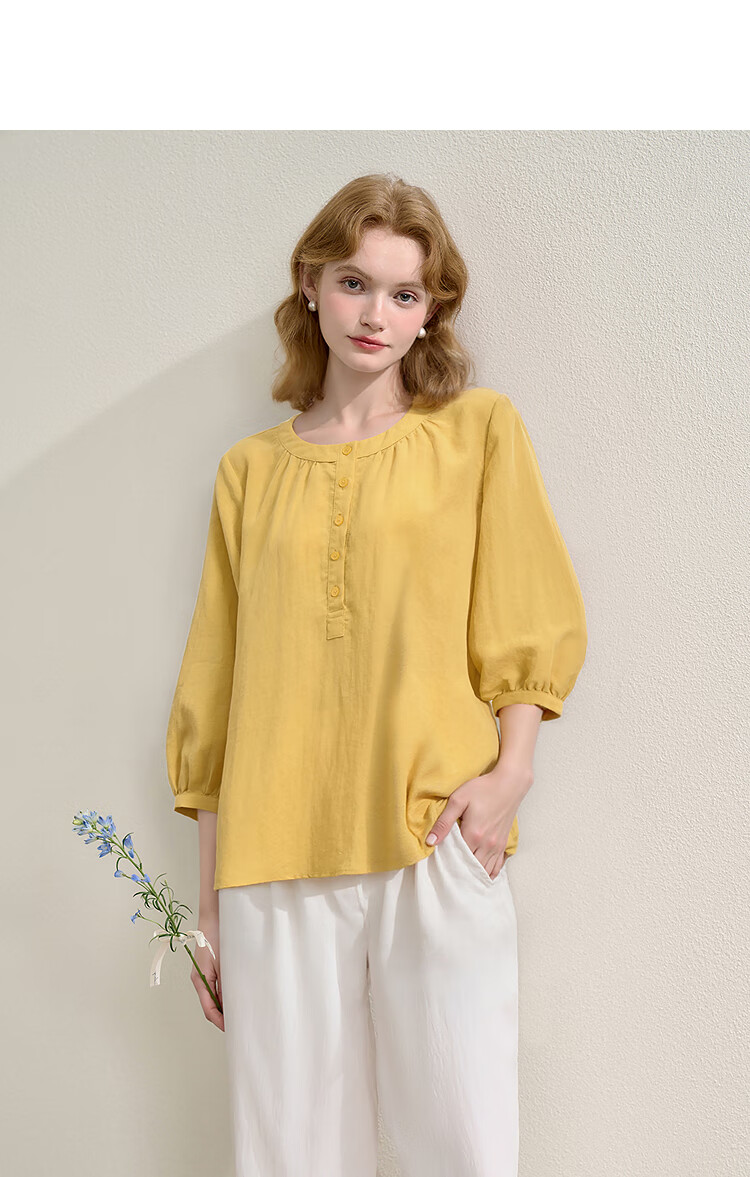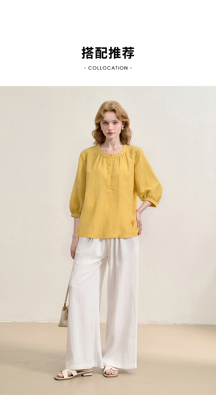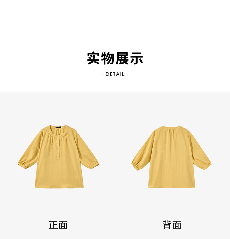 西遇通勤宽松圆领七分袖衬衫女2025夏季复古文艺百搭休闲衬衣 黄色 L (165)