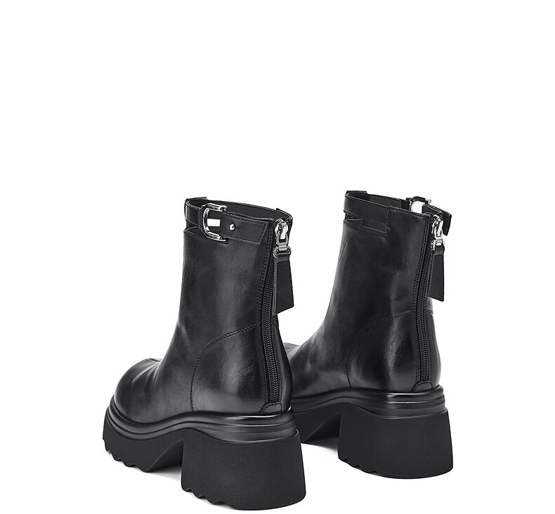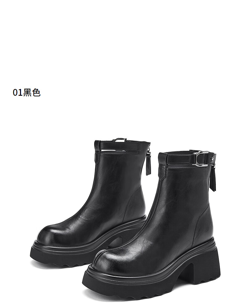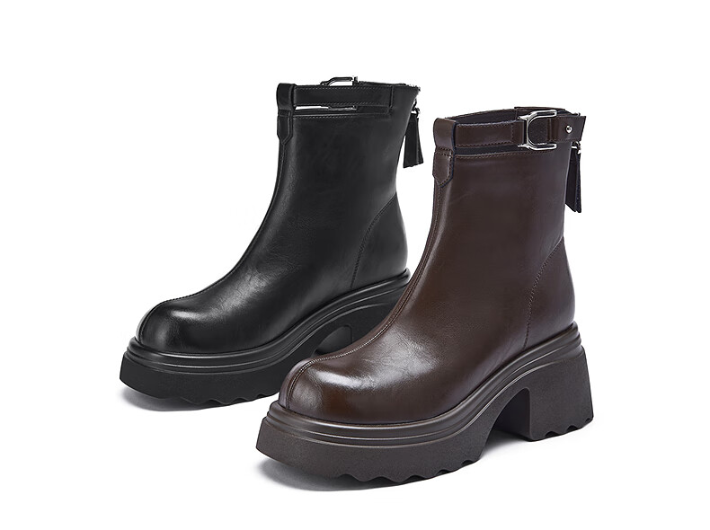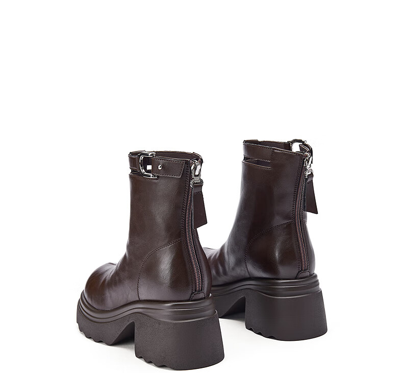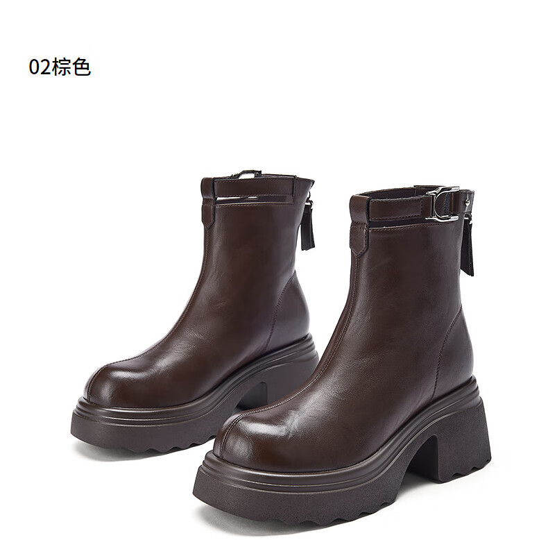 热风厚底时装靴女2025年冬季新款百搭瘦瘦靴小个子增高短靴子女鞋 02棕色 37