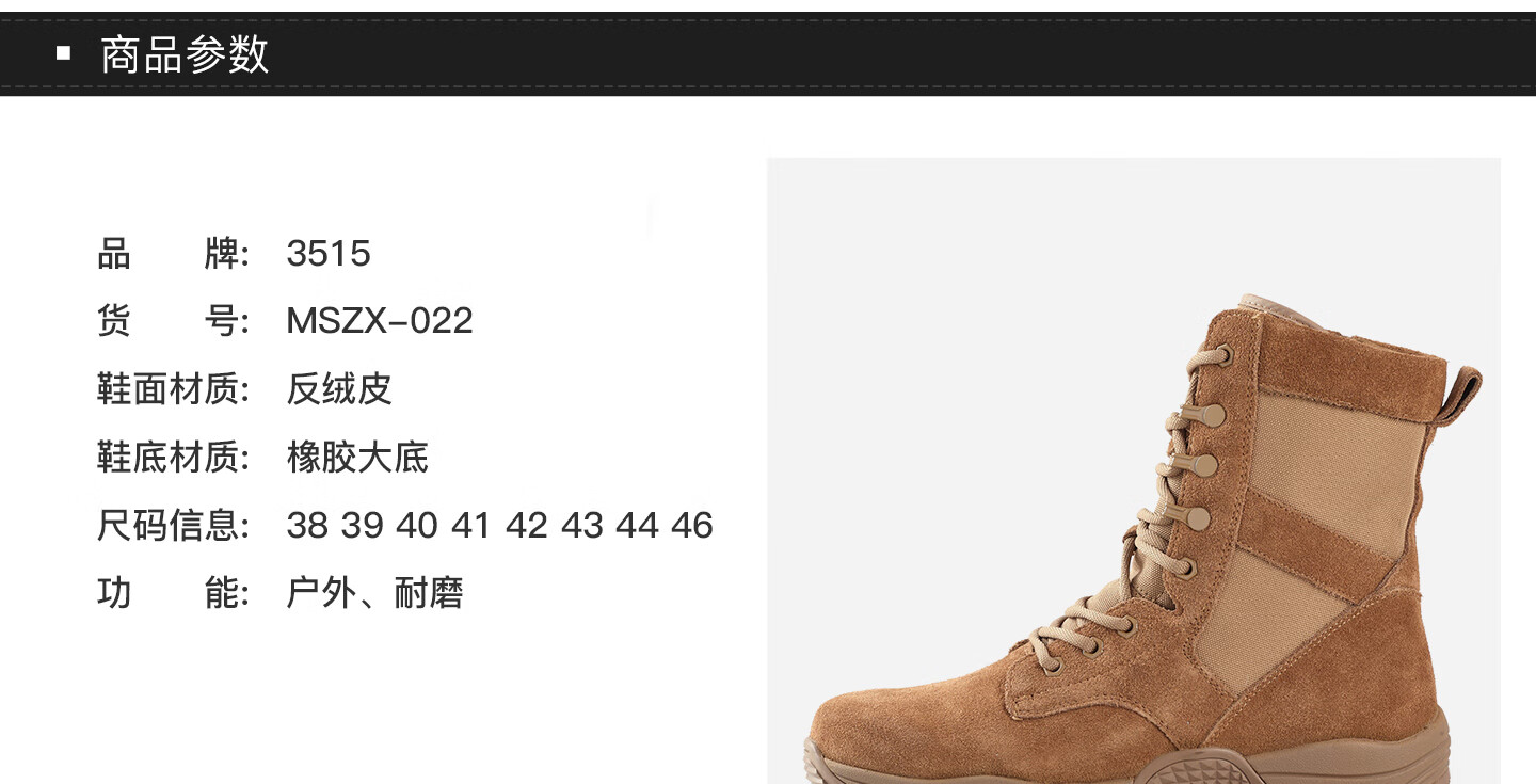 3515男靴新式棕色作战靴户外防刺登山靴防滑耐磨训练靴沙漠靴 棕色 42