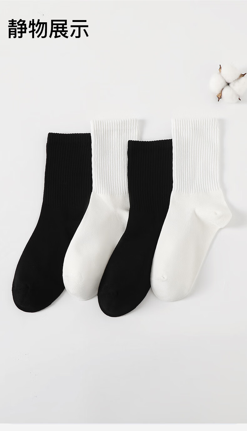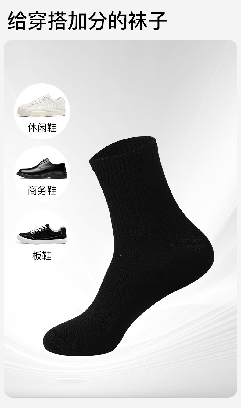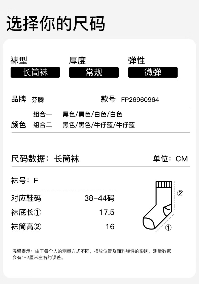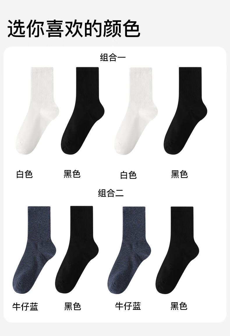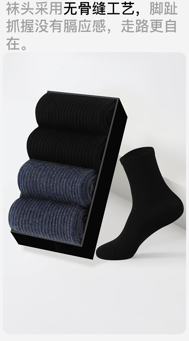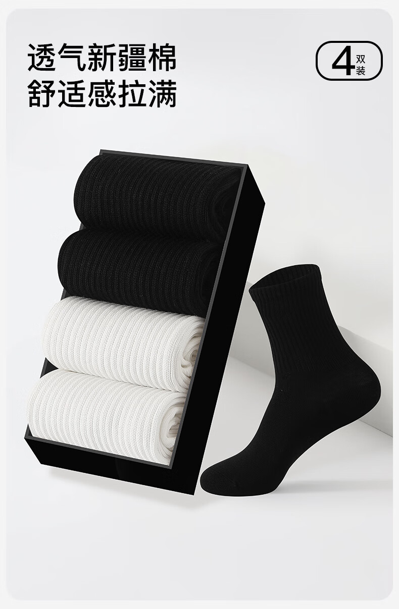 芬腾袜子男2025新疆棉4双装柔软透气棉袜百搭男士长筒袜商务休闲男袜 黑色/黑色/牛仔蓝/牛仔蓝 4双 均码
