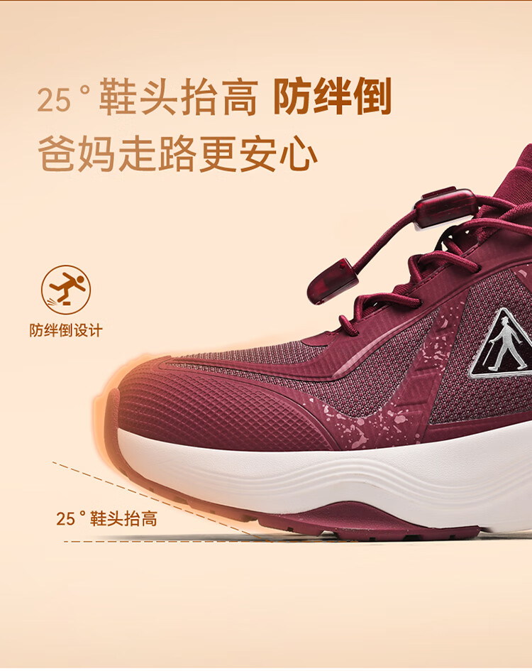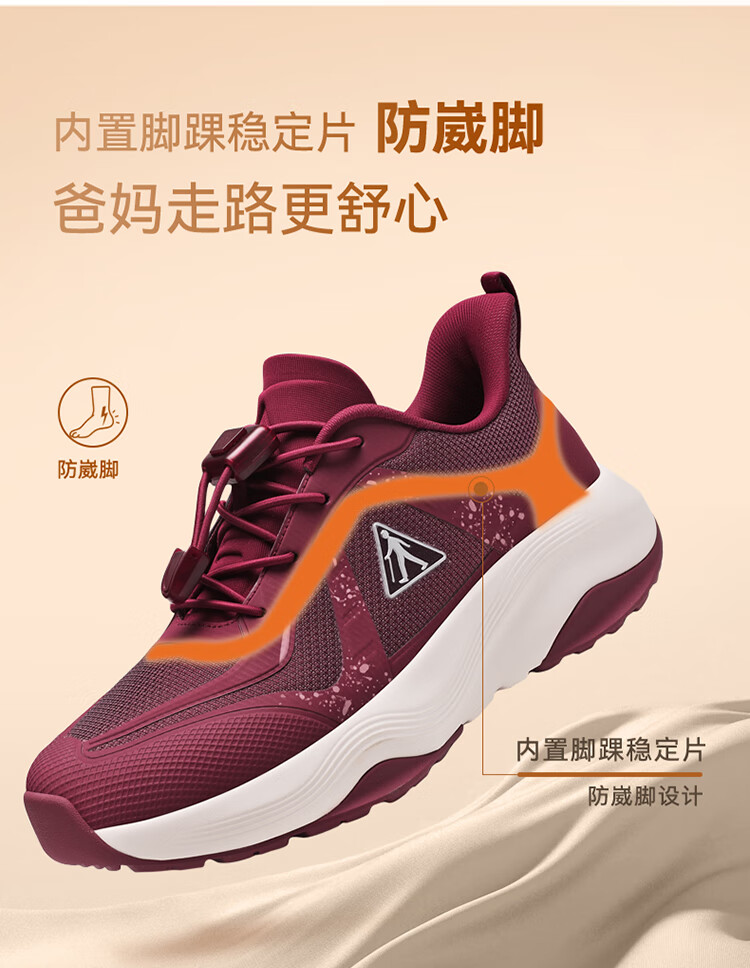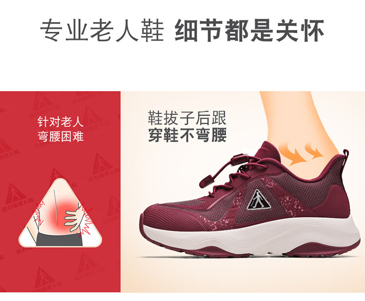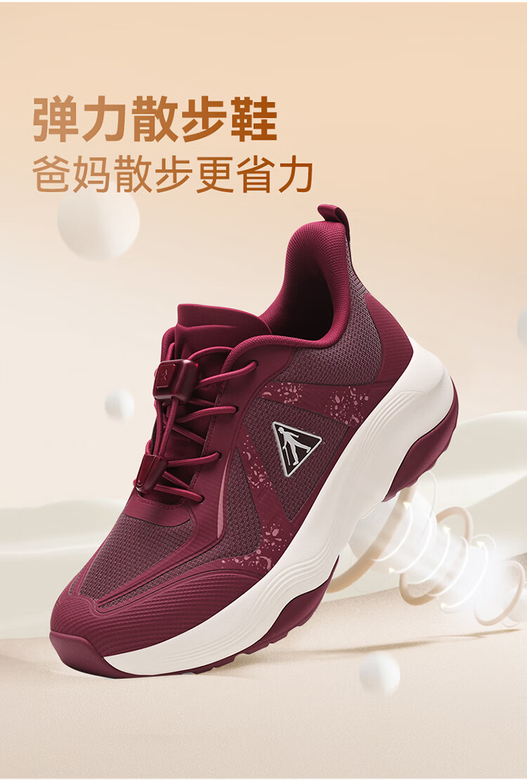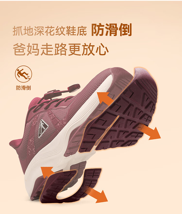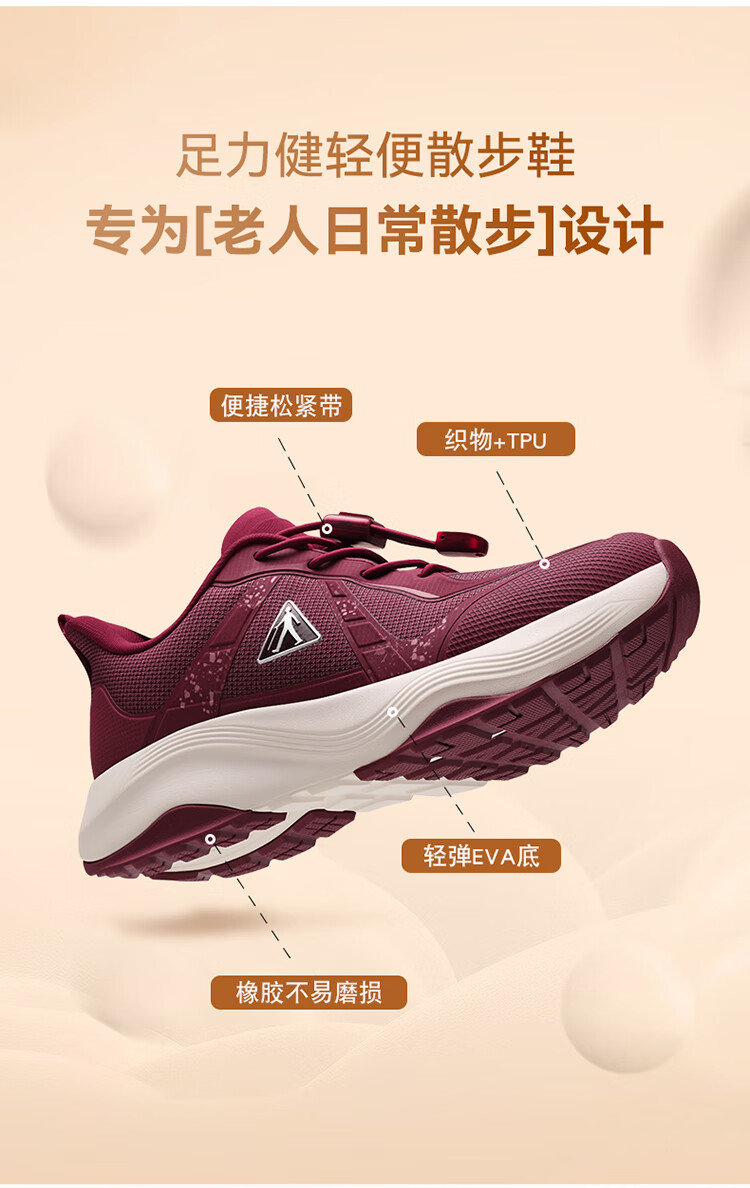 足力健正品防滑安全鞋秋季新款软弹缓震休闲女鞋黑科技防跌倒运动散步鞋 绛紫 35