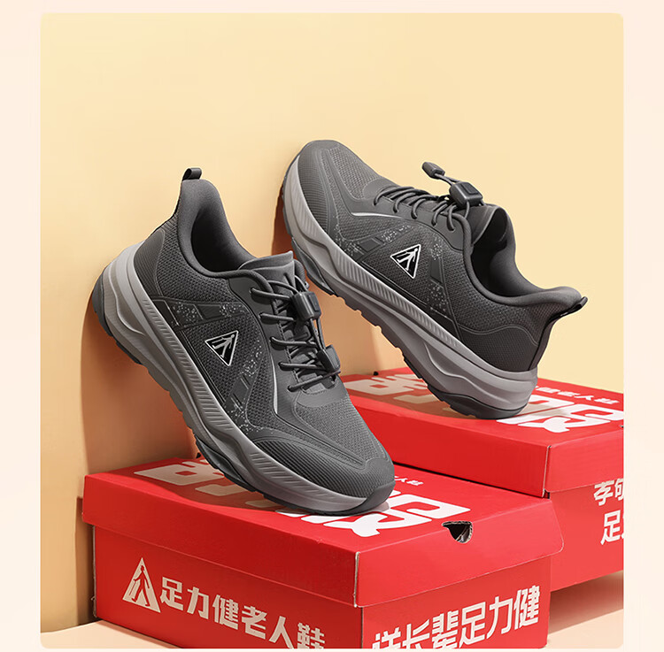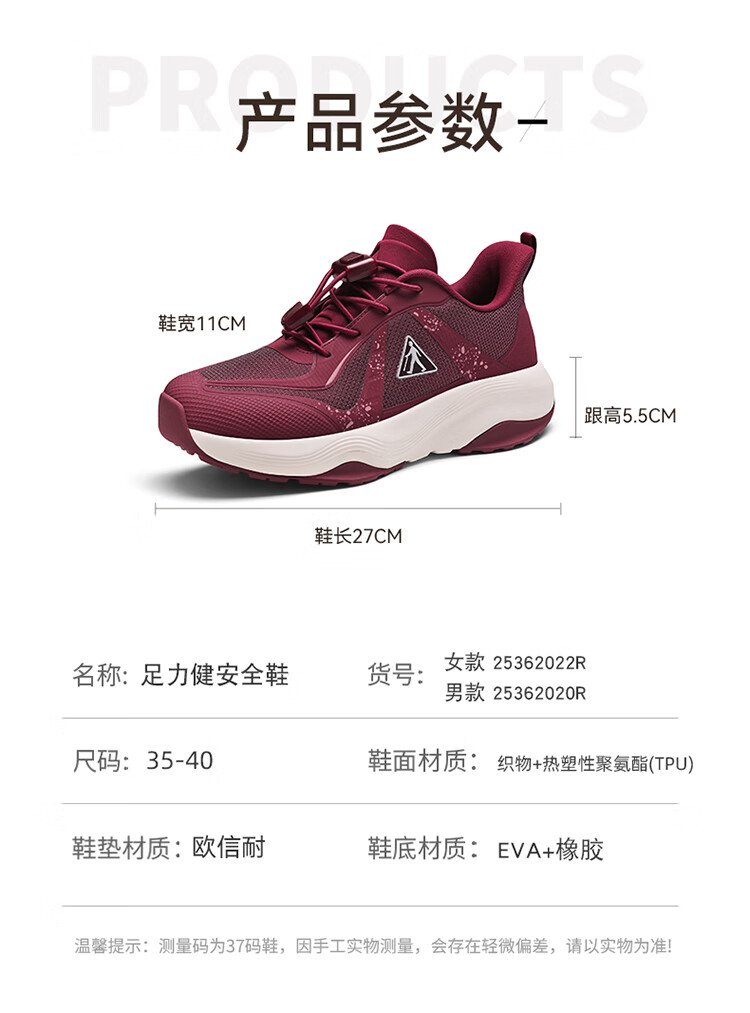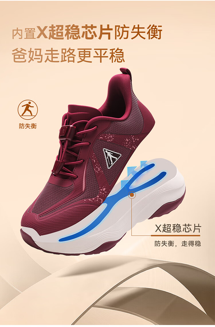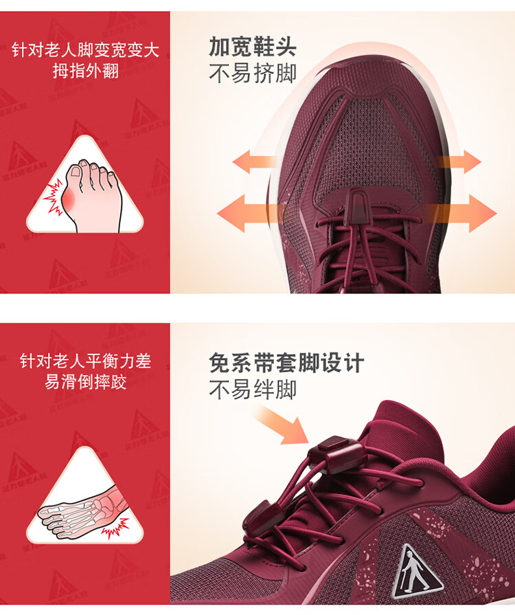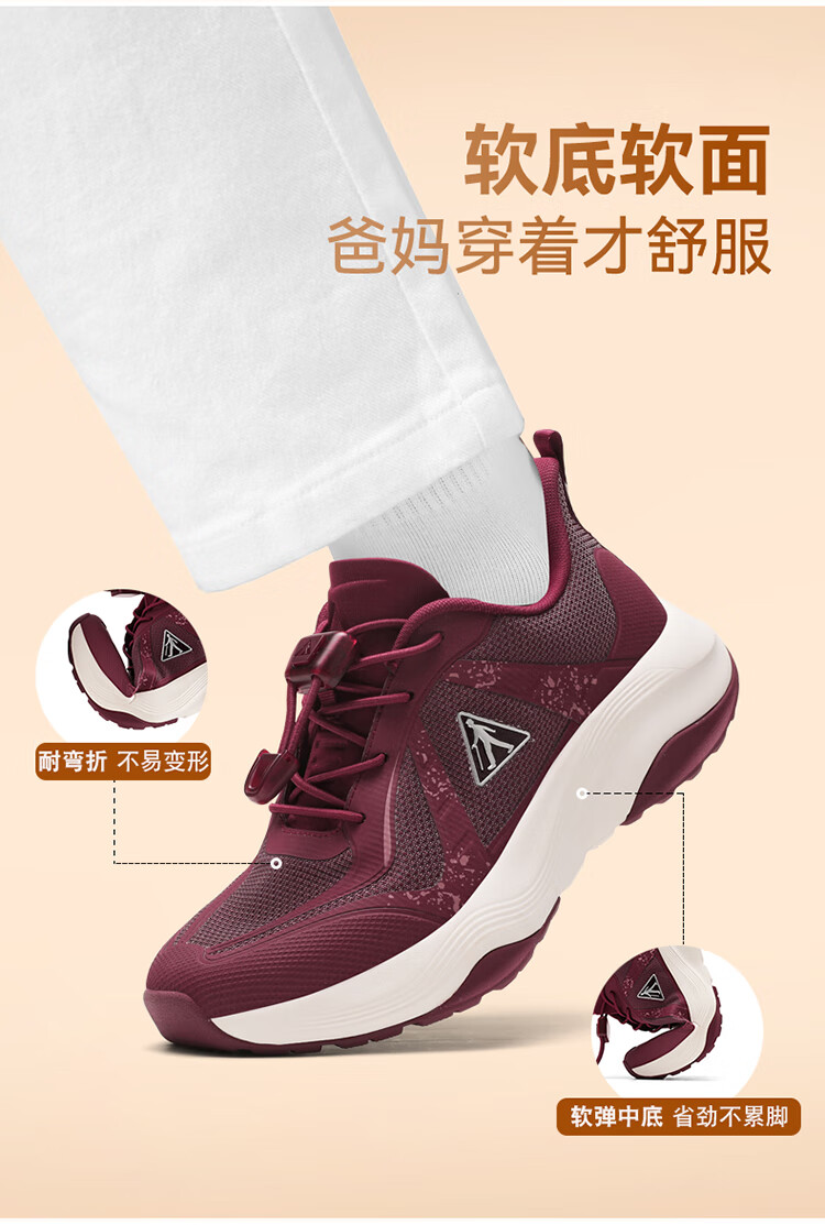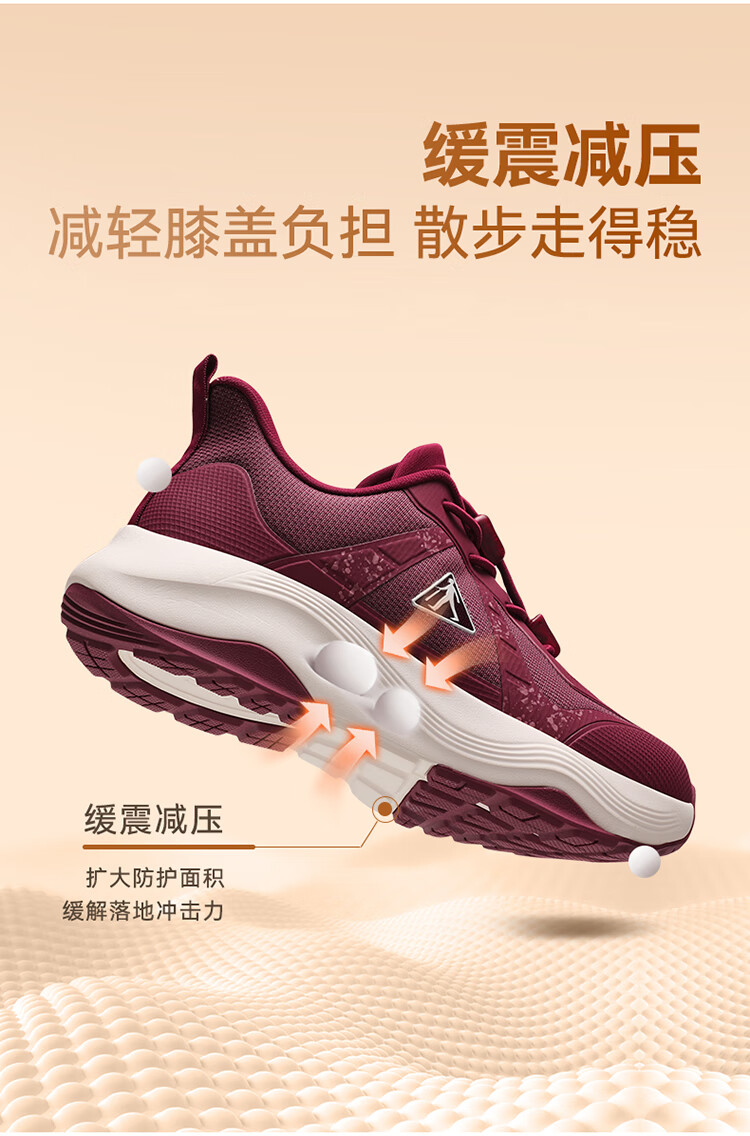 足力健正品防滑安全鞋秋季新款软弹缓震休闲女鞋黑科技防跌倒运动散步鞋 绛紫 35