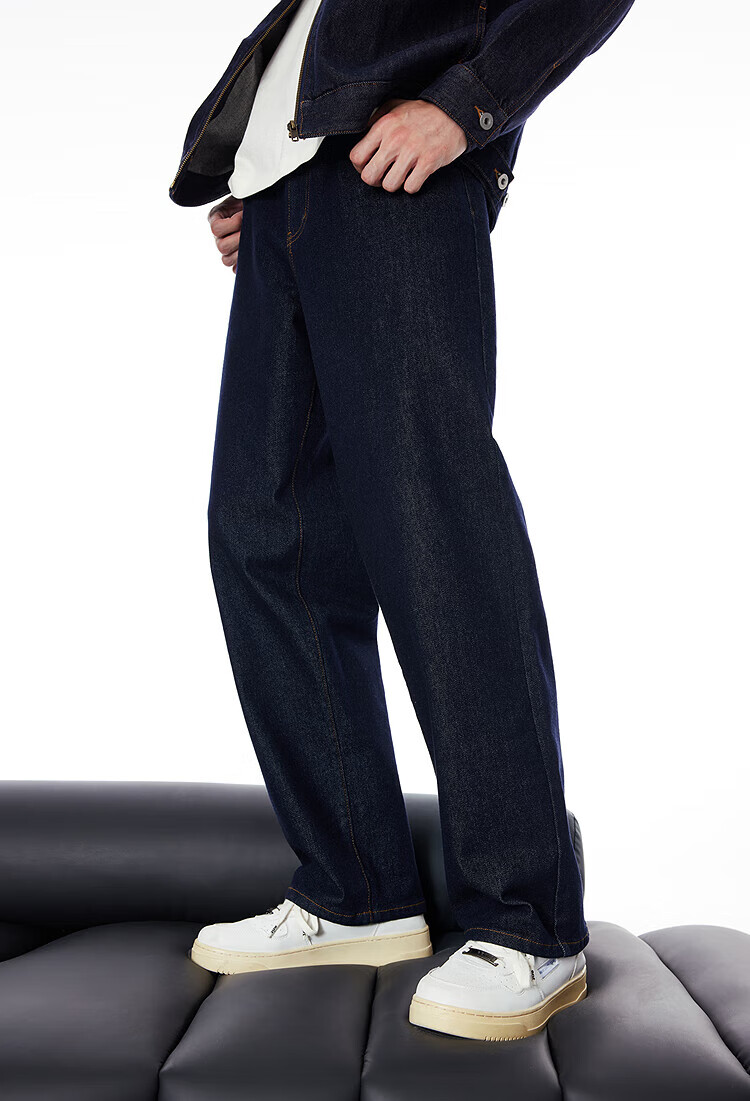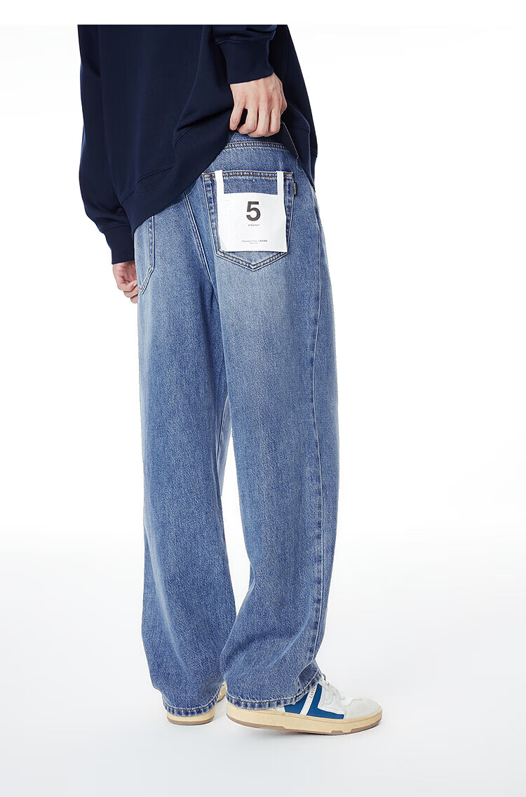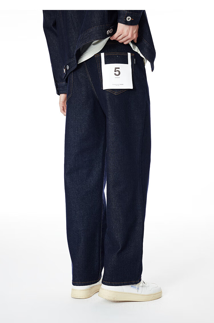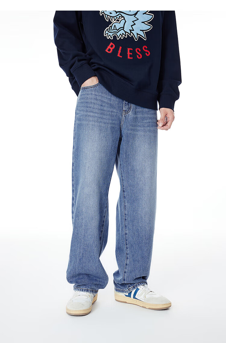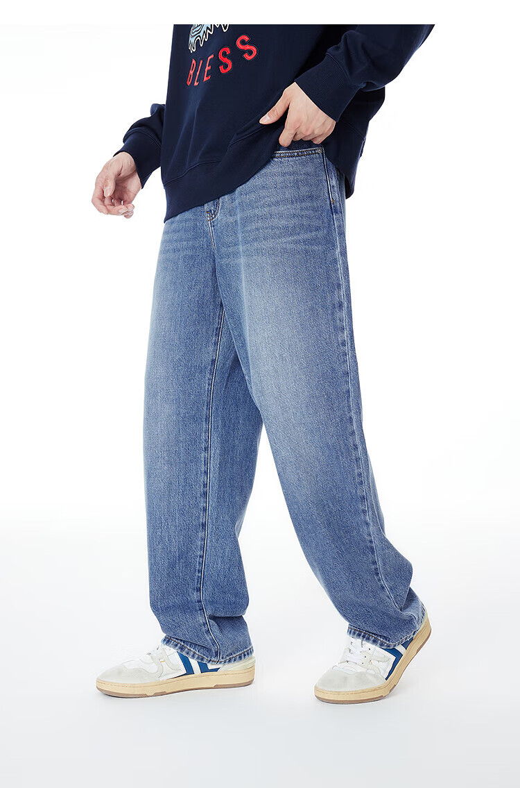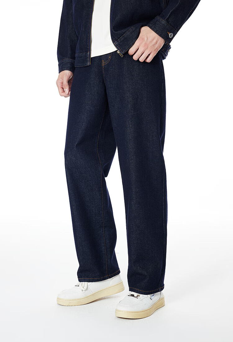 太平鸟男装牛仔裤水洗宽松直筒牛仔裤 宝蓝色1(宽松直筒) 2XL