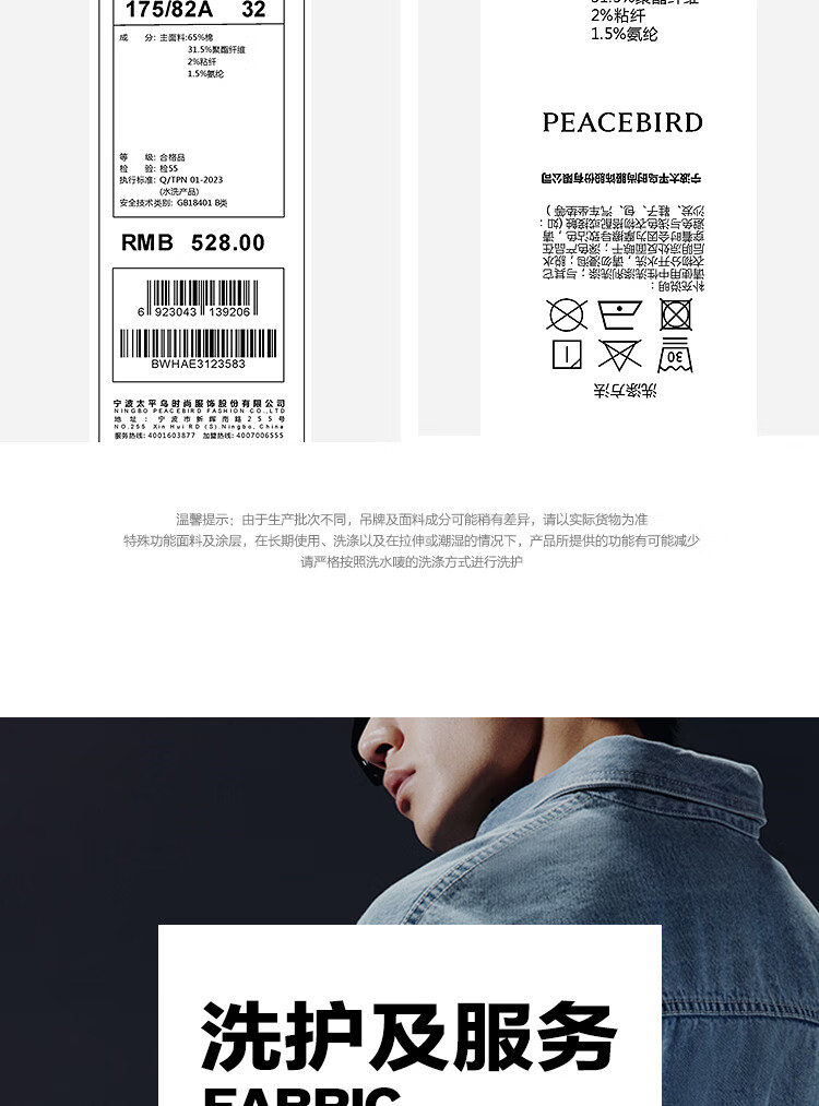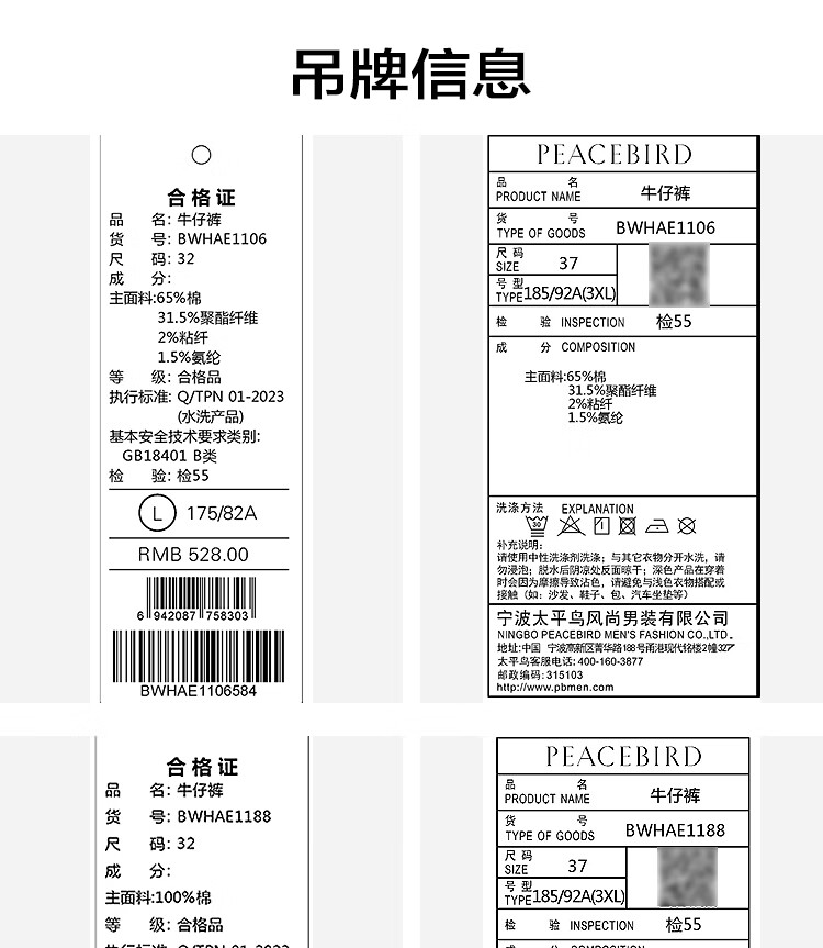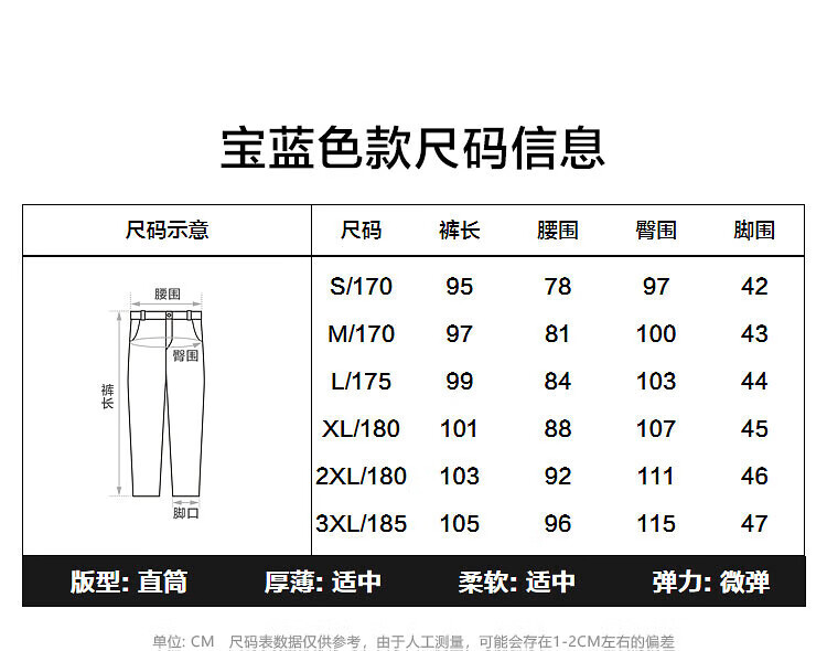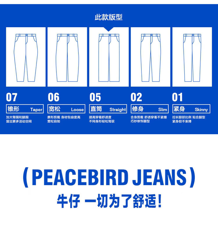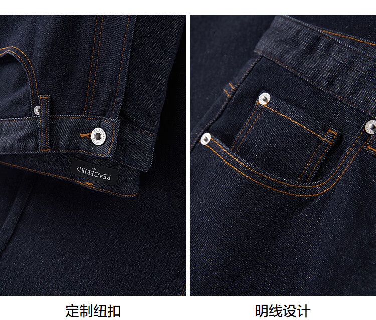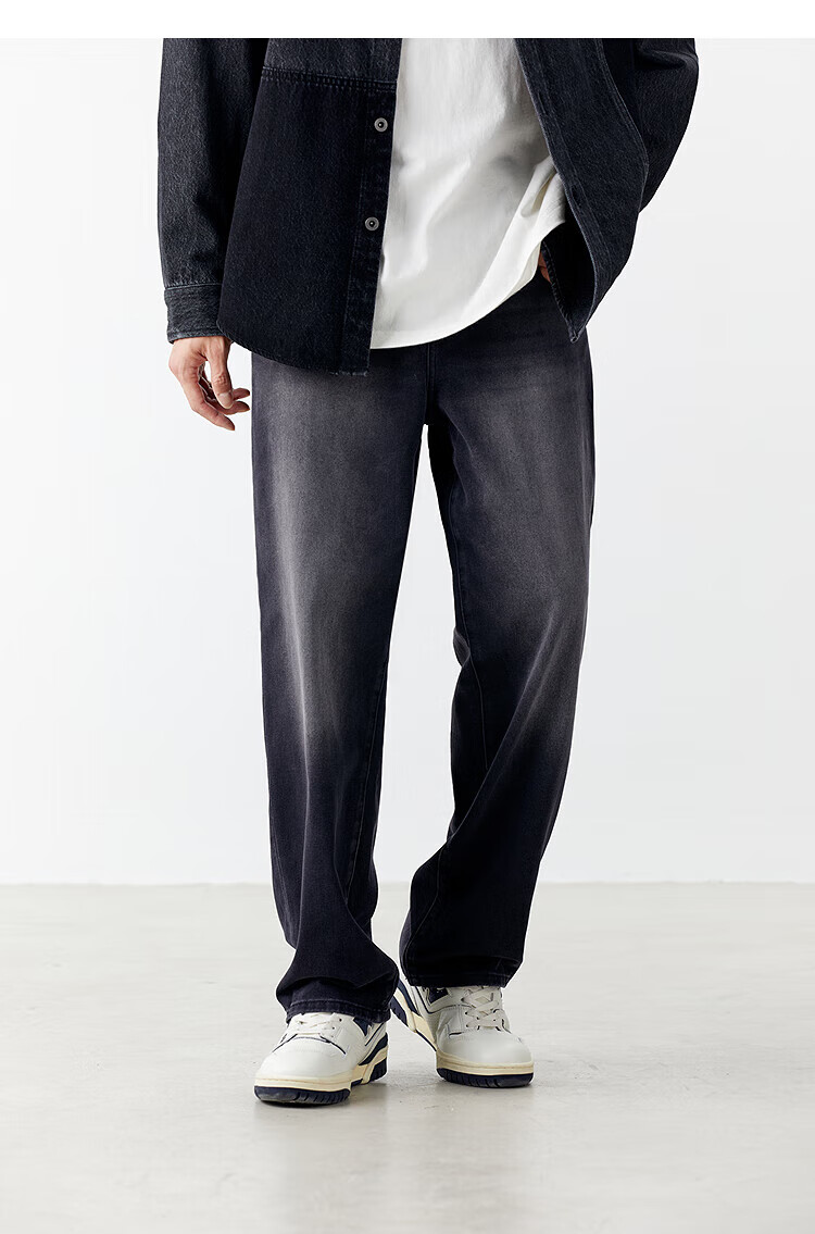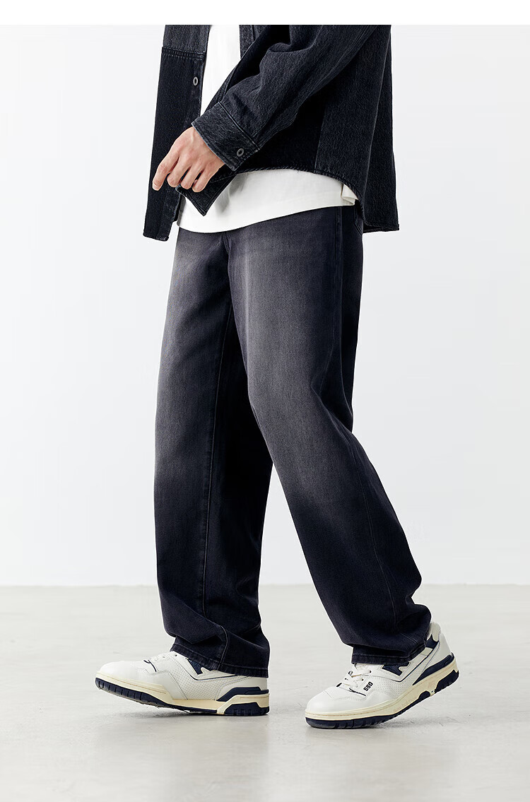 太平鸟男装牛仔裤水洗宽松直筒牛仔裤 宝蓝色1(宽松直筒) 2XL