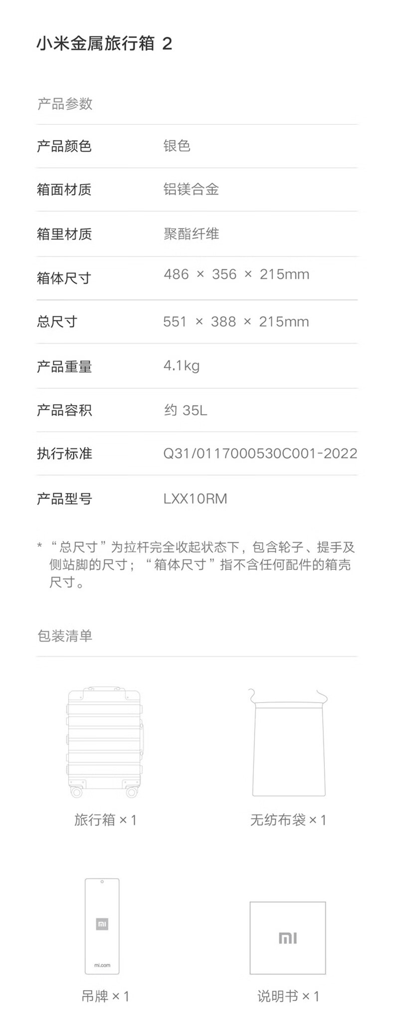 小米行李箱20英寸铝镁合金拉杆箱金属旅行箱高端商务密码箱银色