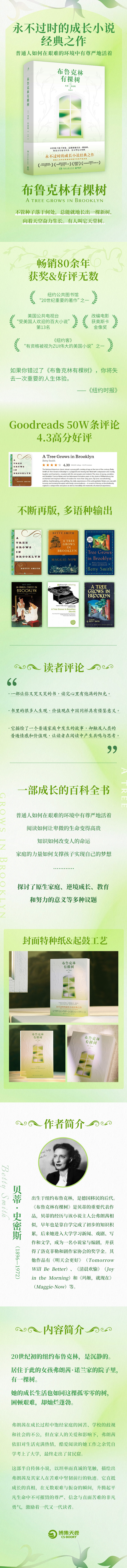 布鲁克林有棵树 贝蒂·史密斯 永不过时的成长小说经典之作 不管种子落于何处,总能就地长出一棵新树,向着天空奋力生长 布鲁克林有棵树