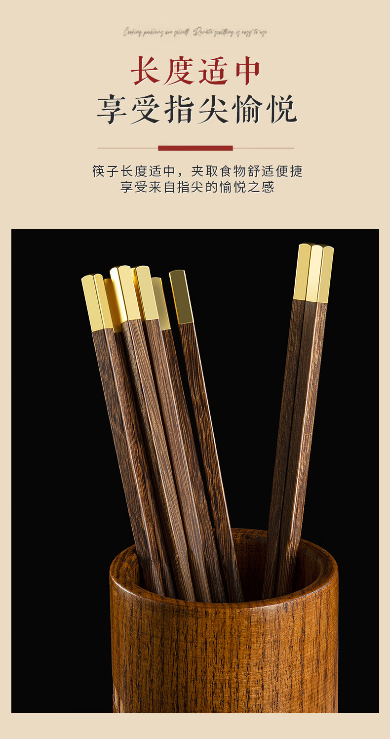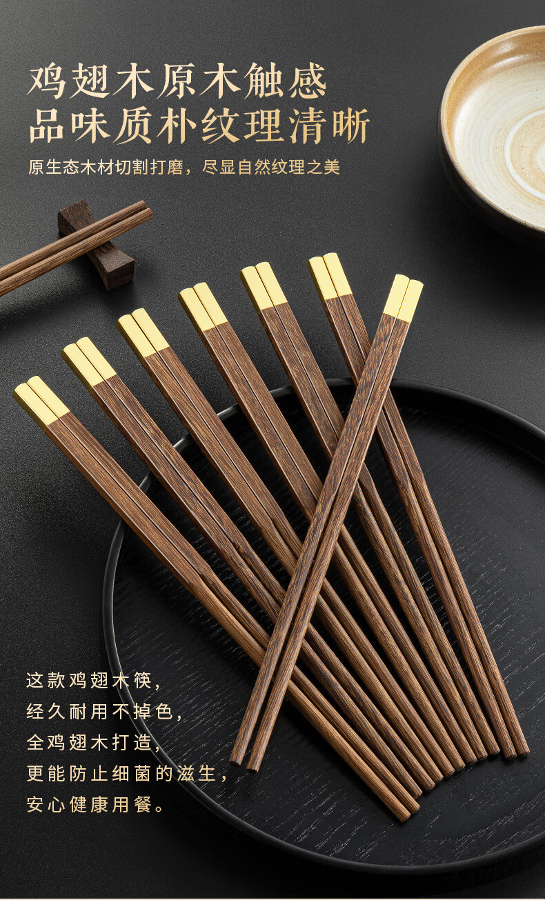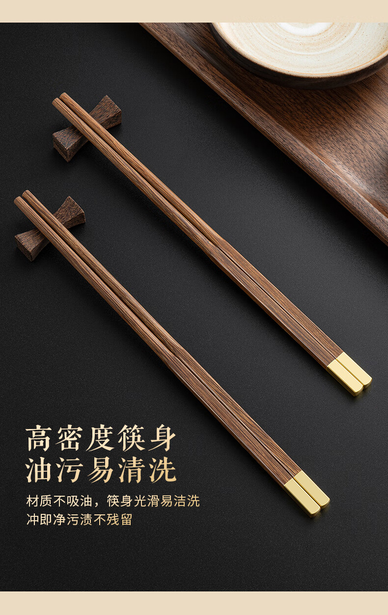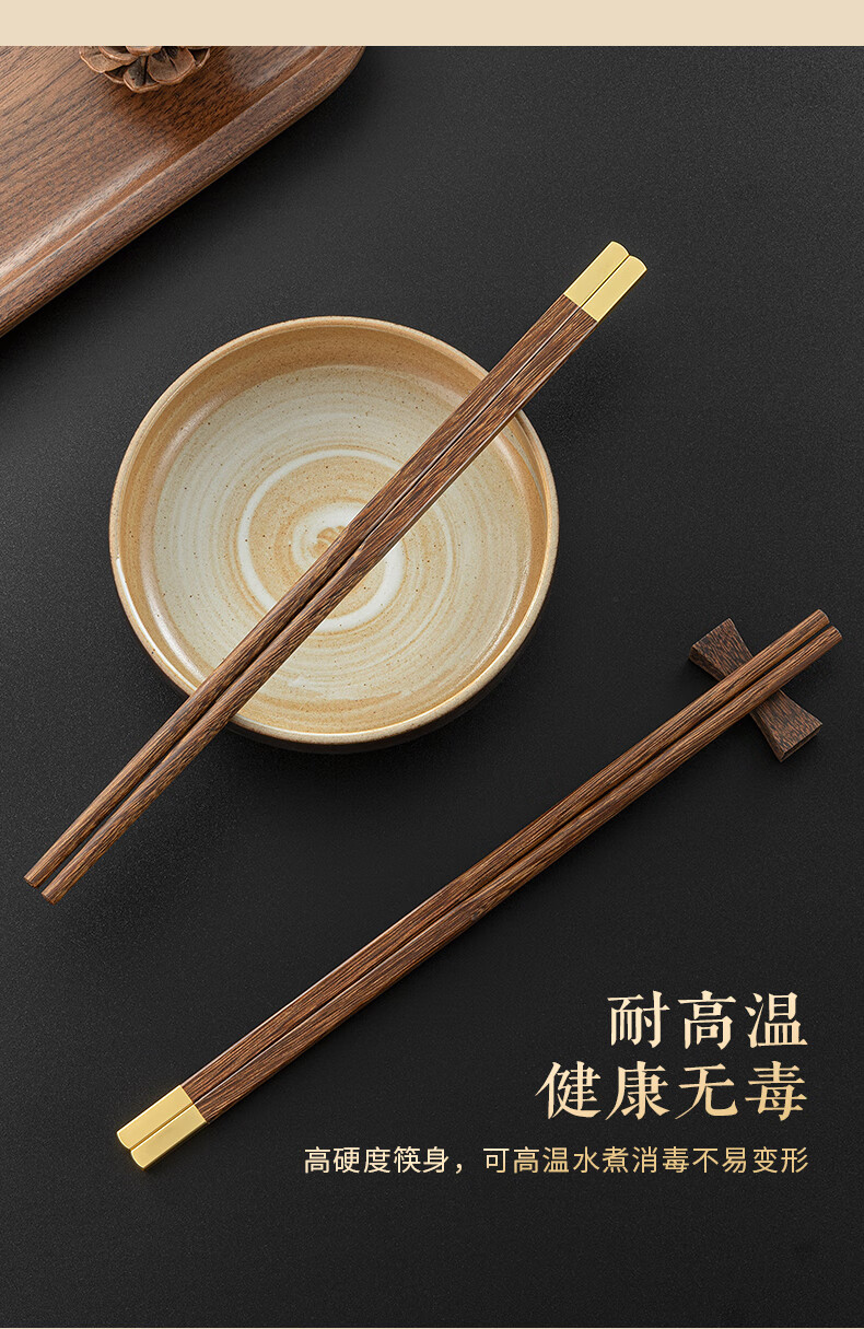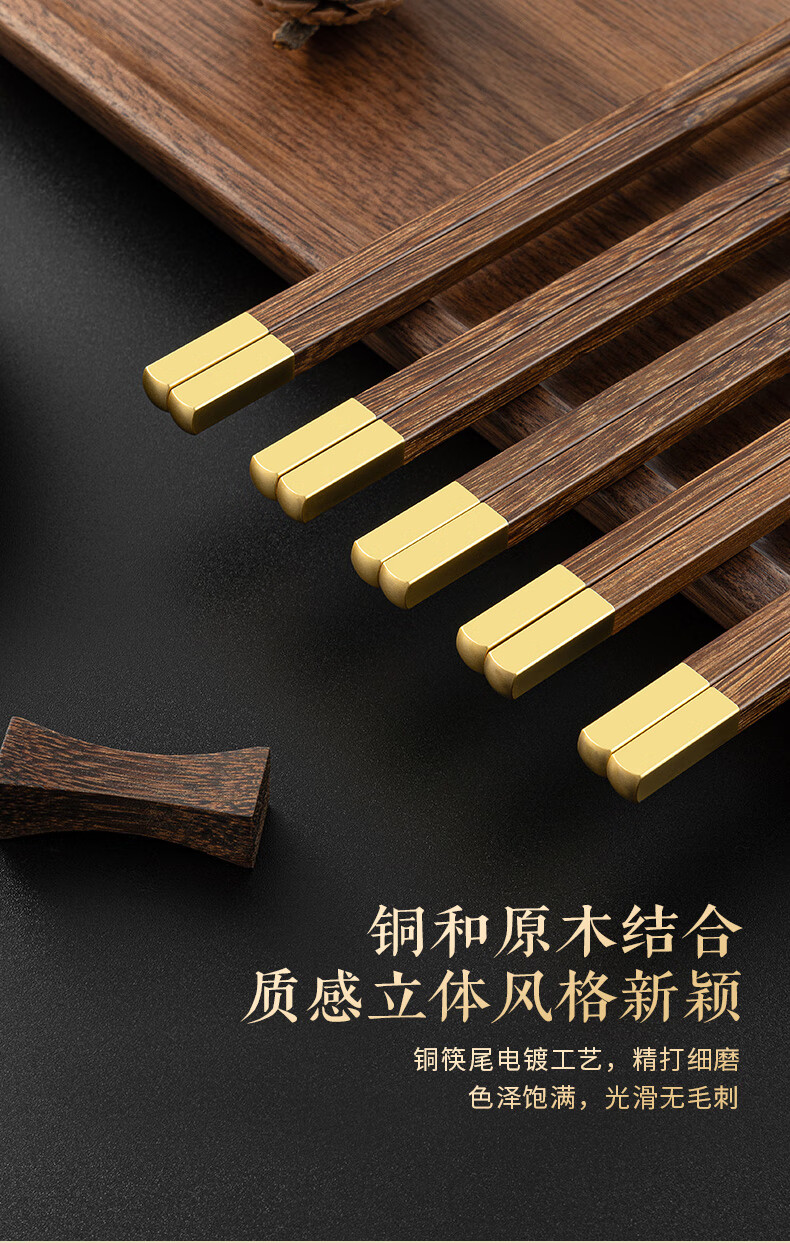 千年恋木高档铜头天然筷子家用中华筷实木防滑无漆无蜡抗菌防霉 25cm鸡翅木铜头【10双装】