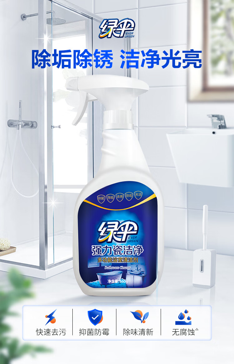 绿伞强力瓷洁净 多功能浴室清洁剂 除垢除锈 抑菌防霉 660g*2瓶