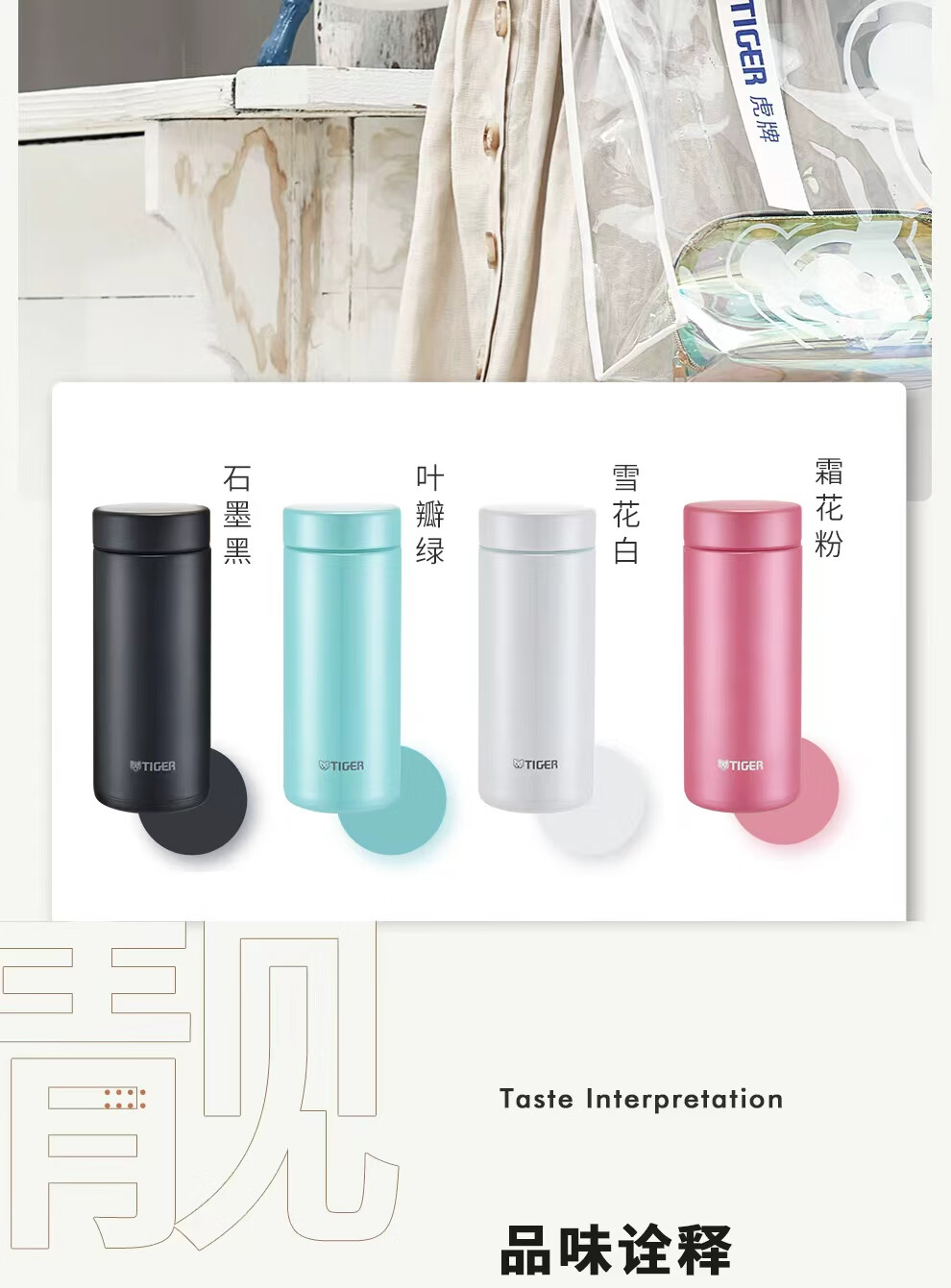 虎牌(TIGER)保温保冷杯轻便真空办公男女水杯MMZ-A35C-GL叶瓣绿350ml