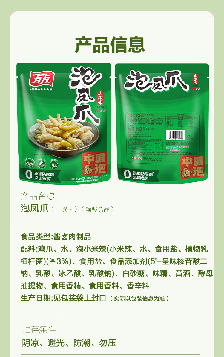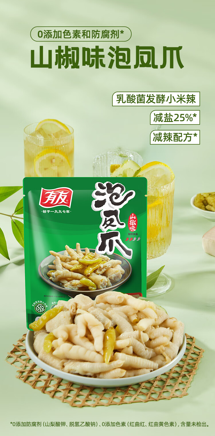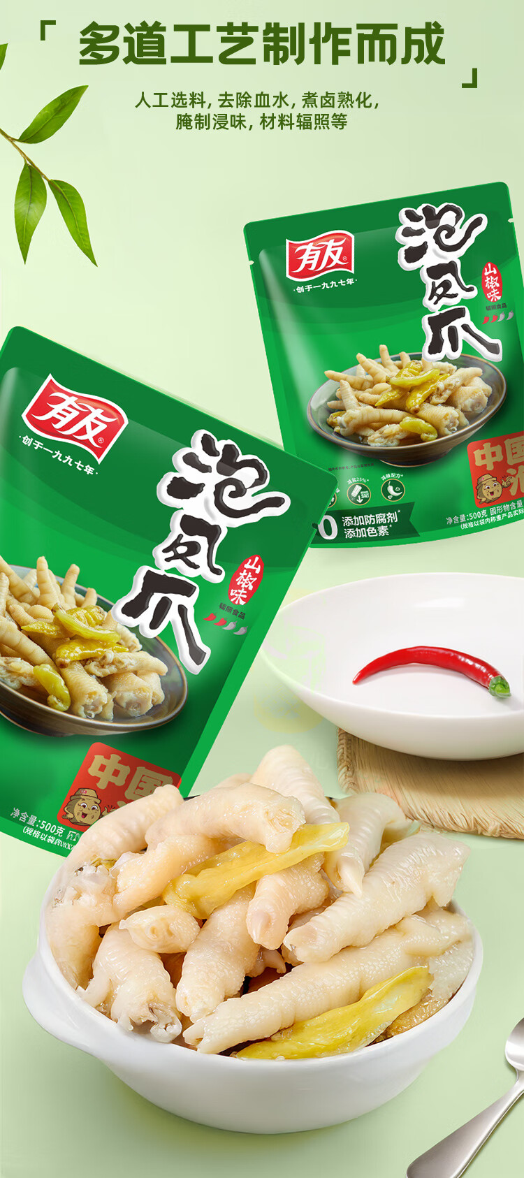 有友 泡椒凤爪 山椒味500g 减盐减辣内含小包装 追剧必备零食 大礼包