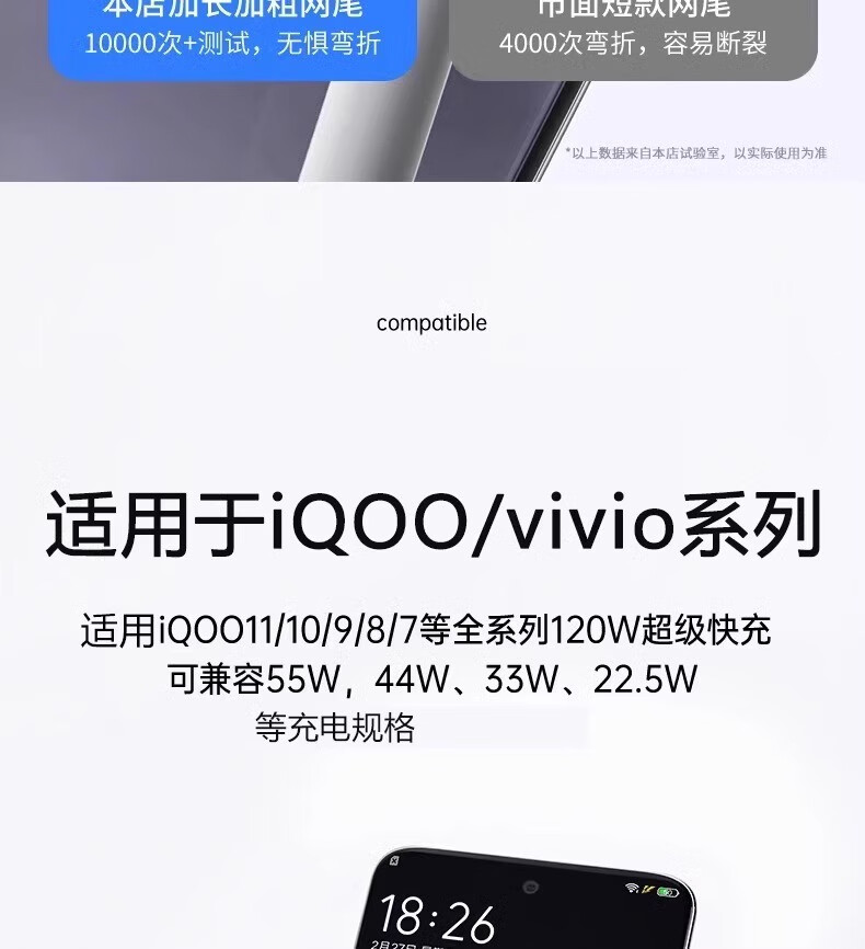 【京东快递】120w快充数据线typec适用vivo手机Type-C充电线器6a安卓iqooneo5超级闪充10/9pro闪充 1.5米正品快充线【纯铜】