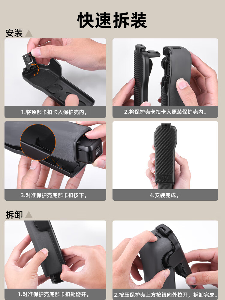 BRDRC适用DJI大疆Pocket3保护盖镜头保护壳云台罩OSMO灵眸相机屏幕保护盖板防摔防刮配件 【pocket3】短款保护盖-黑[可兼容拓展支架]