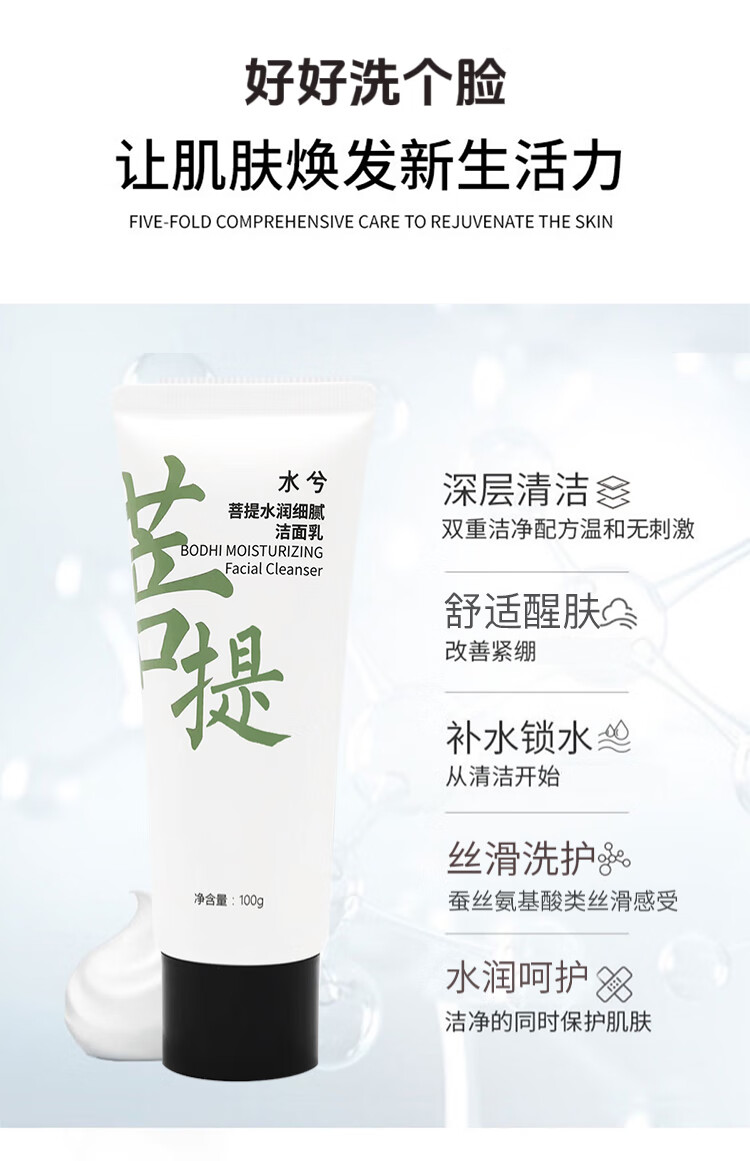 水兮(SHUIXI) 水兮洗面奶菩提氨基酸洁面乳深层清洁水润清爽洁面乳混油男女 水兮氨基酸洗面奶 100g 3.0版本
