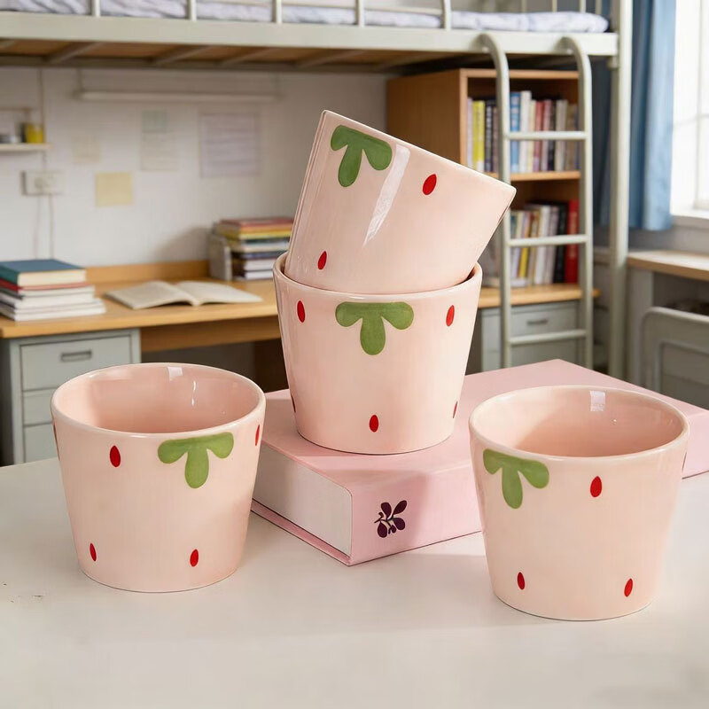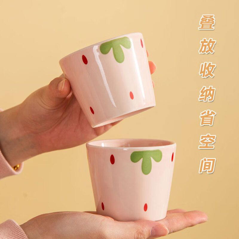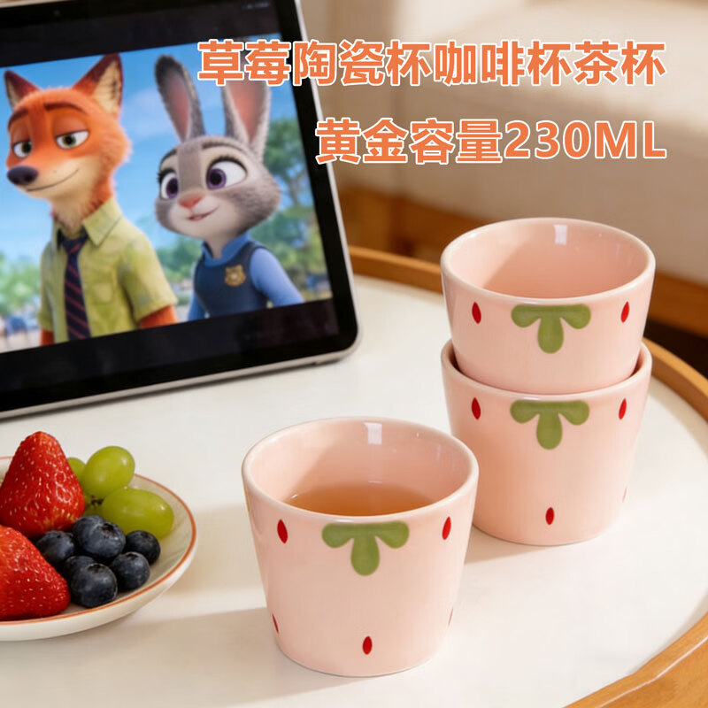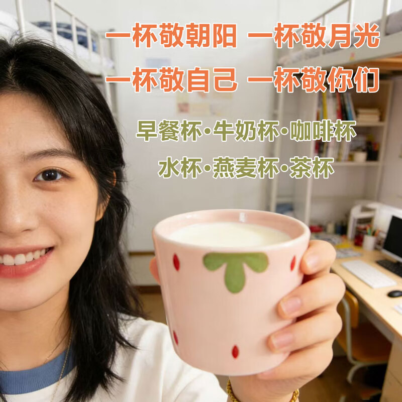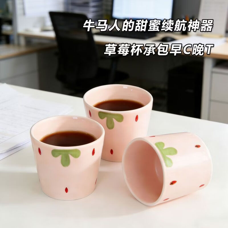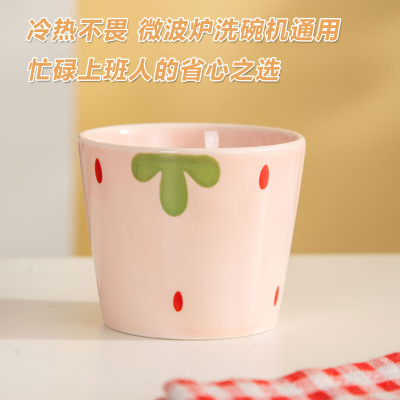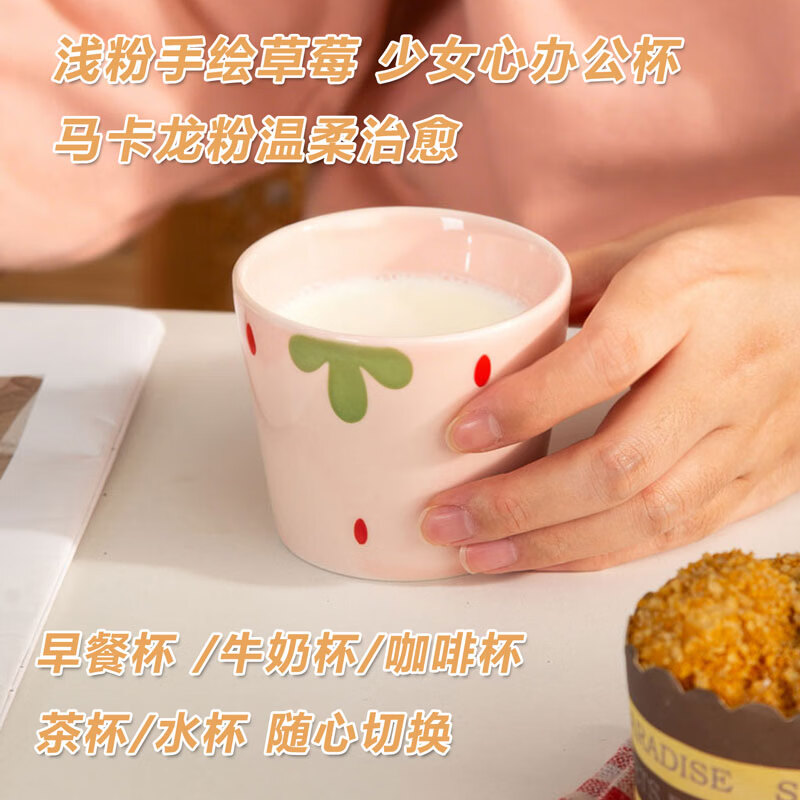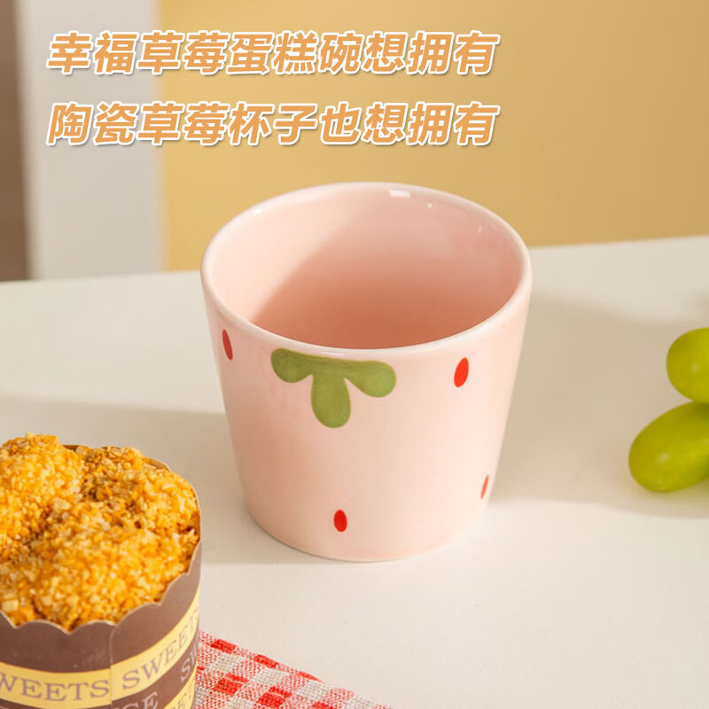 网红新款杯子草莓早餐杯陶瓷马克杯咖啡杯高颜值牛奶杯水杯茶杯子 【1个装】草莓陶瓷水杯咖啡杯-230ML