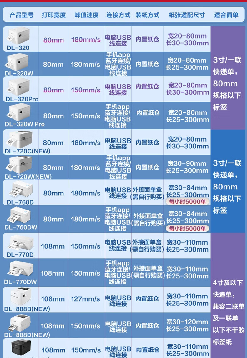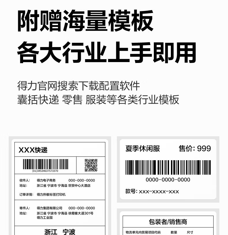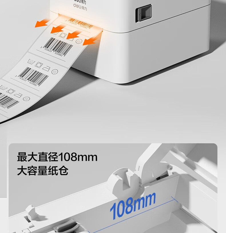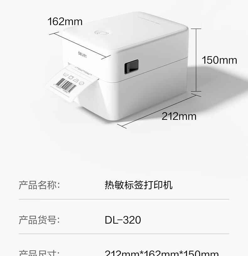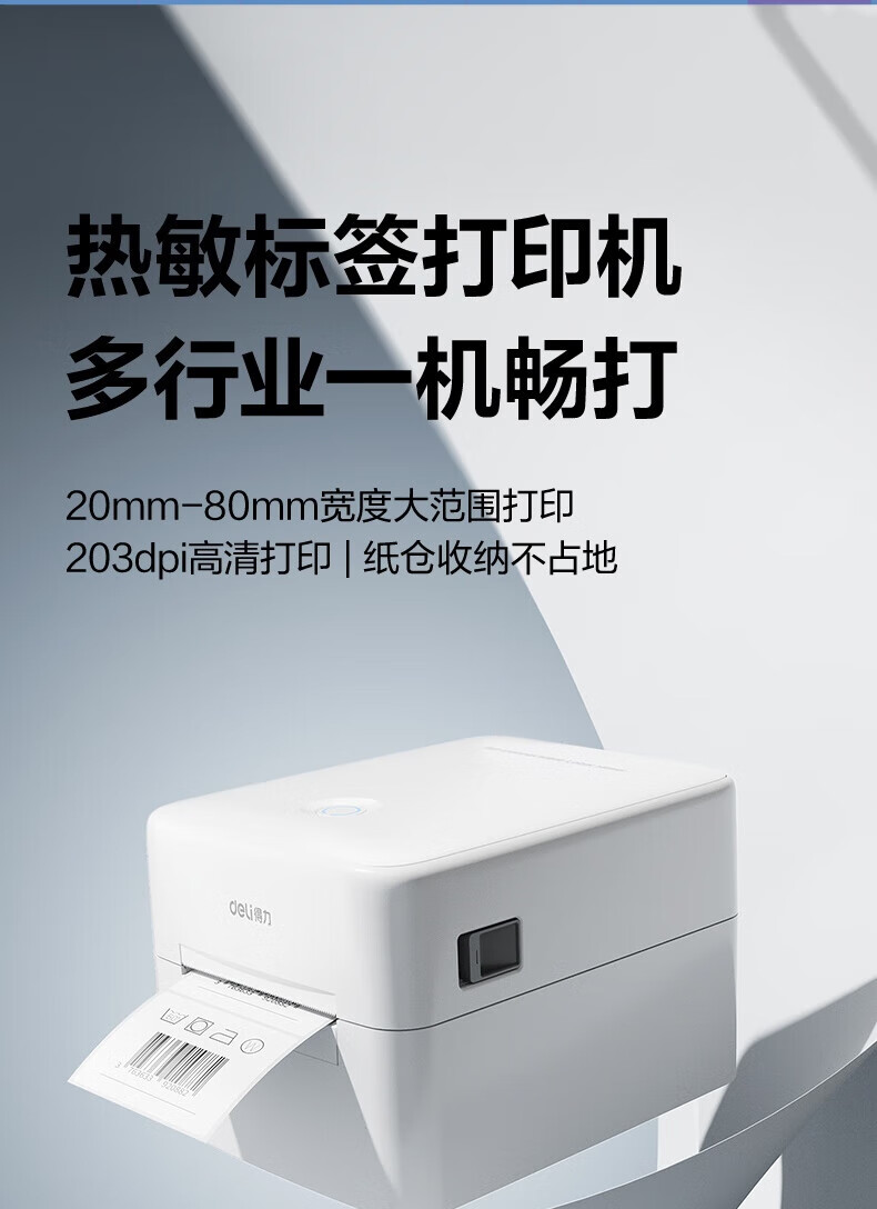 得力(deli)热敏标签打印机 快递仓储物流面单固定资产 80mm商用办公打单不干胶条码打印机 经典720c电脑版80宽度丨标签不干胶条码一联单 官方标配