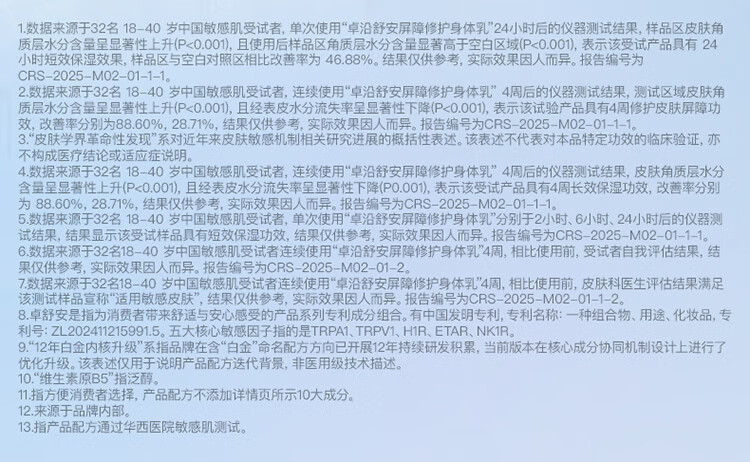 卓沿屈臣氏 卓沿舒安屏障修护身体乳 250ml 1瓶