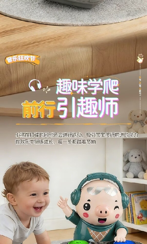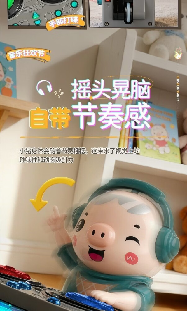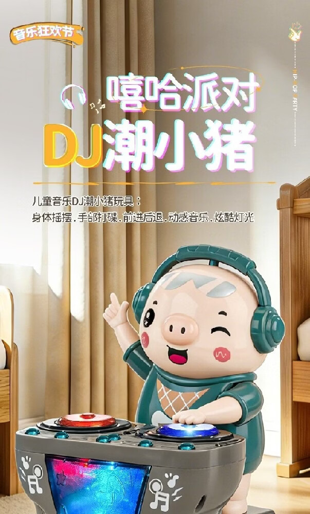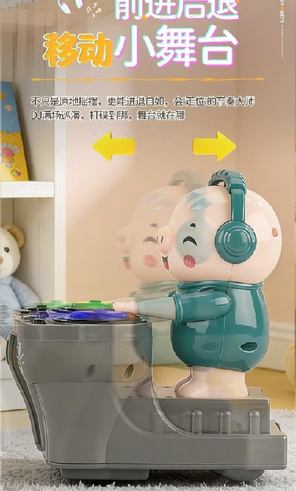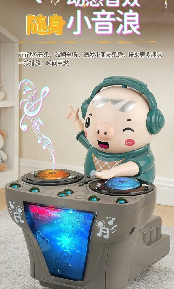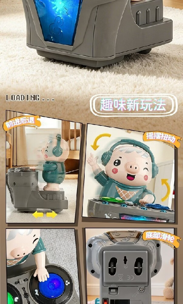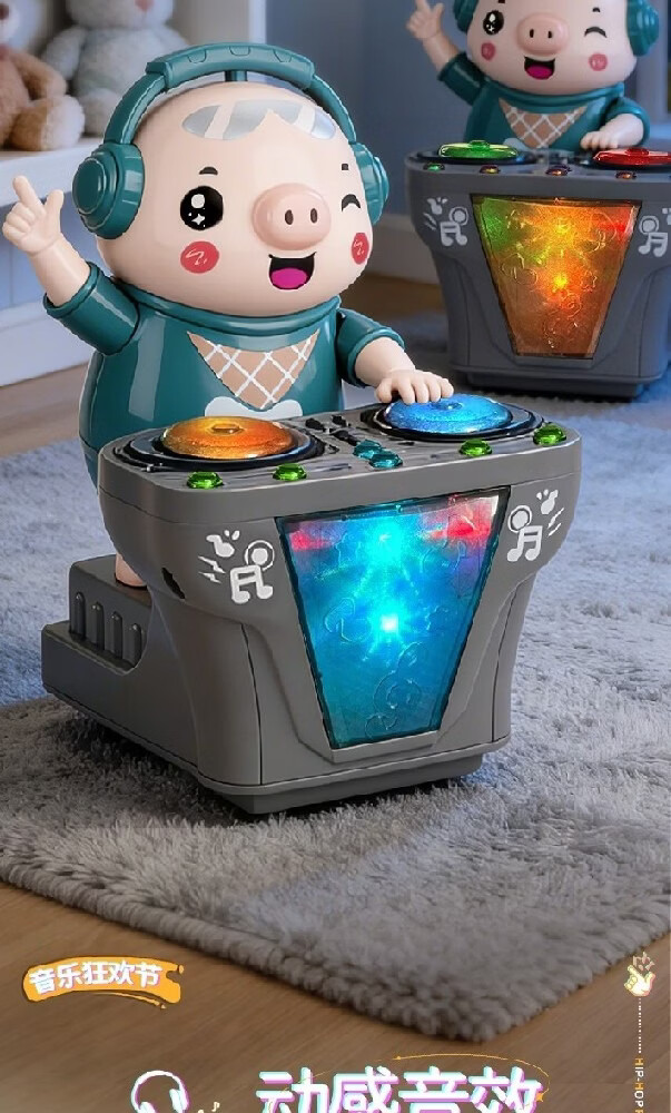 智诚名创电动小猪DJ打碟机儿童玩具会跳舞机器人音乐早教1-3-6岁男孩礼物 DJ打碟潮小猪【身体摇摆/前进后退】充电版