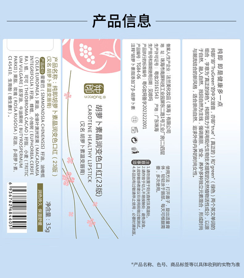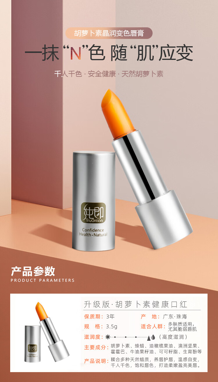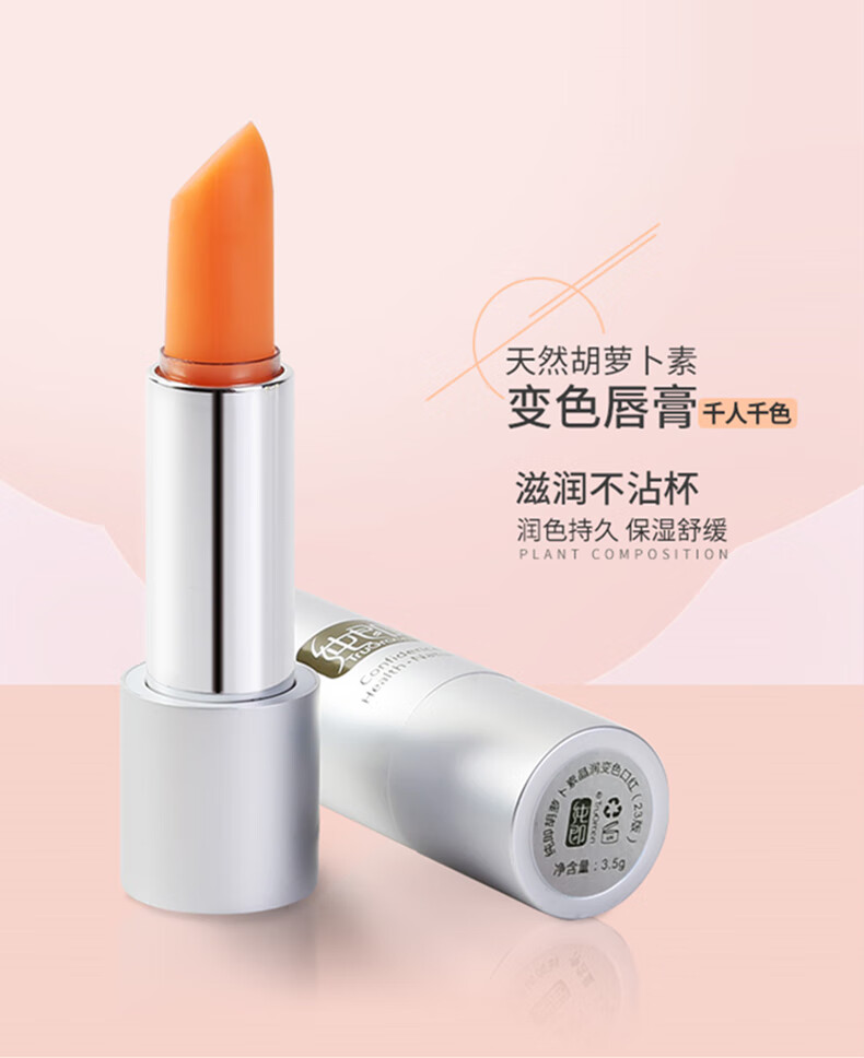 纯即天然胡萝卜素渐变色口红保湿温变滋润唇膏植物不沾杯不掉色准孕妇