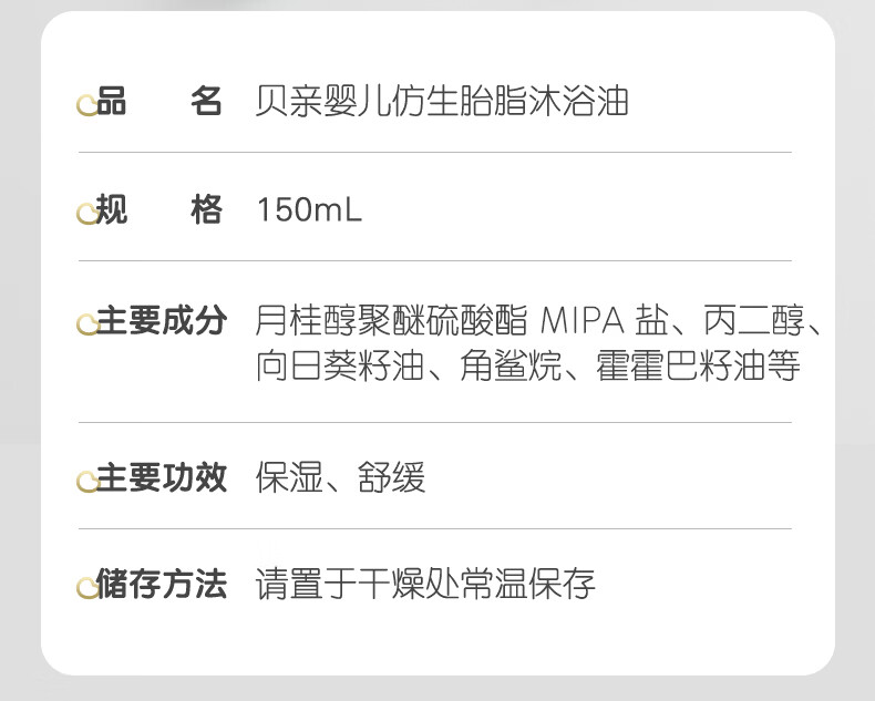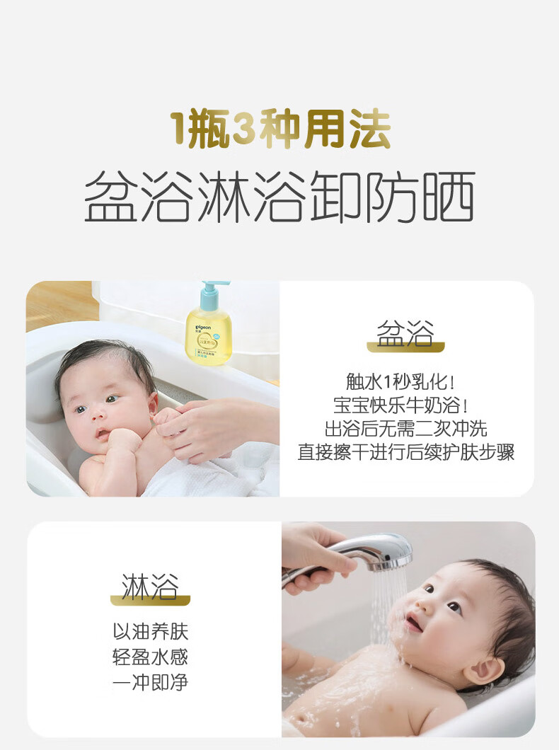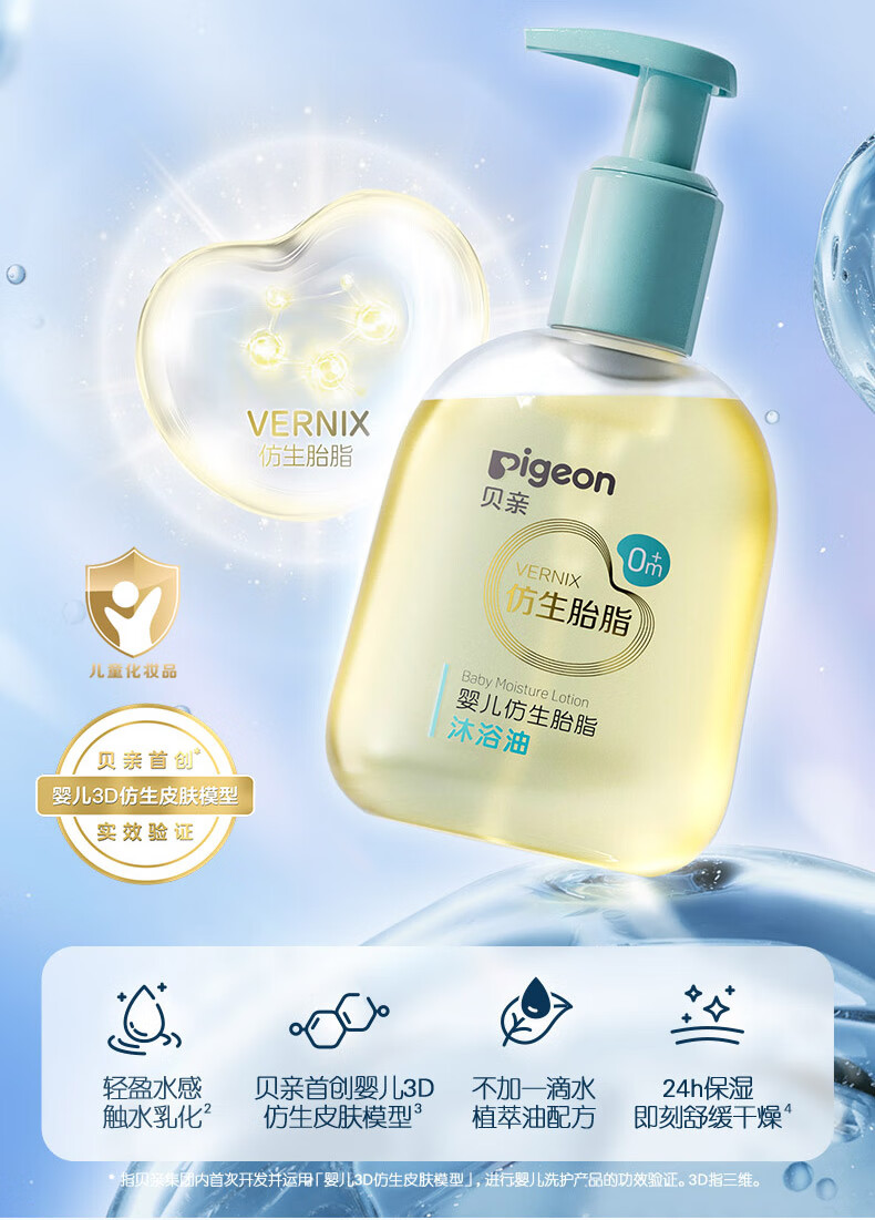贝亲(Pigeon)婴儿仿生胎脂沐浴油150ml IA313