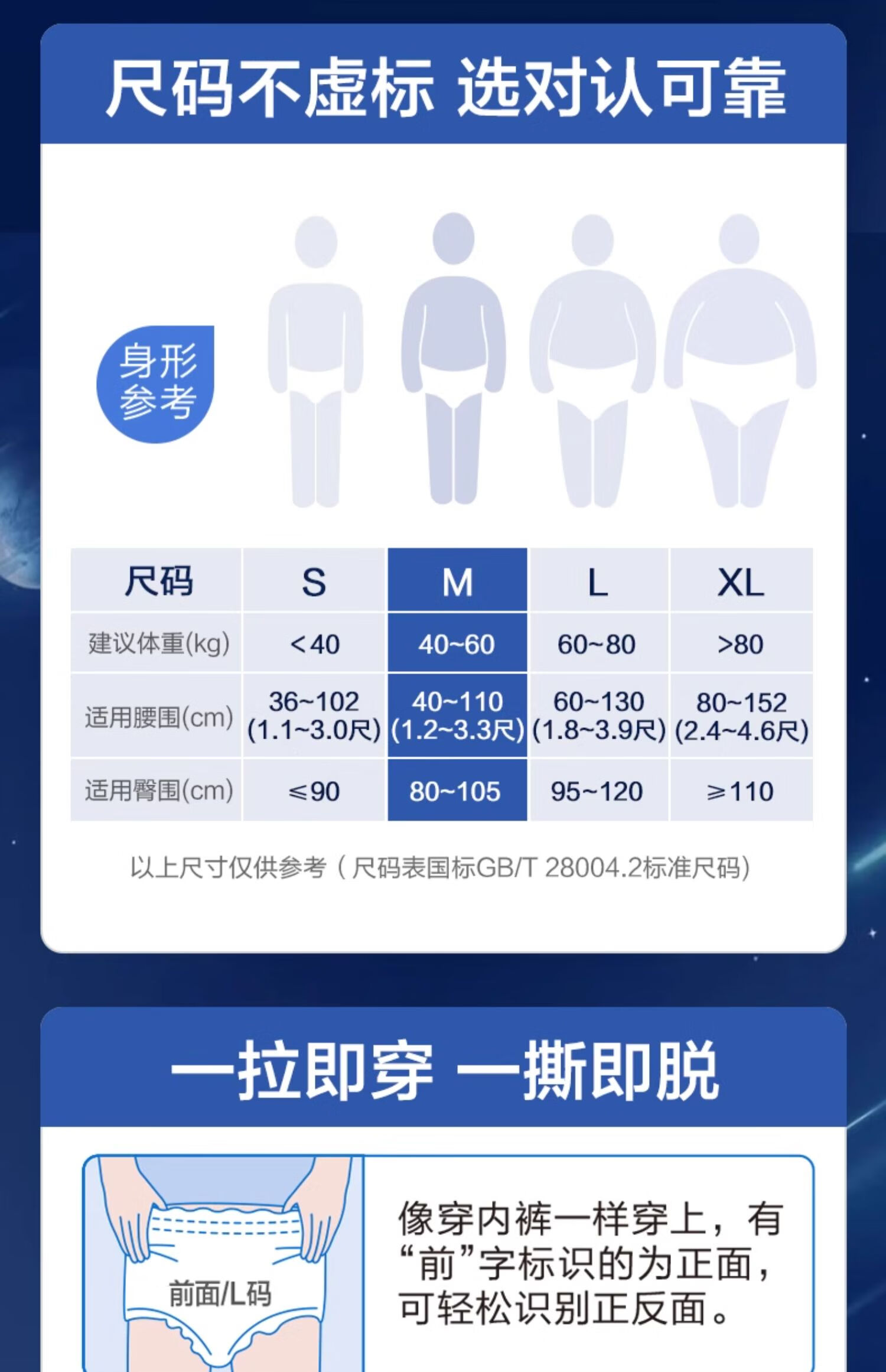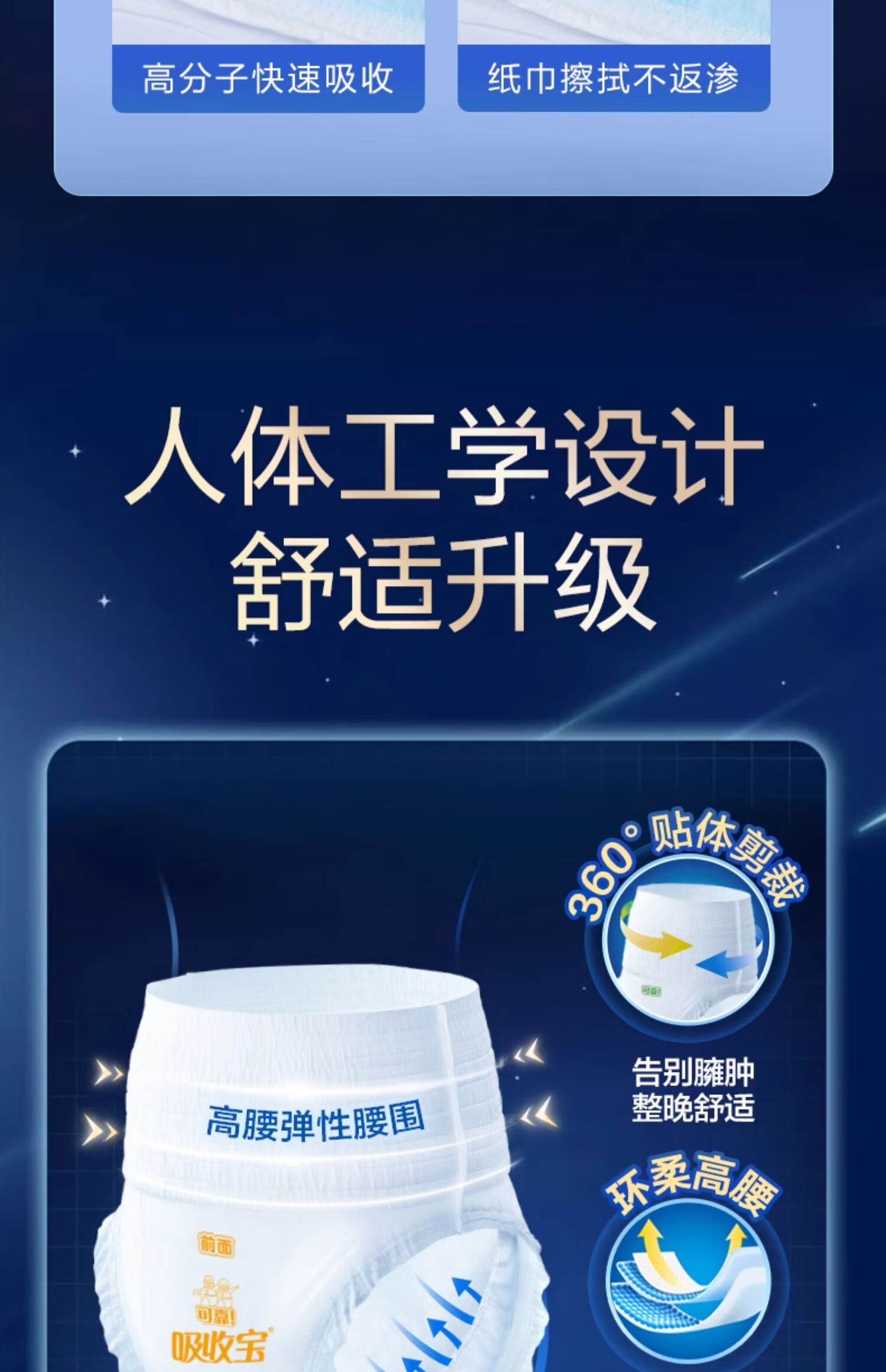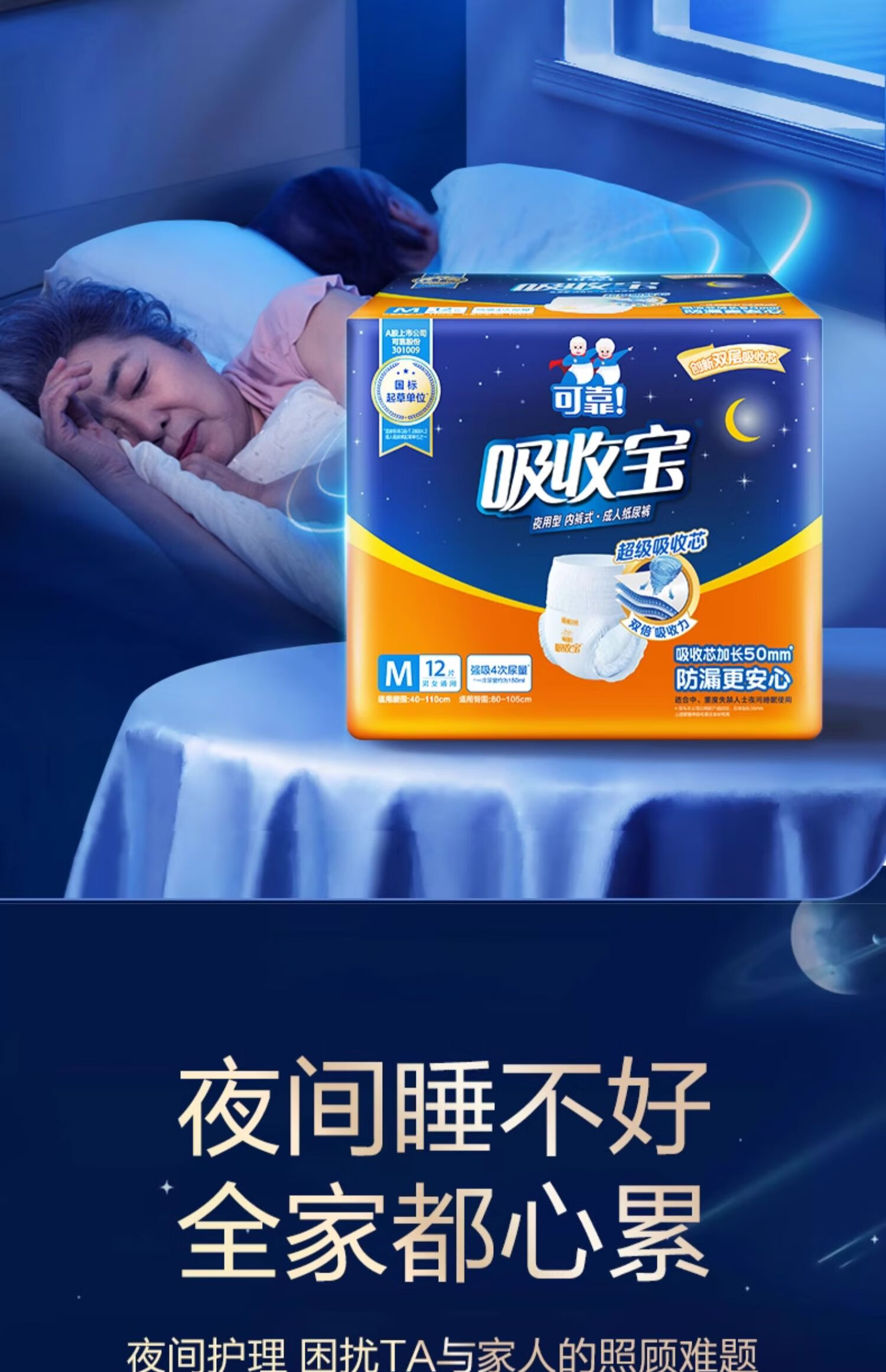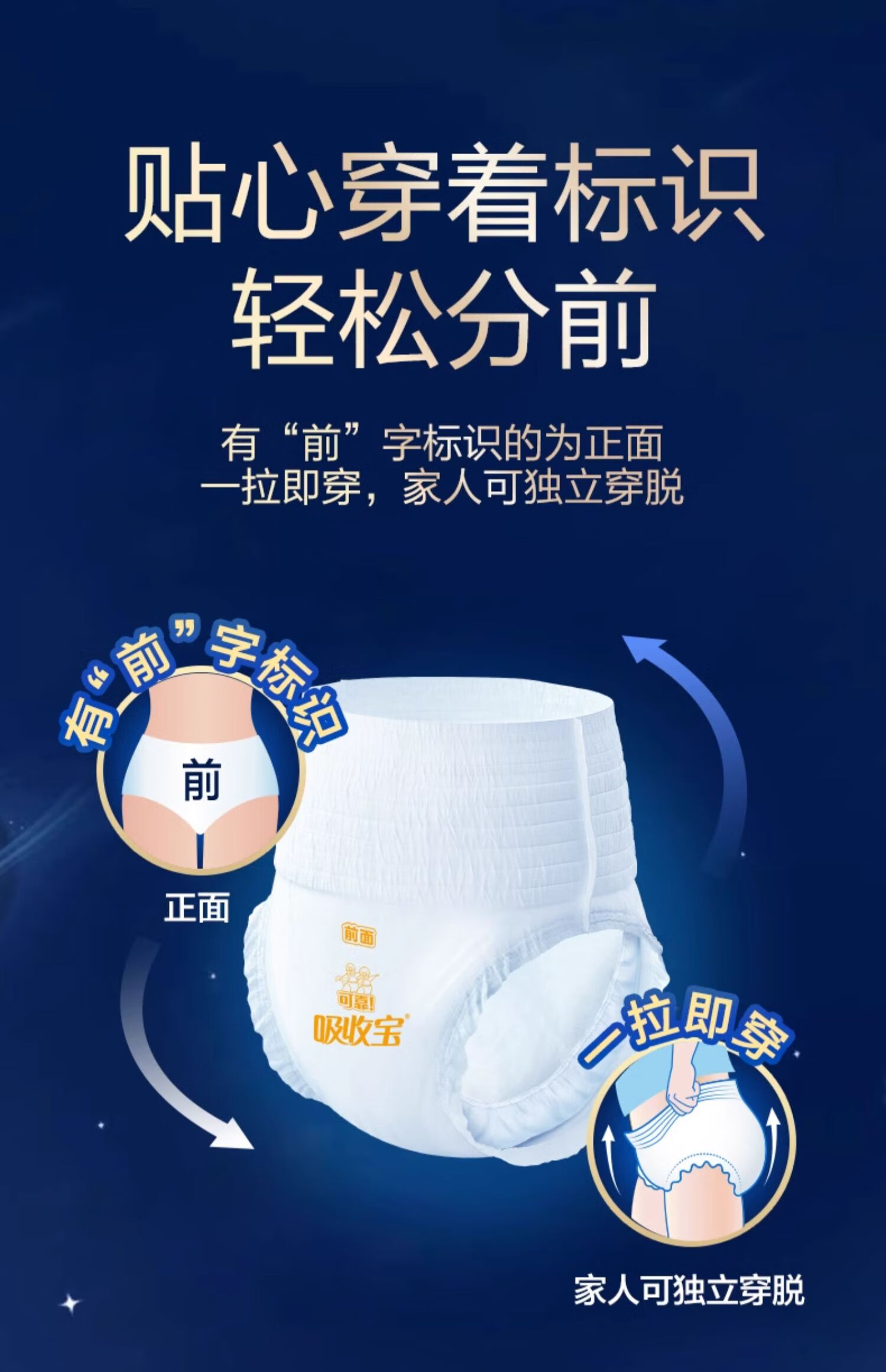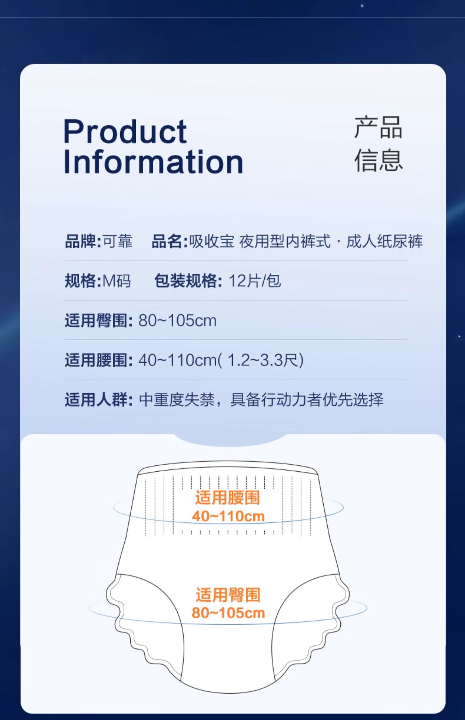 可靠(COCO)吸收宝夜用成人拉拉裤M96片(臀围80-105cm)内裤型纸尿裤尿不湿