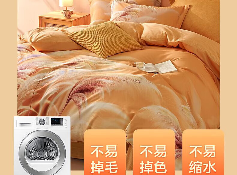 百丽丝套件床上四件套全棉加厚磨毛套件保暖秋冬套件 芦花江影(吸湿发热) 床单款 (被套200*230cm)