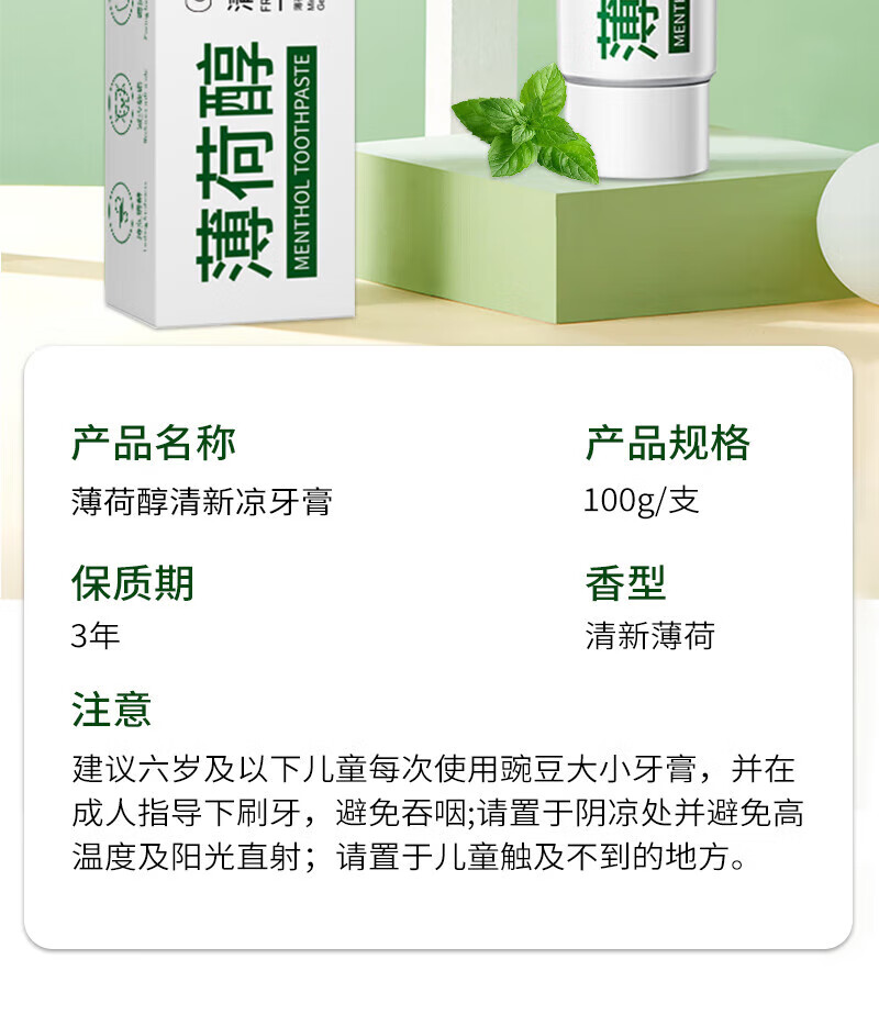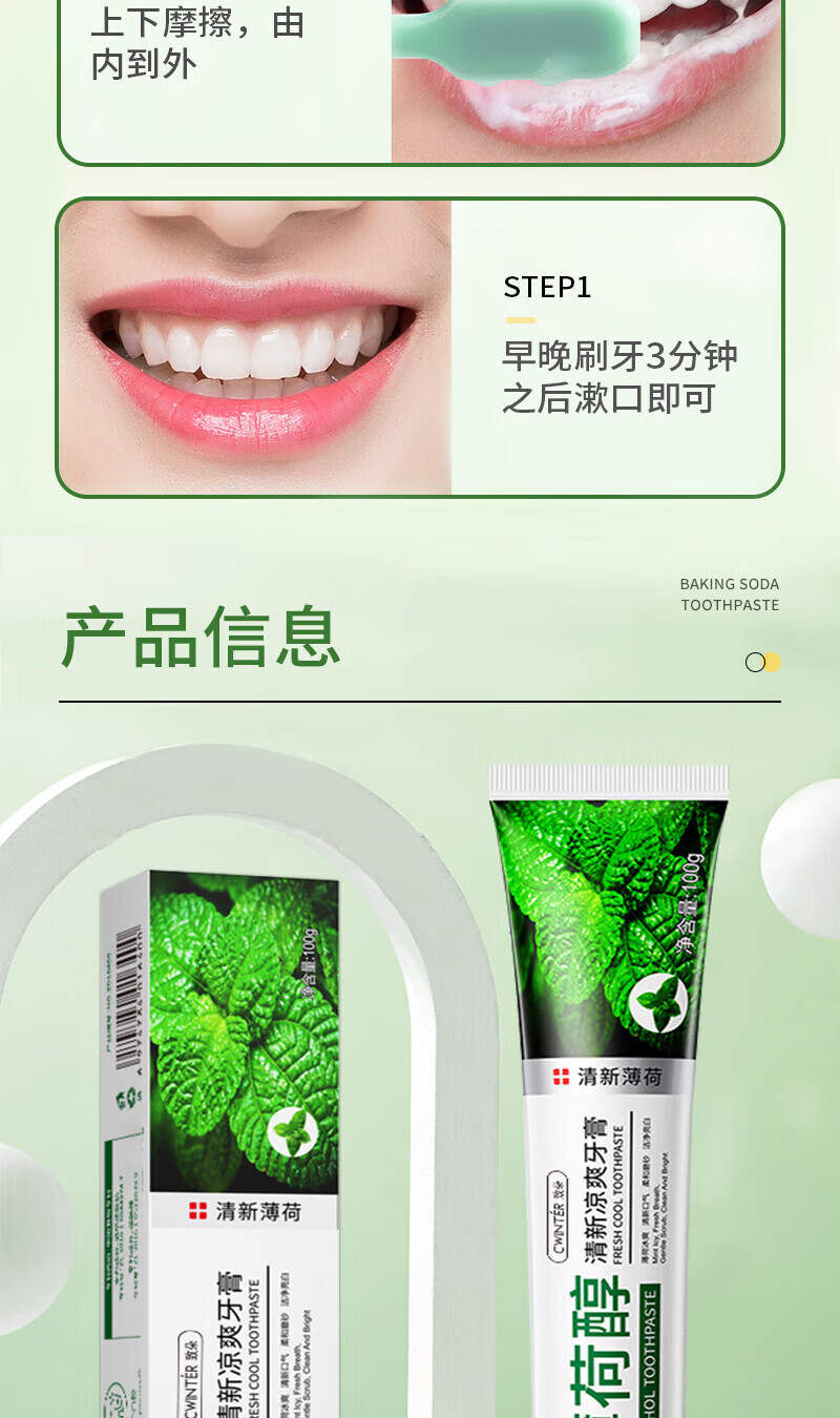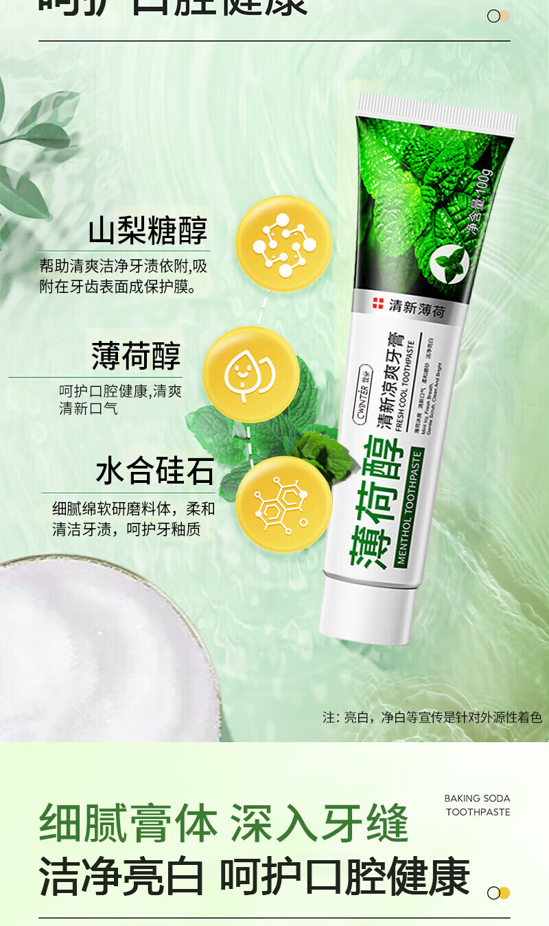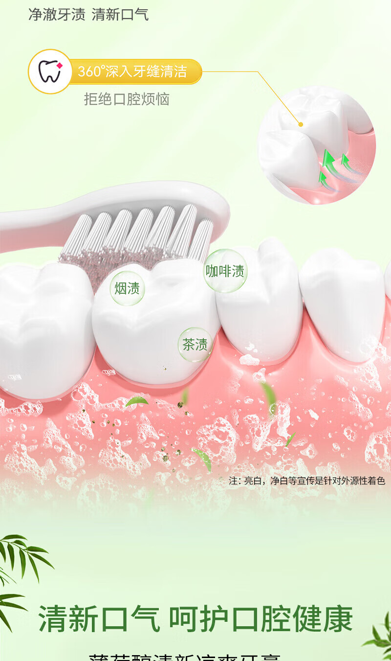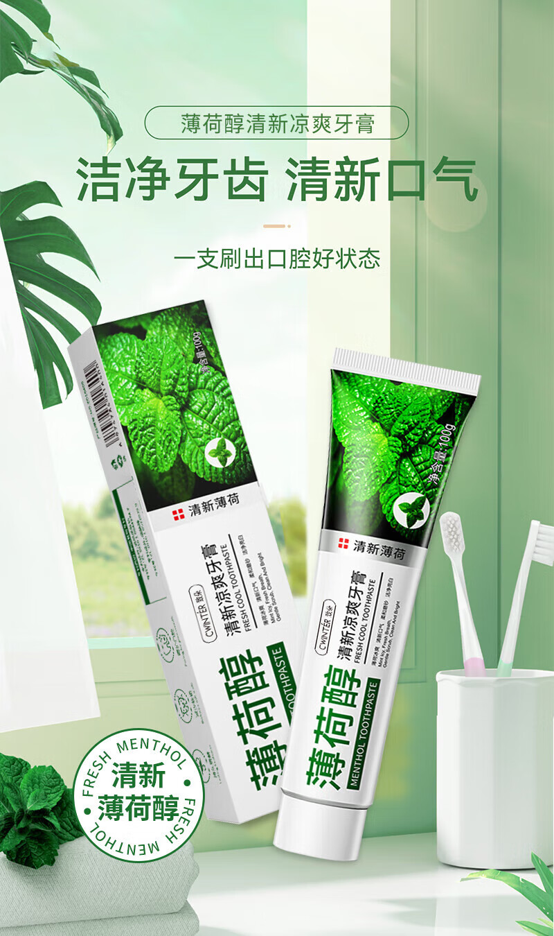 致朵清新口气薄荷劲爽牙膏减少牙渍牙垢牙齿洁白男女通用口腔护理 100g * 3支 薄荷劲爽洁白牙膏