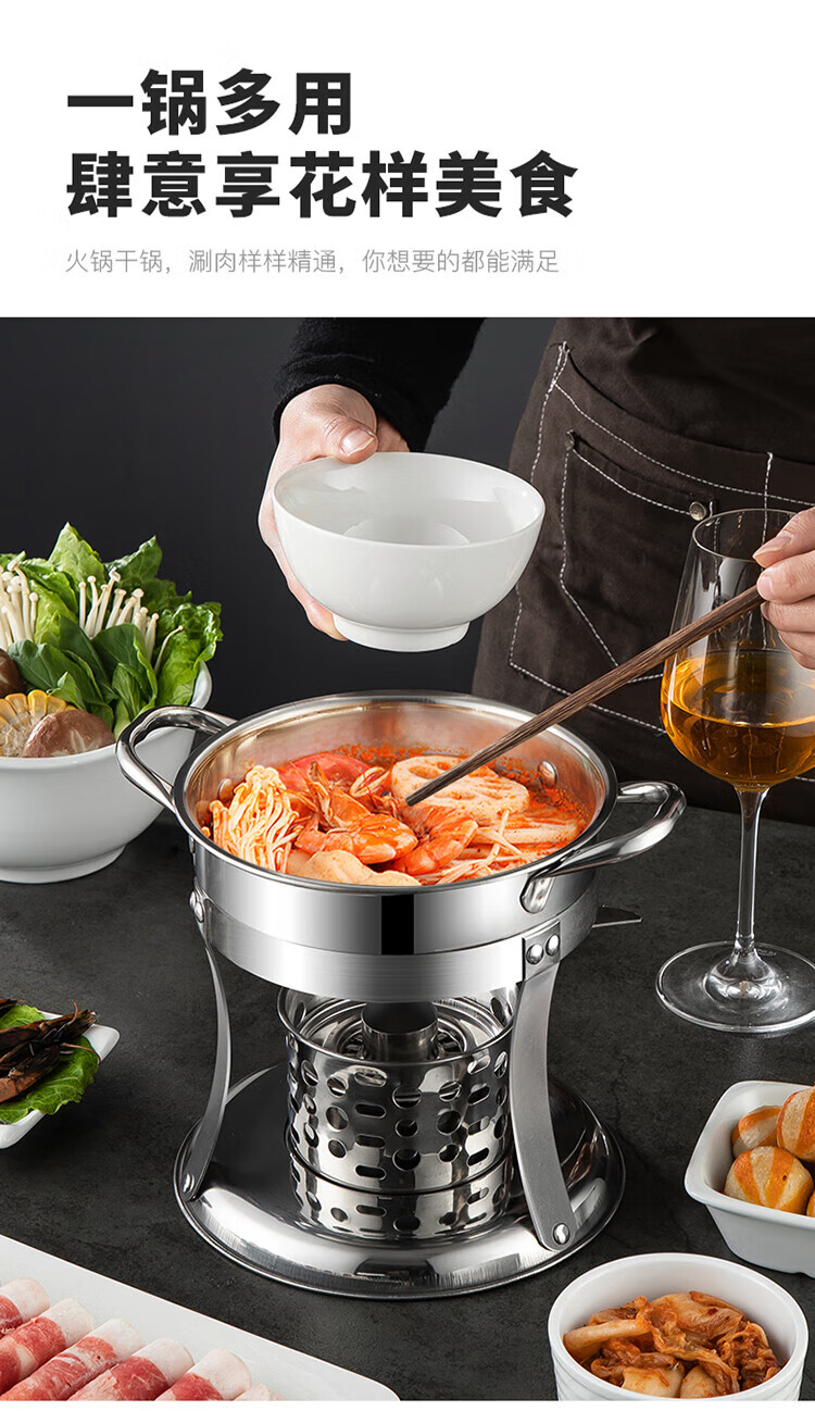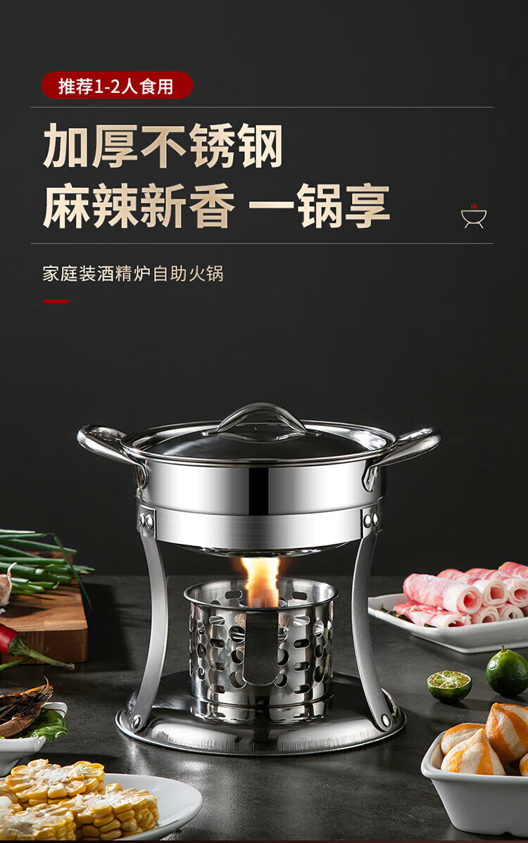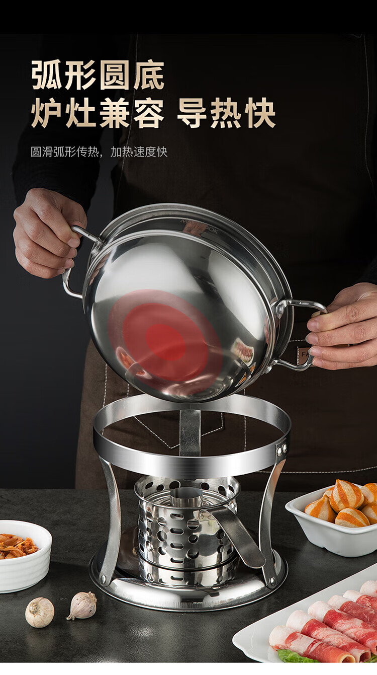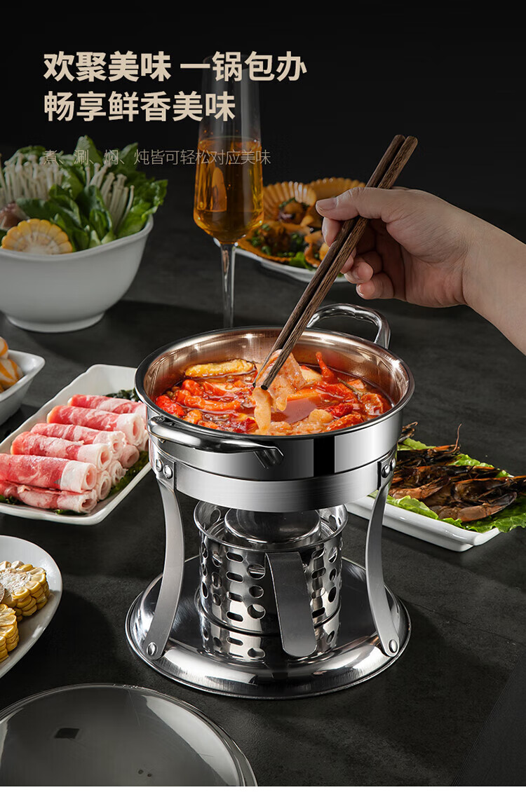 美厨(MAXCOOK)不锈钢火锅 酒精炉火锅干锅18cm MCT3102