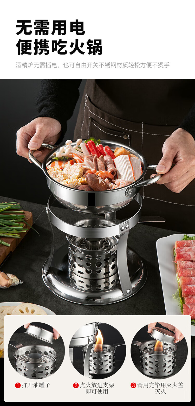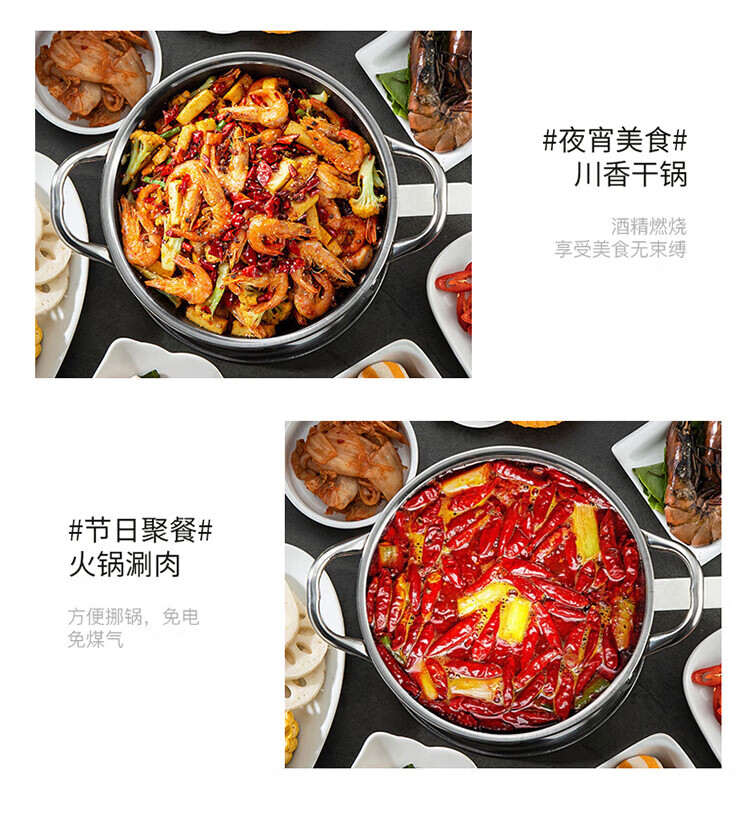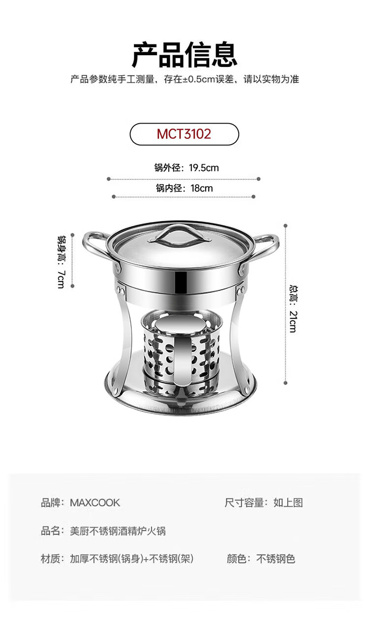 美厨(MAXCOOK)不锈钢火锅 酒精炉火锅干锅18cm MCT3102