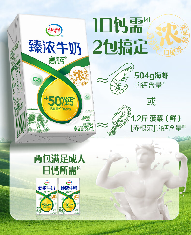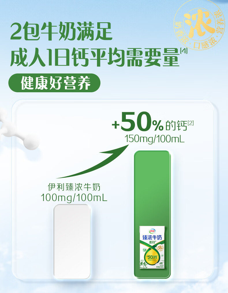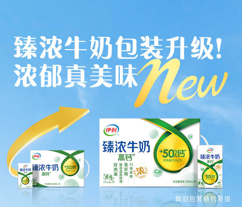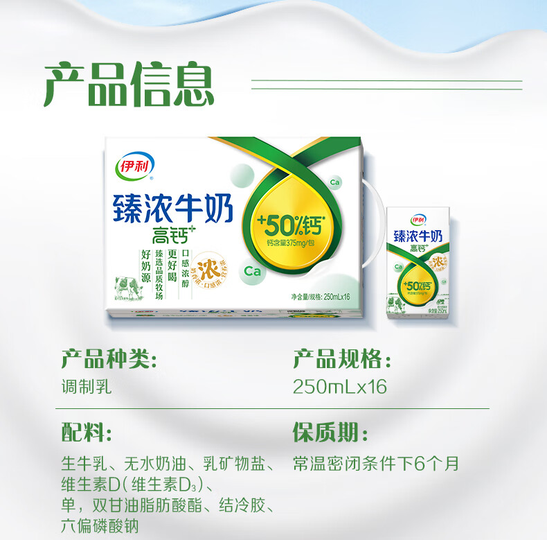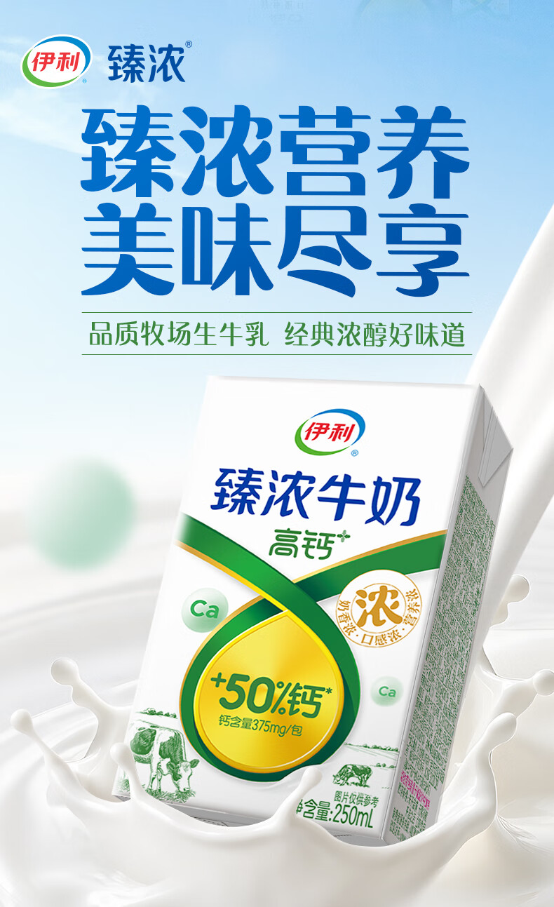 伊利臻浓牛奶高钙 营养丰富 早餐搭档 臻浓高钙250ml*16盒*1箱