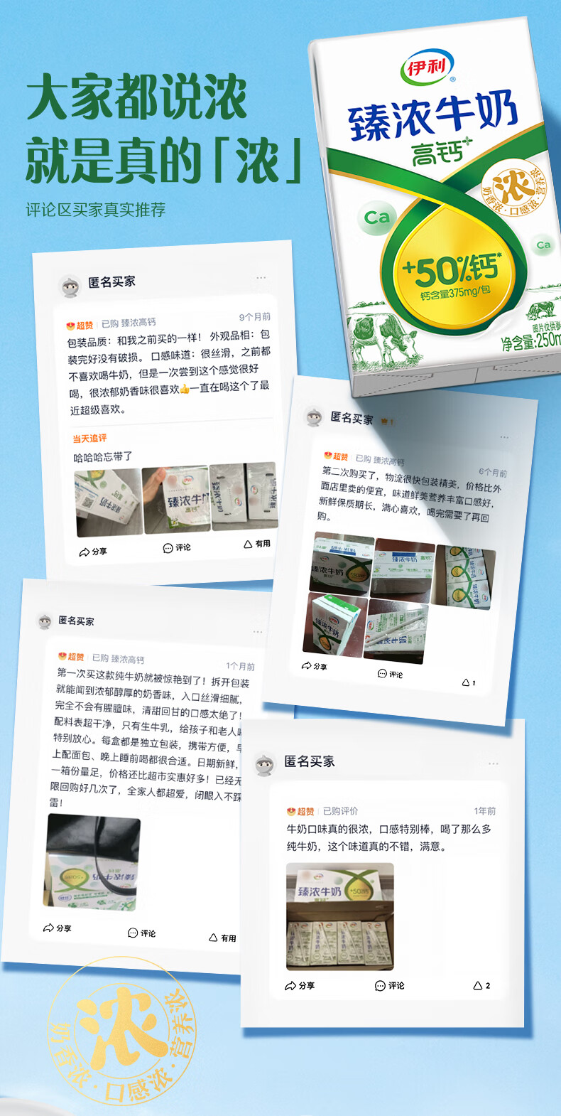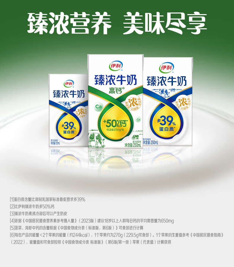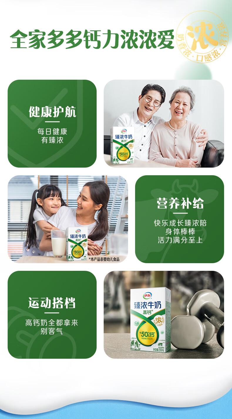 伊利臻浓牛奶高钙 营养丰富 早餐搭档 臻浓高钙250ml*16盒*1箱