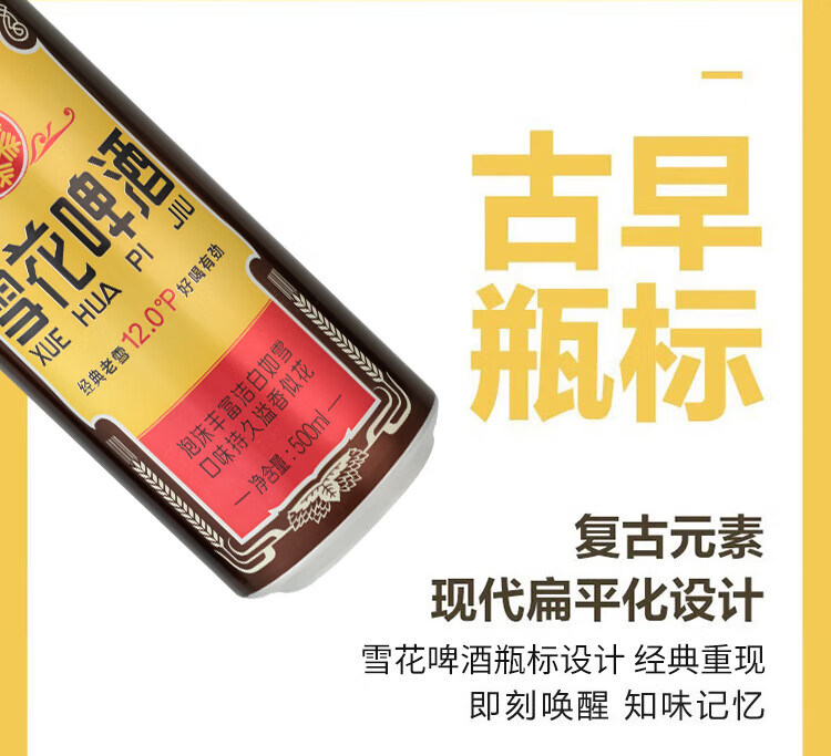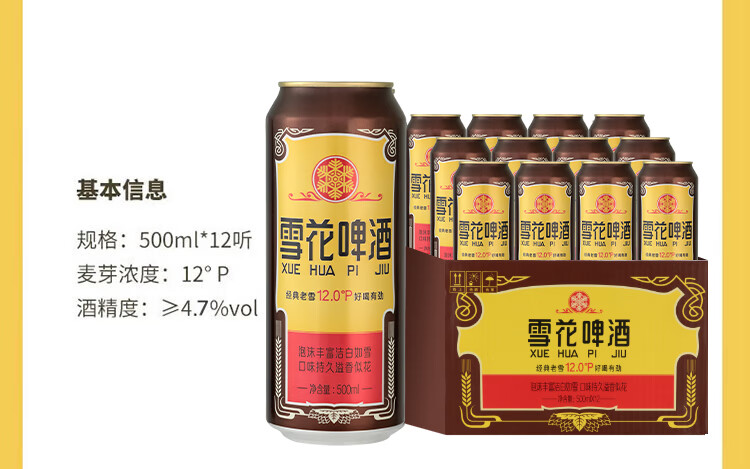 雪花啤酒(Snowbeer)经典老雪 500ml*12听经典醇厚 京东自营新年送礼