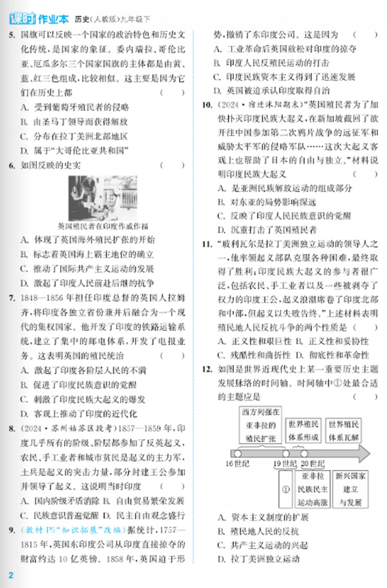 2026春版通城学典 课时作业本九年级历史下册人教版RJ 初三历史同步课时随堂天天练历史九年级下册教材同步训练 9年级下册 历史人教版