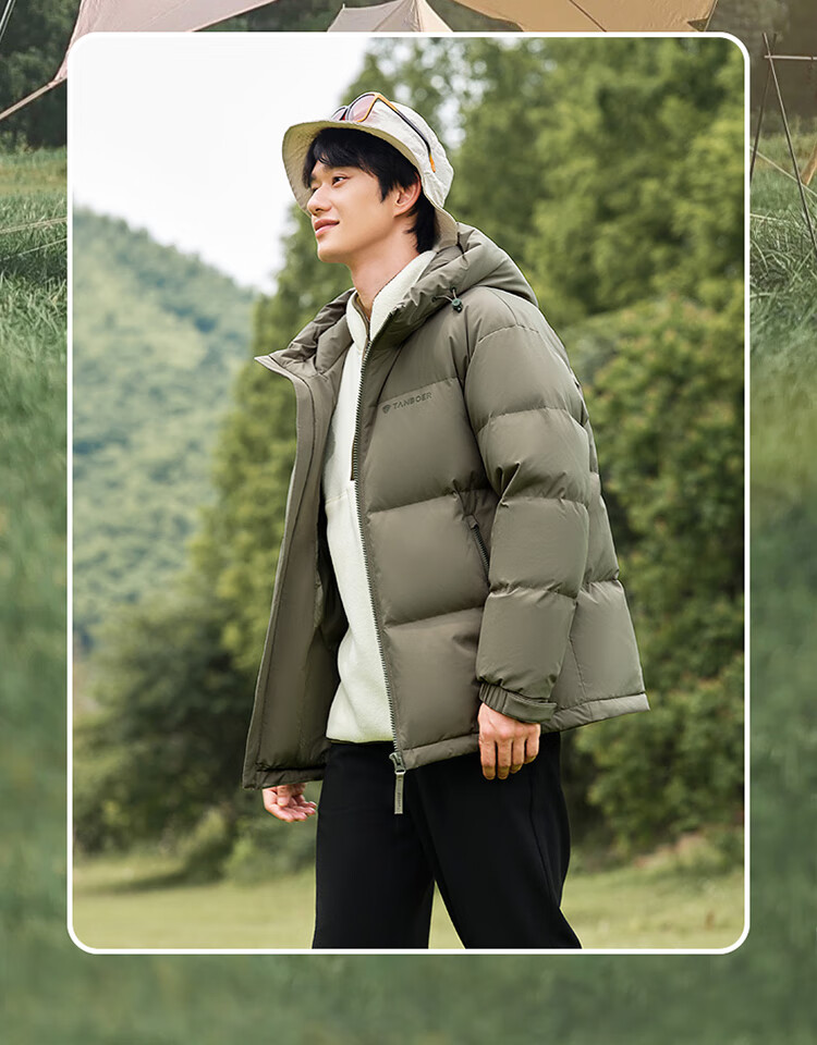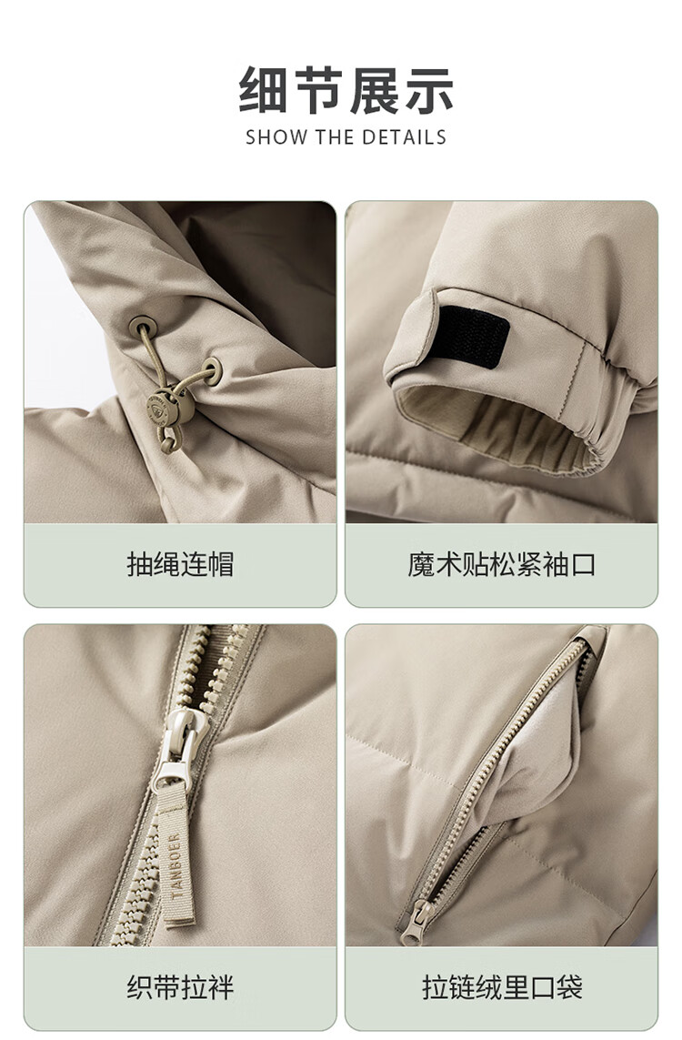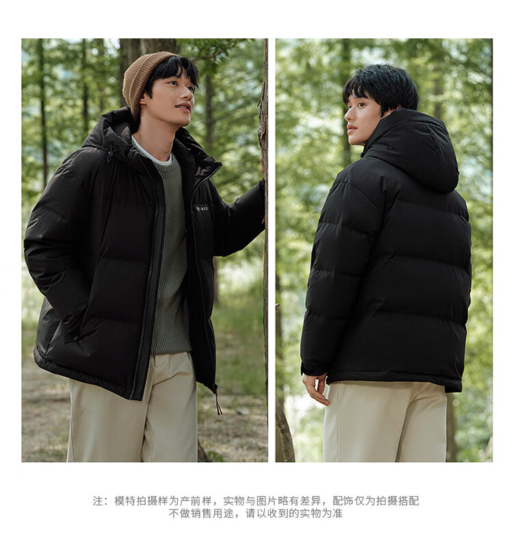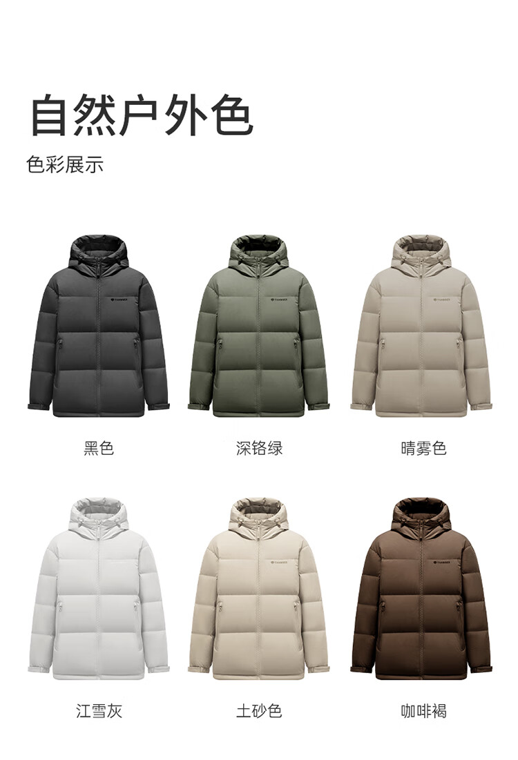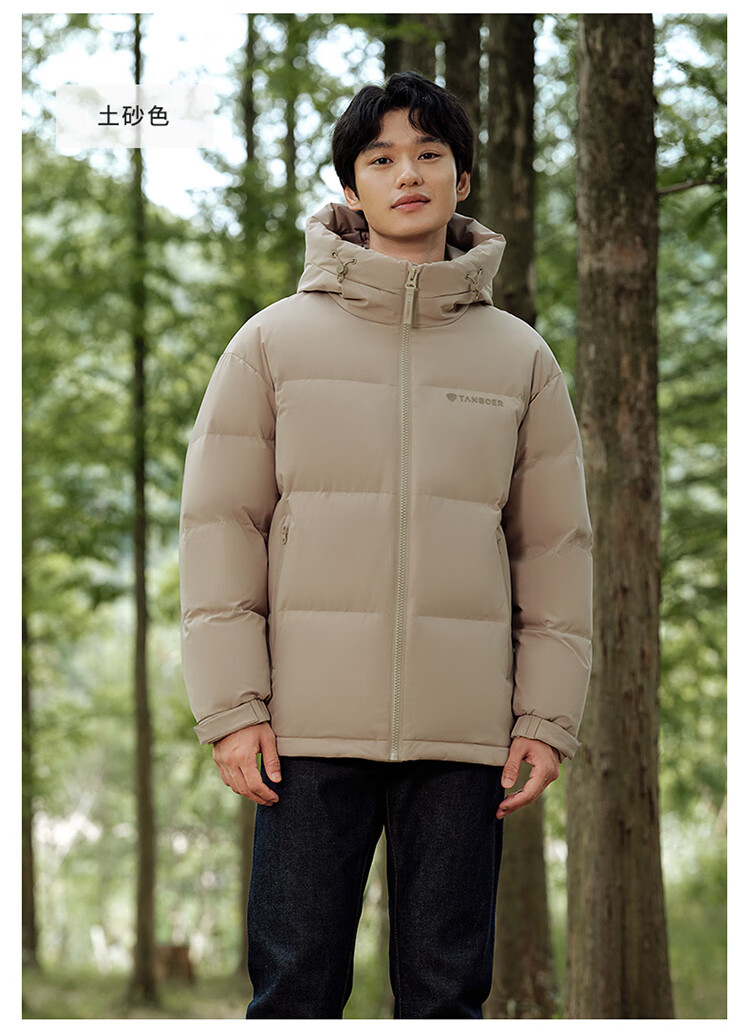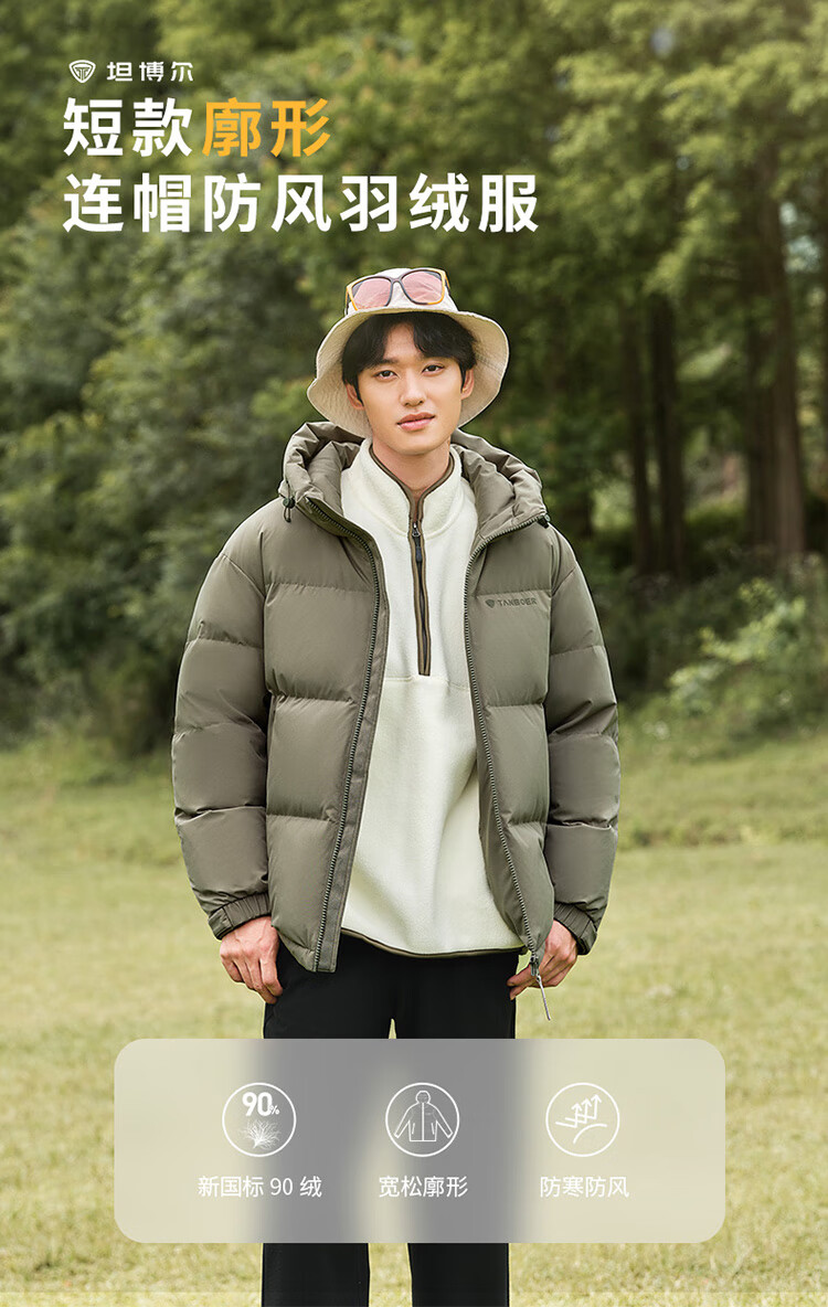 坦博尔短款羽绒服男宽松连帽防风廓形厚款休闲外套TF236353 黑色 L (175)