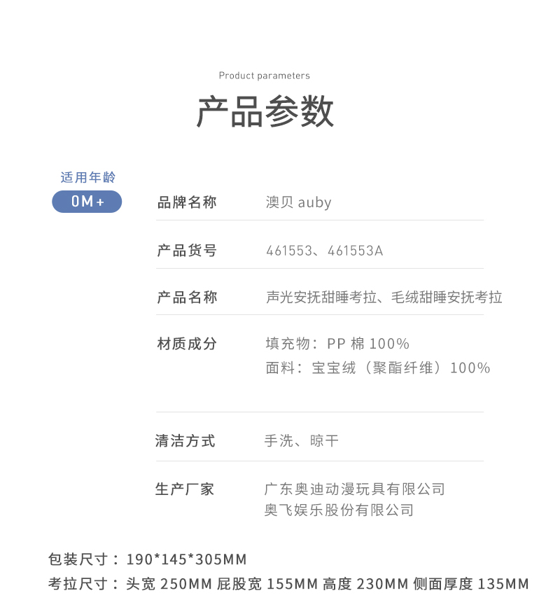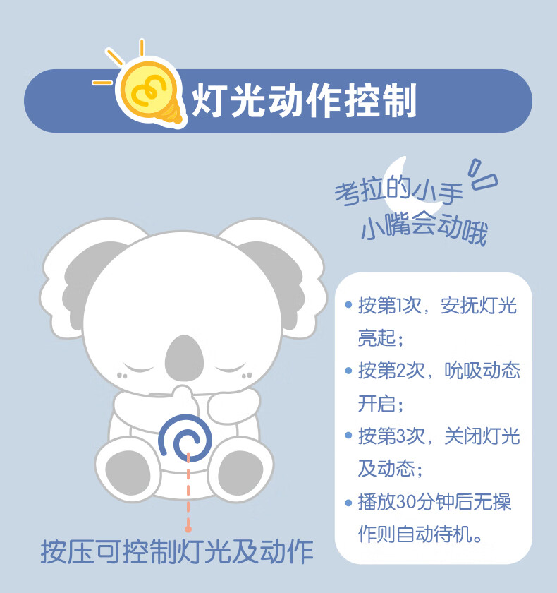 澳贝(auby)婴儿童玩具声光安抚考拉毛绒玩偶新生儿见面礼盒哄睡神器满月礼物