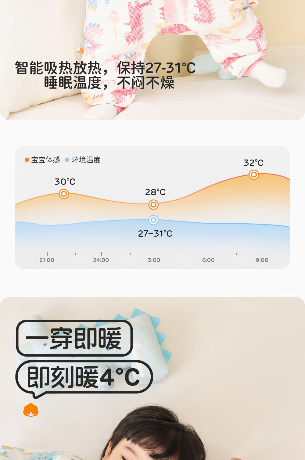 良良(liangliang)儿童睡袋恒温低敏防静电秋冬宝宝防踢被子婴儿空调房防踢被子 雨林奇遇-薄夹棉【室温20-25℃】 XXL(建议身高100-115CM)