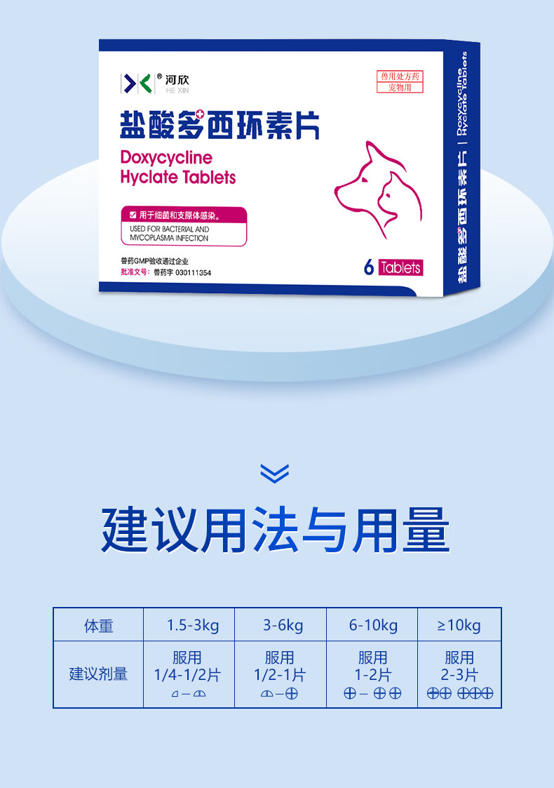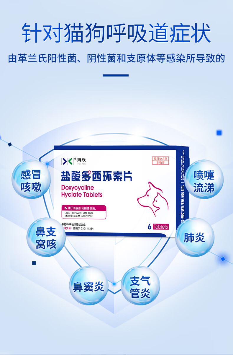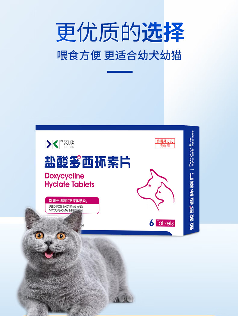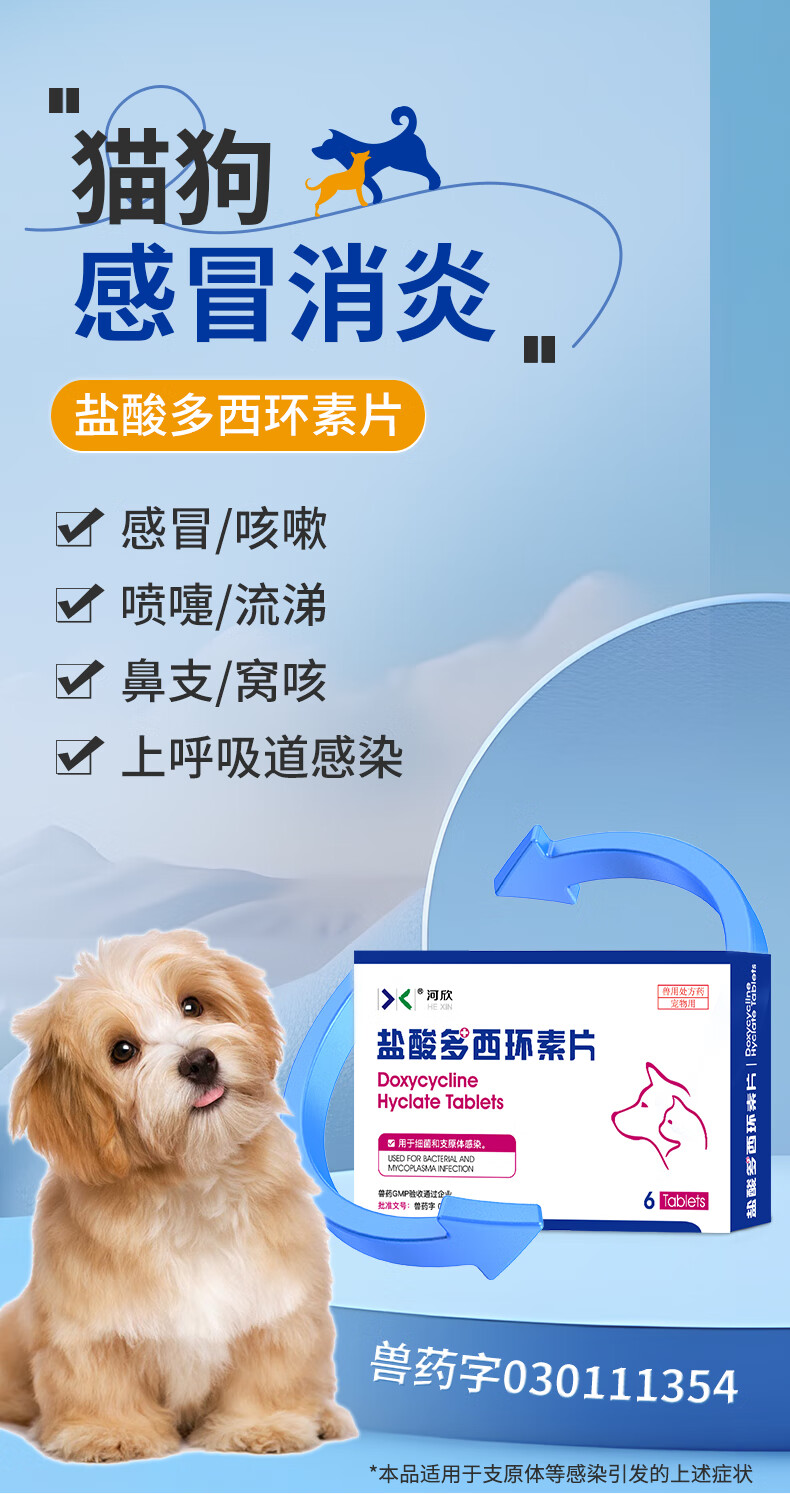 河欣宠物盐酸多西环素片猫咪感冒消炎狗狗咳嗽打喷嚏流鼻涕支原体感染 多西环素片1盒