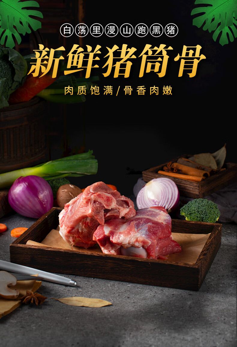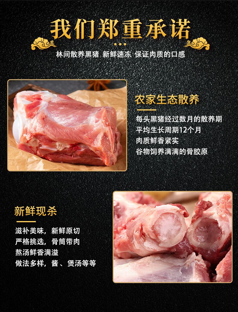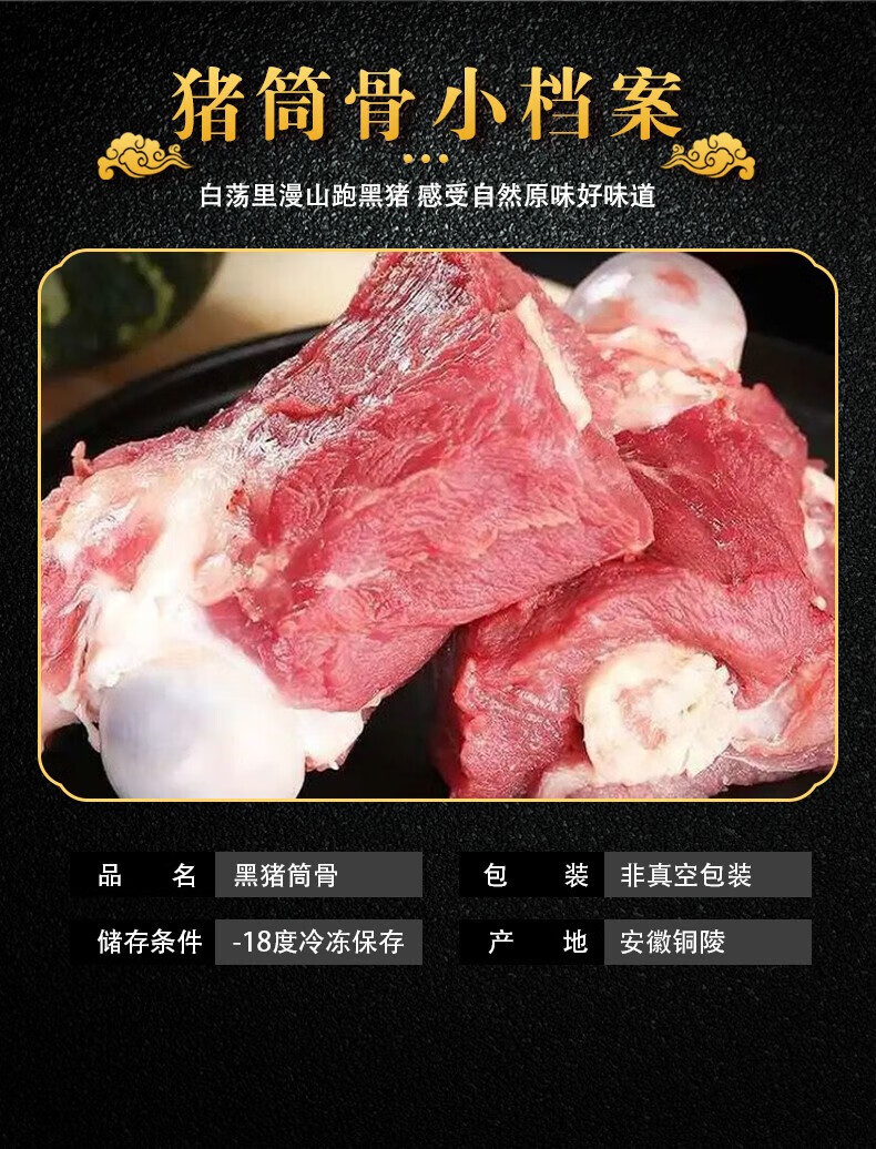 白荡里黑猪筒骨 山林散养360天 大骨熬汤猪棒骨鲜香浓郁 带肉率30% 筒骨【4斤】