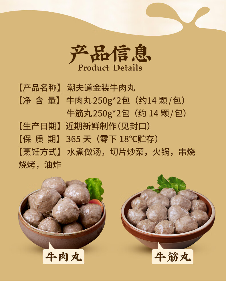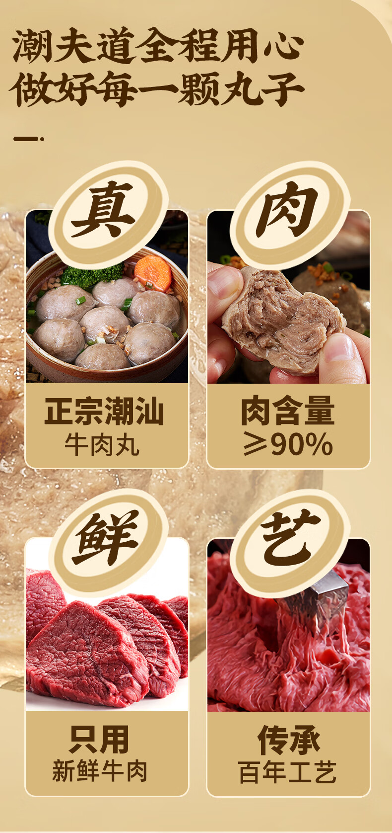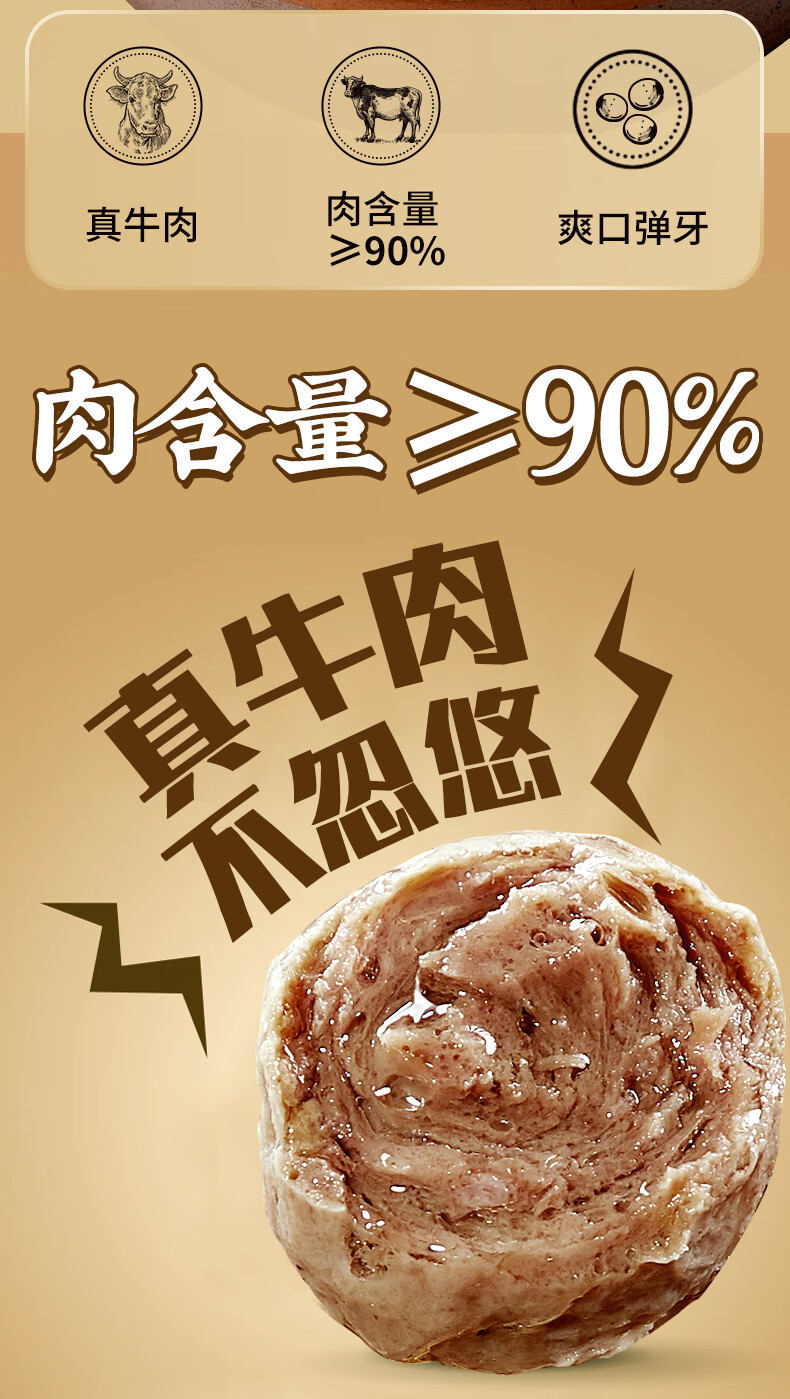 潮夫道牛肉丸1斤+牛筋丸1斤共4袋潮汕手打牛肉丸子火锅食材生鲜关东煮