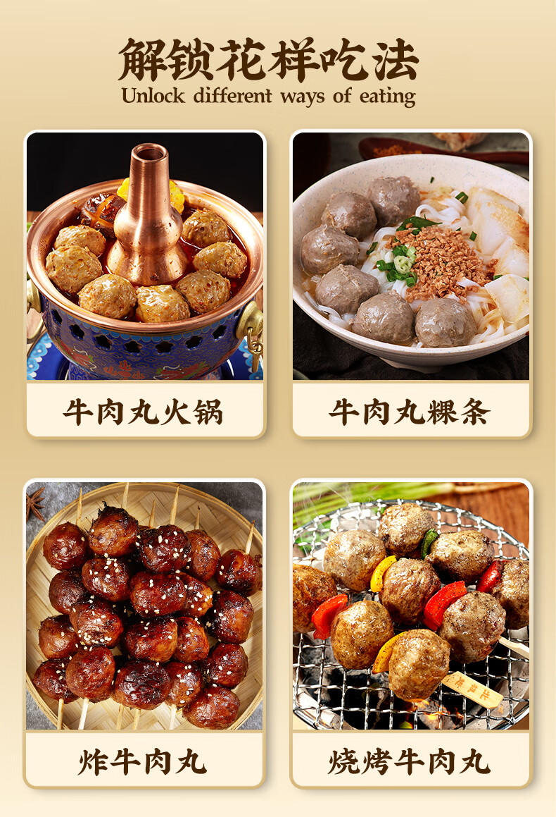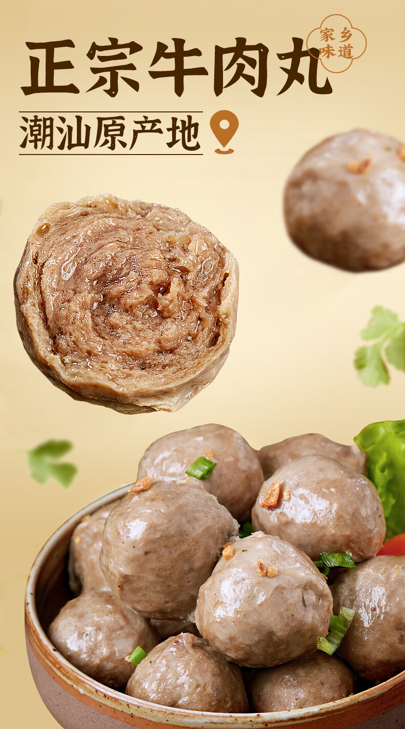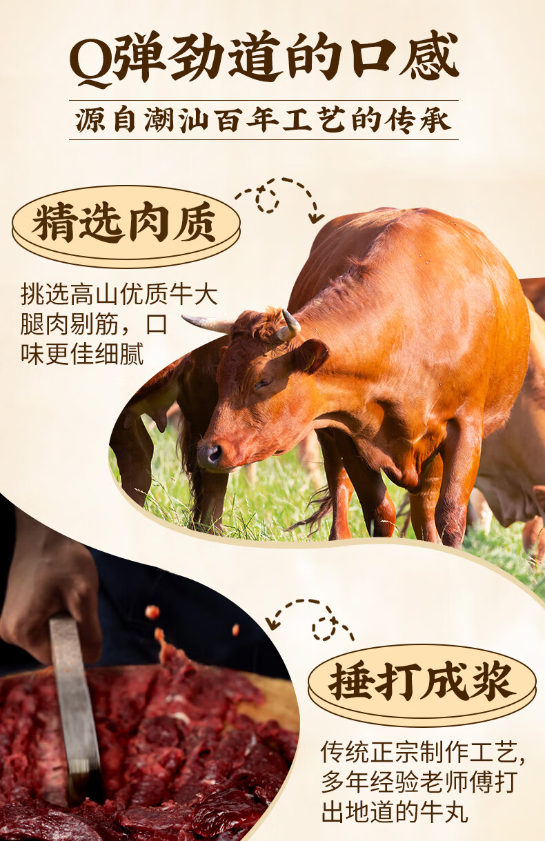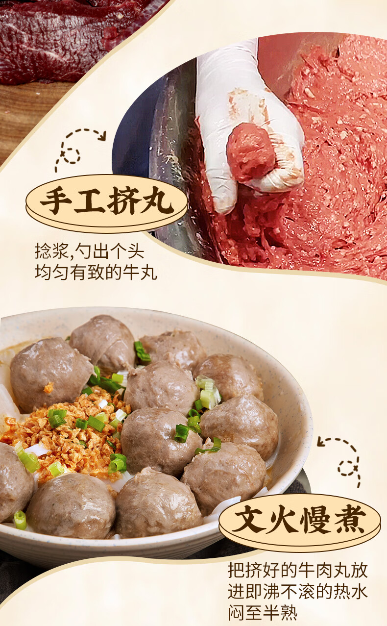 潮夫道牛肉丸1斤+牛筋丸1斤共4袋潮汕手打牛肉丸子火锅食材生鲜关东煮
