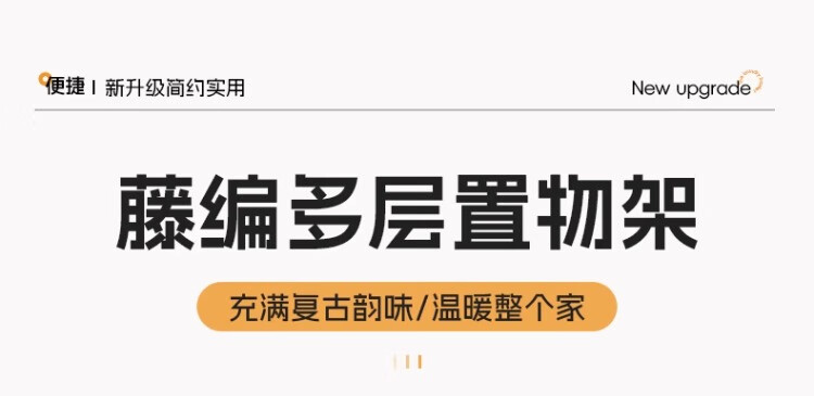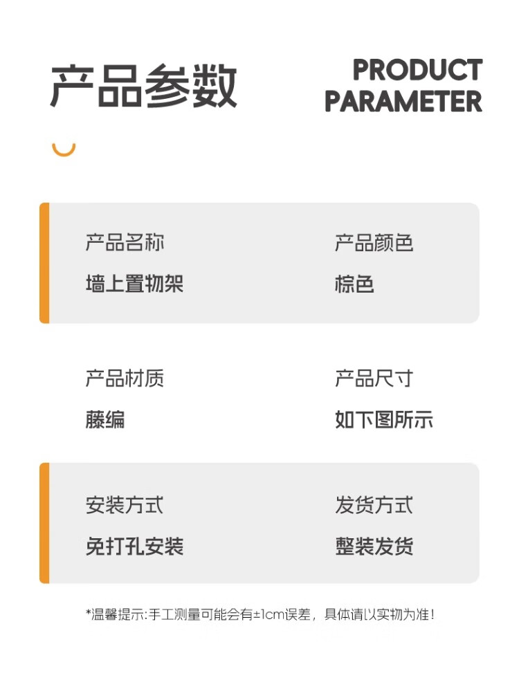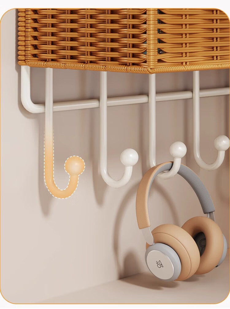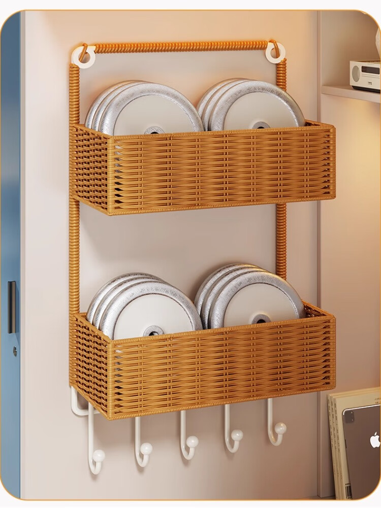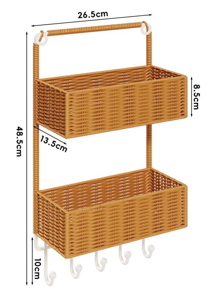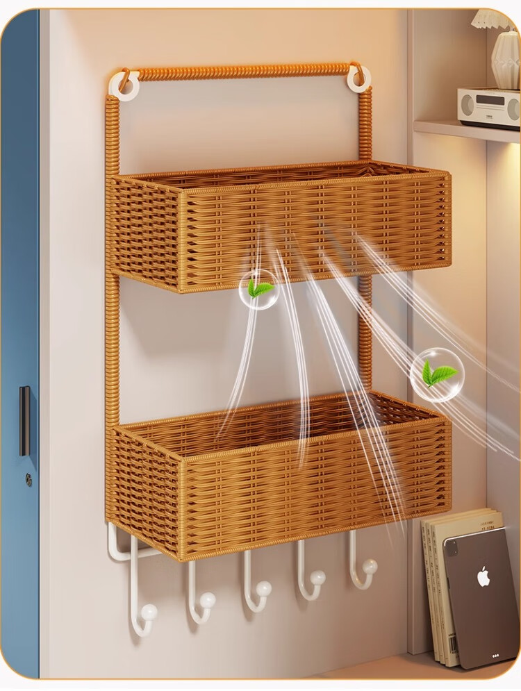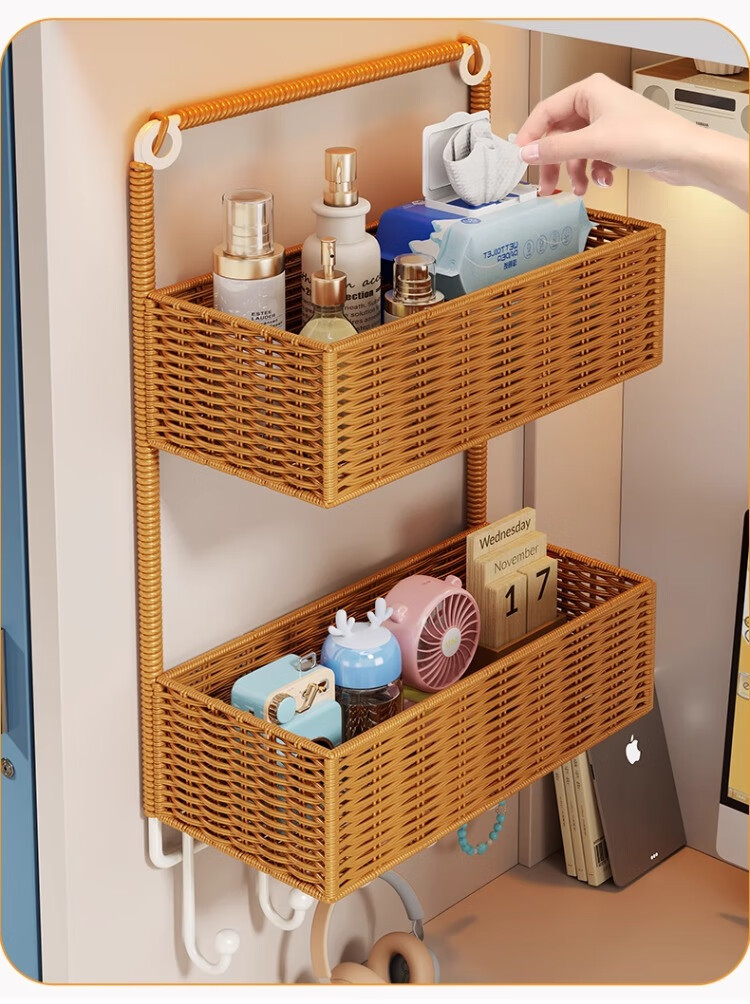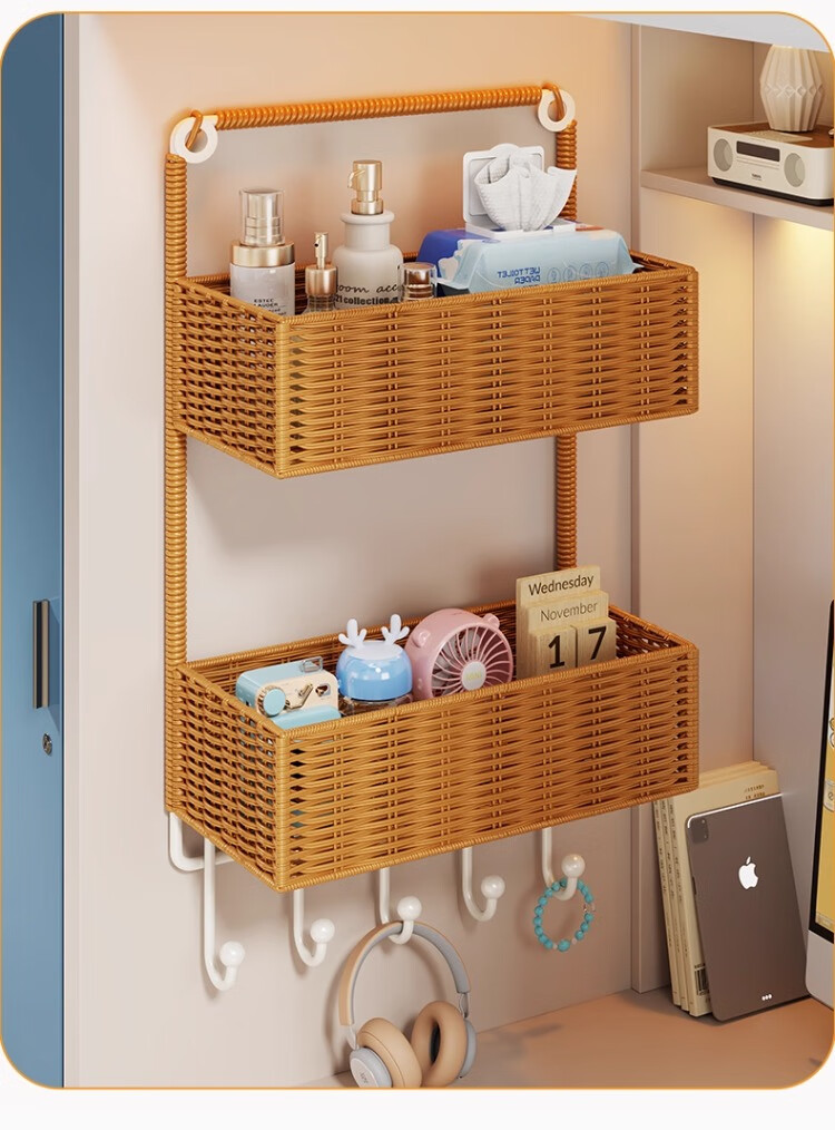 尔思家墙上置物架宿舍床边架子多层杂物架卫生间洗漱用品仿藤编收纳筐 棕色