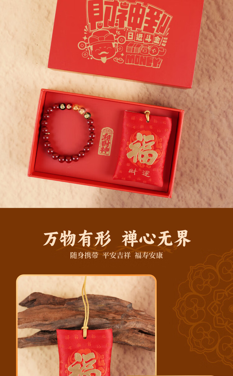 锦福北高峰联名新年香囊御守礼盒文创朱砂手串五路财神手链套装景区平安祈福马年本命年国风礼品