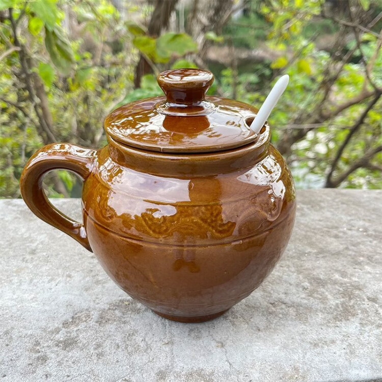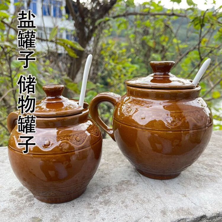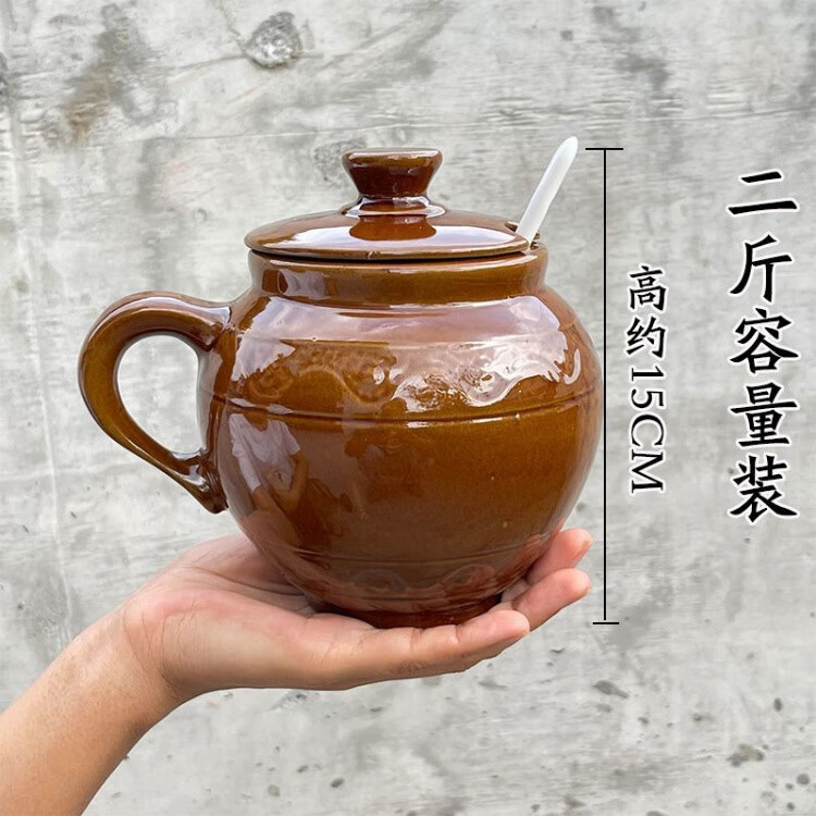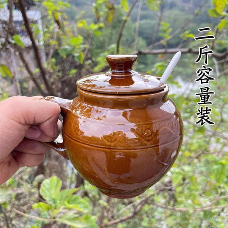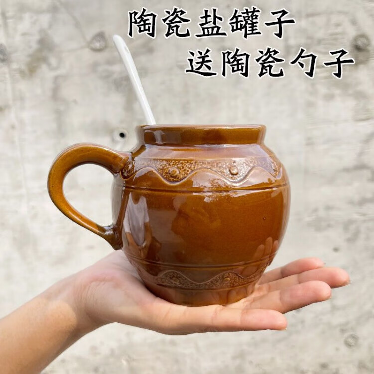 家用陶瓷盐罐调味罐带勺子1斤2斤带盖子防潮储物瓶调料瓶辣椒油罐 水容量2斤装