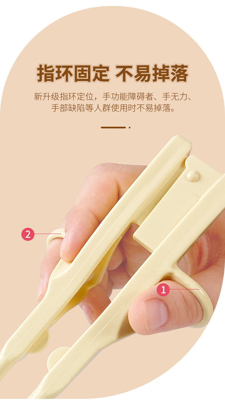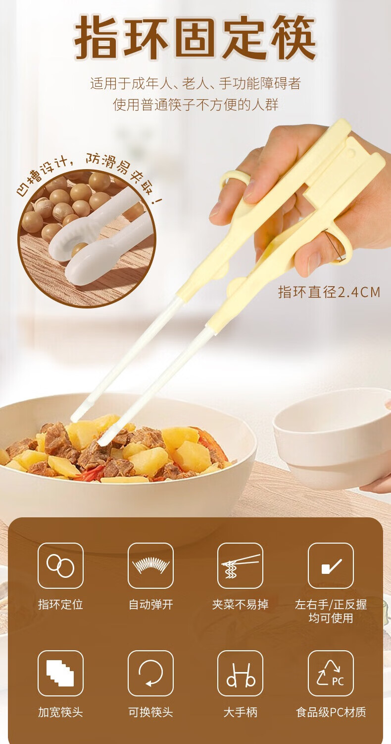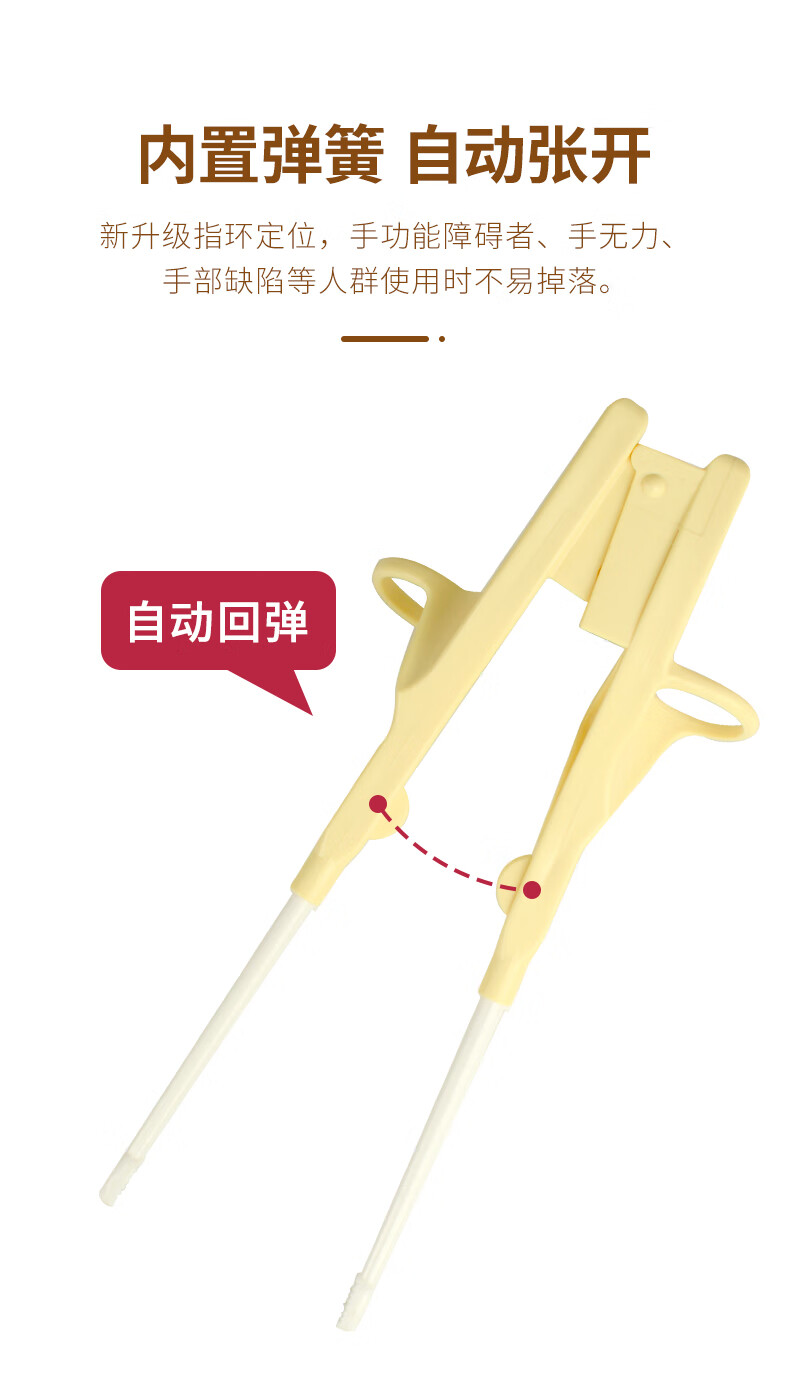 美物德品老人辅助筷子适用手抖偏瘫中风残疾专用康复训练助食筷左右手通用 助食筷(PC筷头)+竹筷头2副