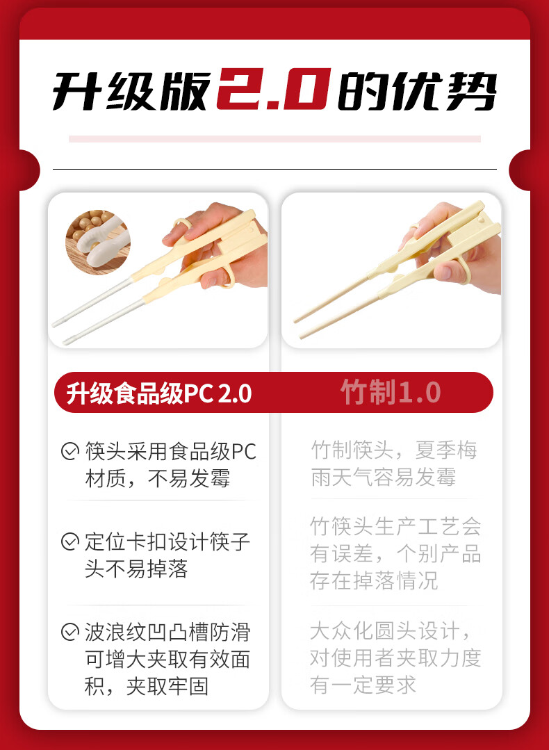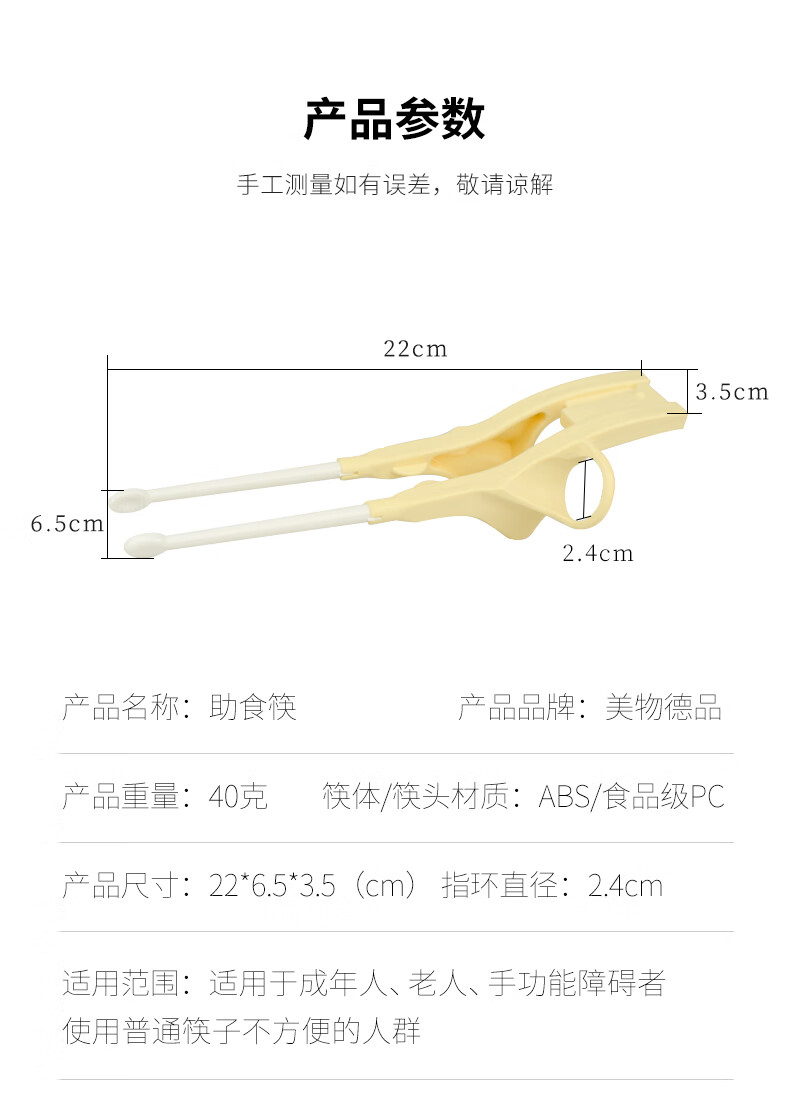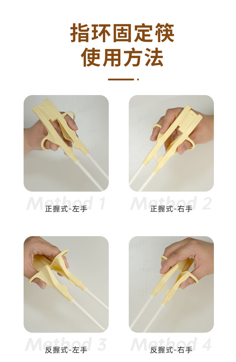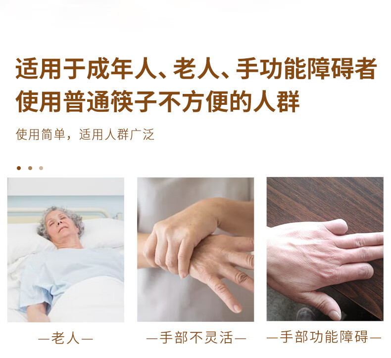 美物德品老人辅助筷子适用手抖偏瘫中风残疾专用康复训练助食筷左右手通用 助食筷(PC筷头)+竹筷头2副
