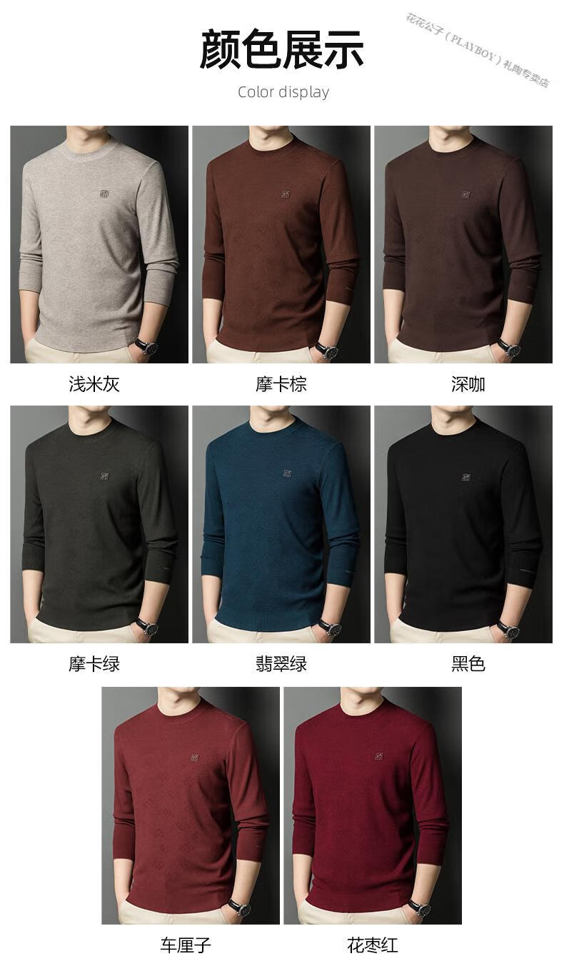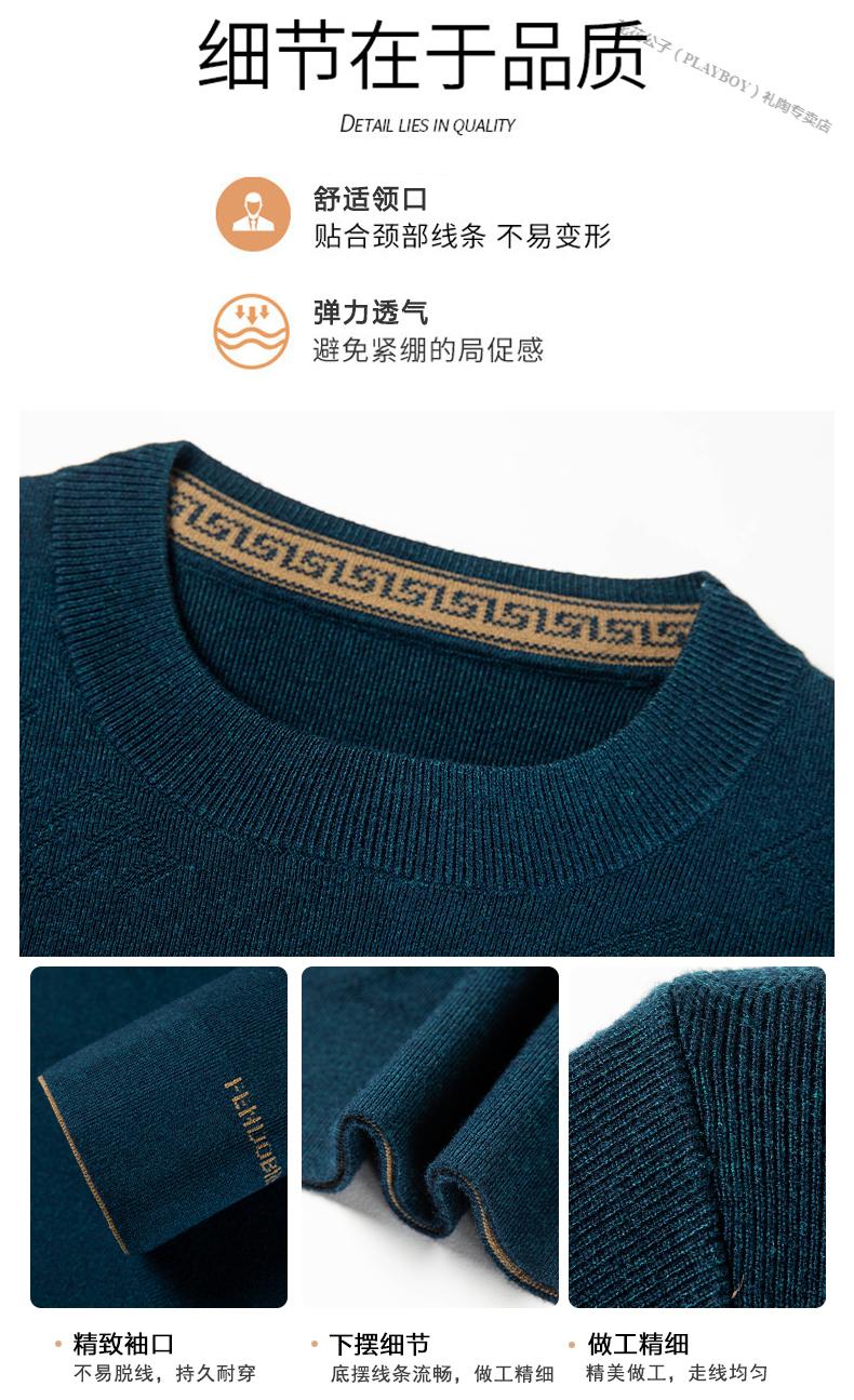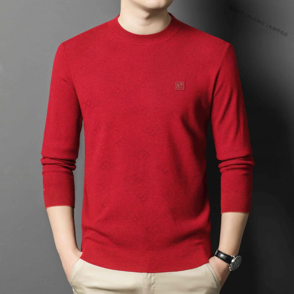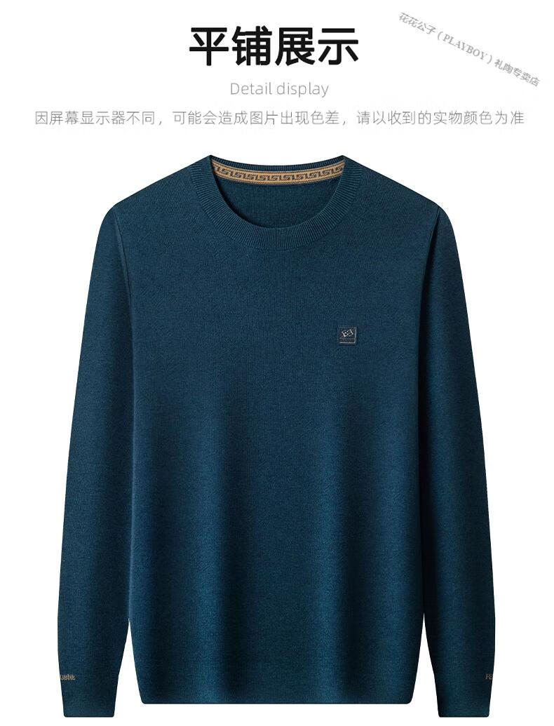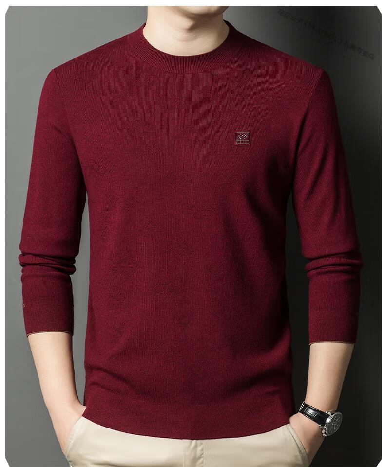 花花公子(PLAYBOY)男士高端品牌新款圆领羊毛衫男中老年羊毛冬季加厚针织衫宽松打底 花枣红 4XL 130/190【建议180-200斤】 速